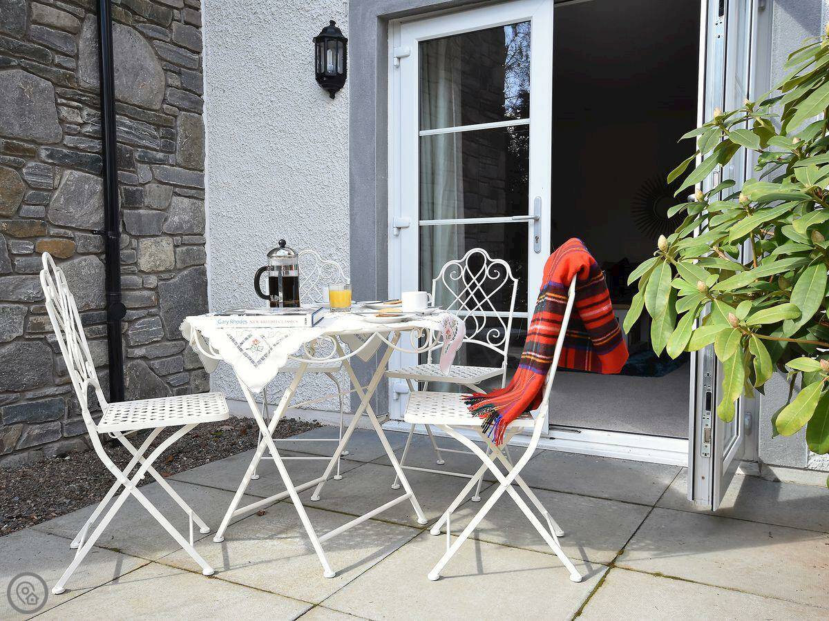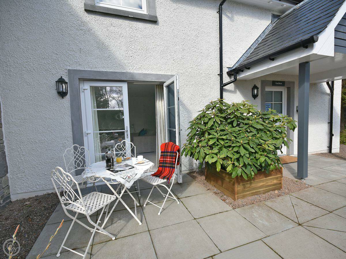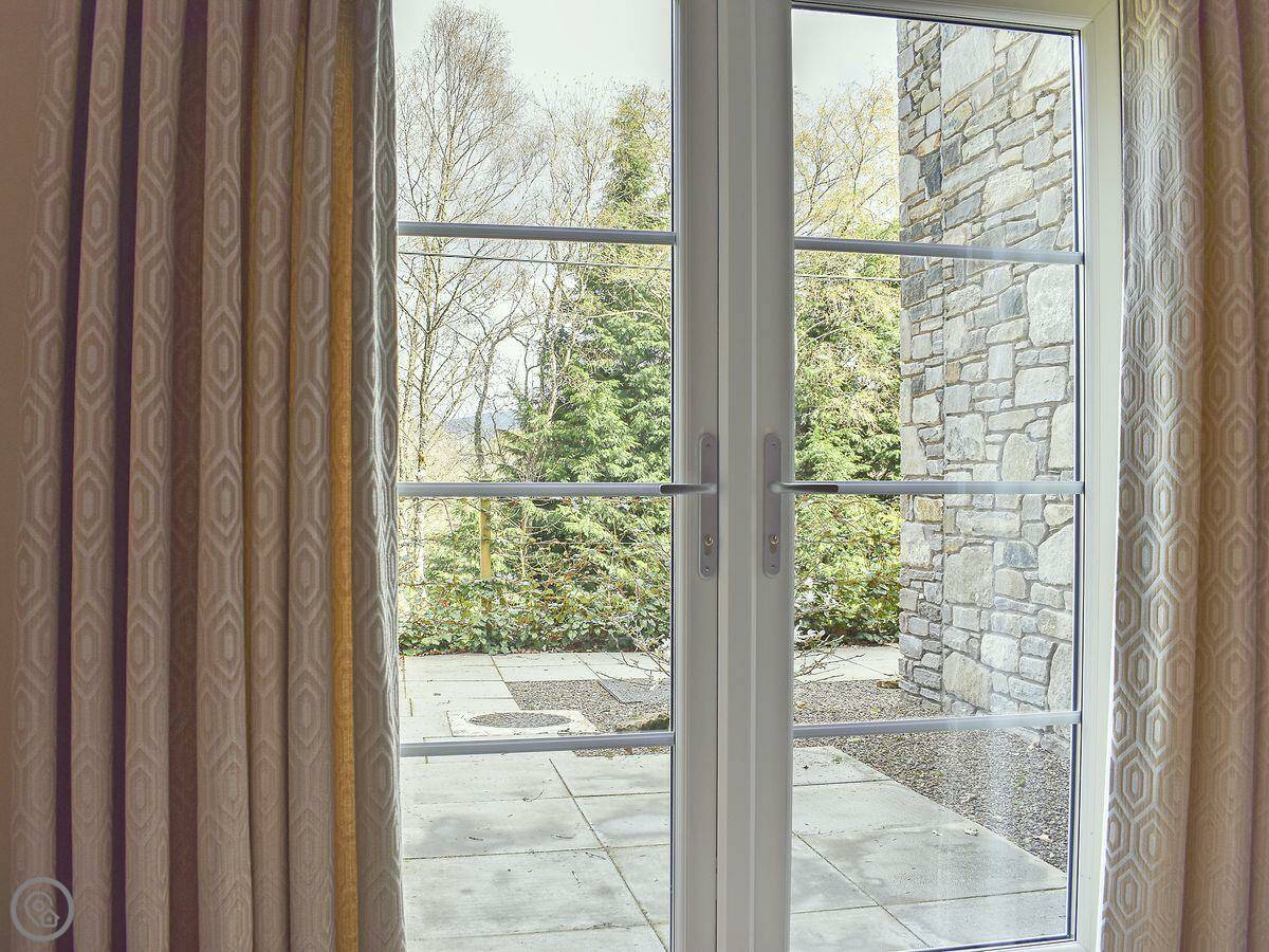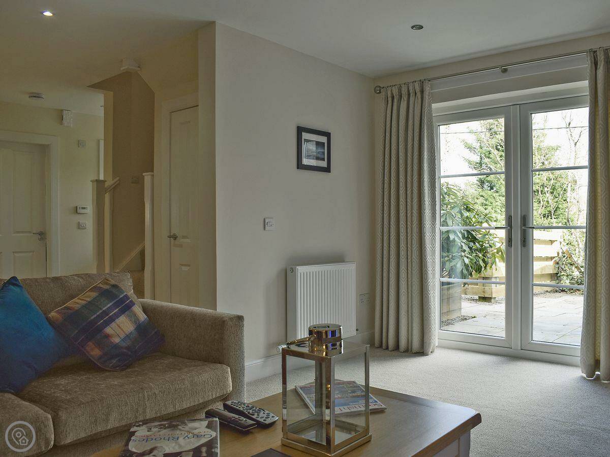 The living room has French doors that open onto a patio. It's a good spot if the sun's out. You might see red squirrels or deer in the garden, but no promises.