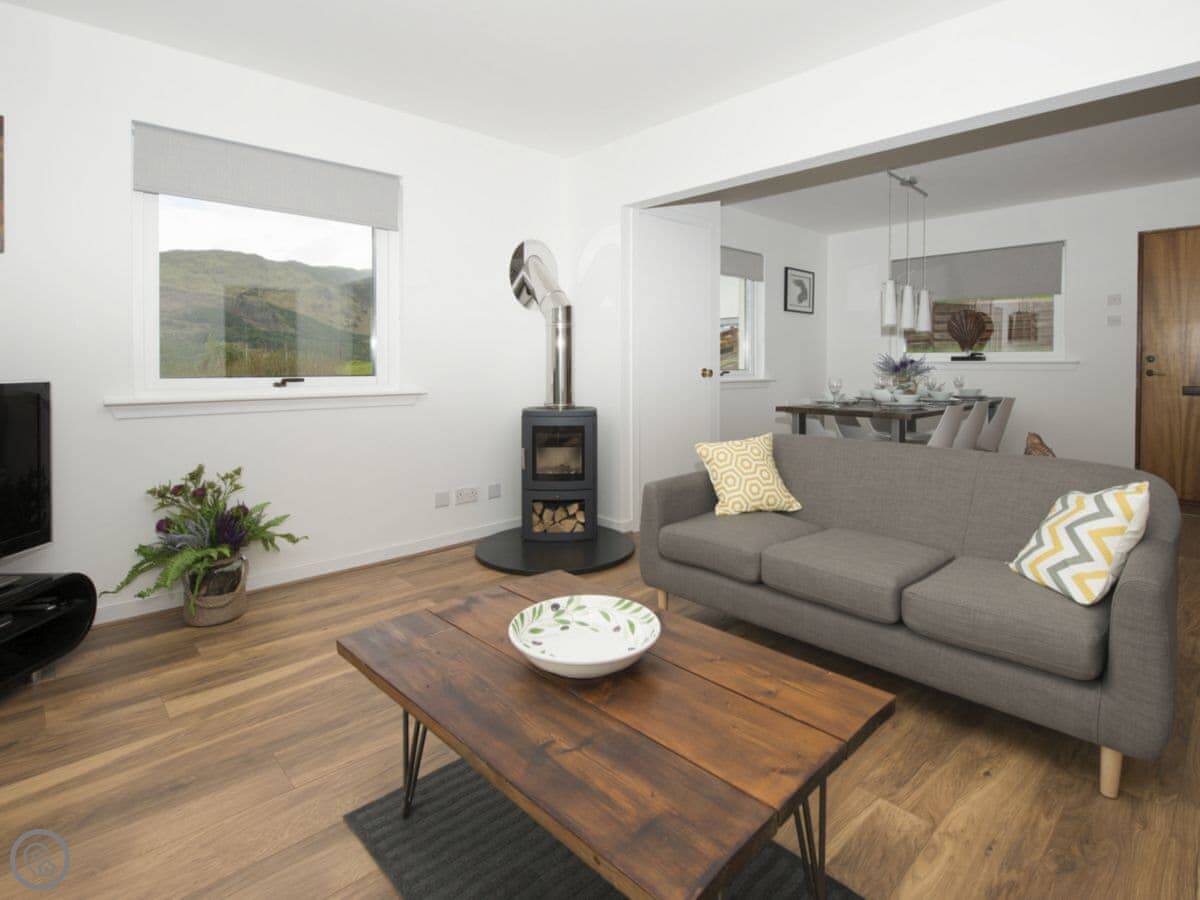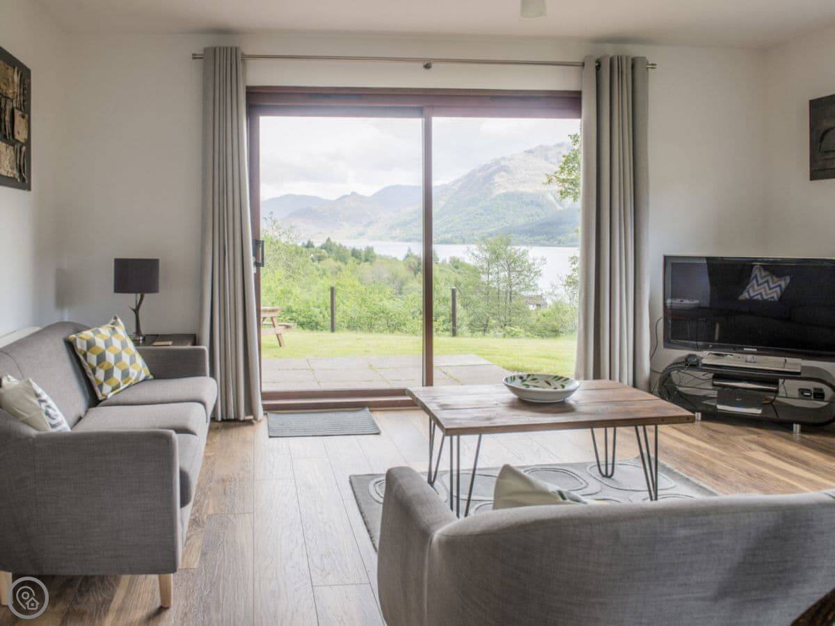 The main thing is the view. The living area has big windows looking out over Loch Duich towards the Kintail hills. You can sit in there and watch the weather roll down the loch all day. It’s not overlooked at all.