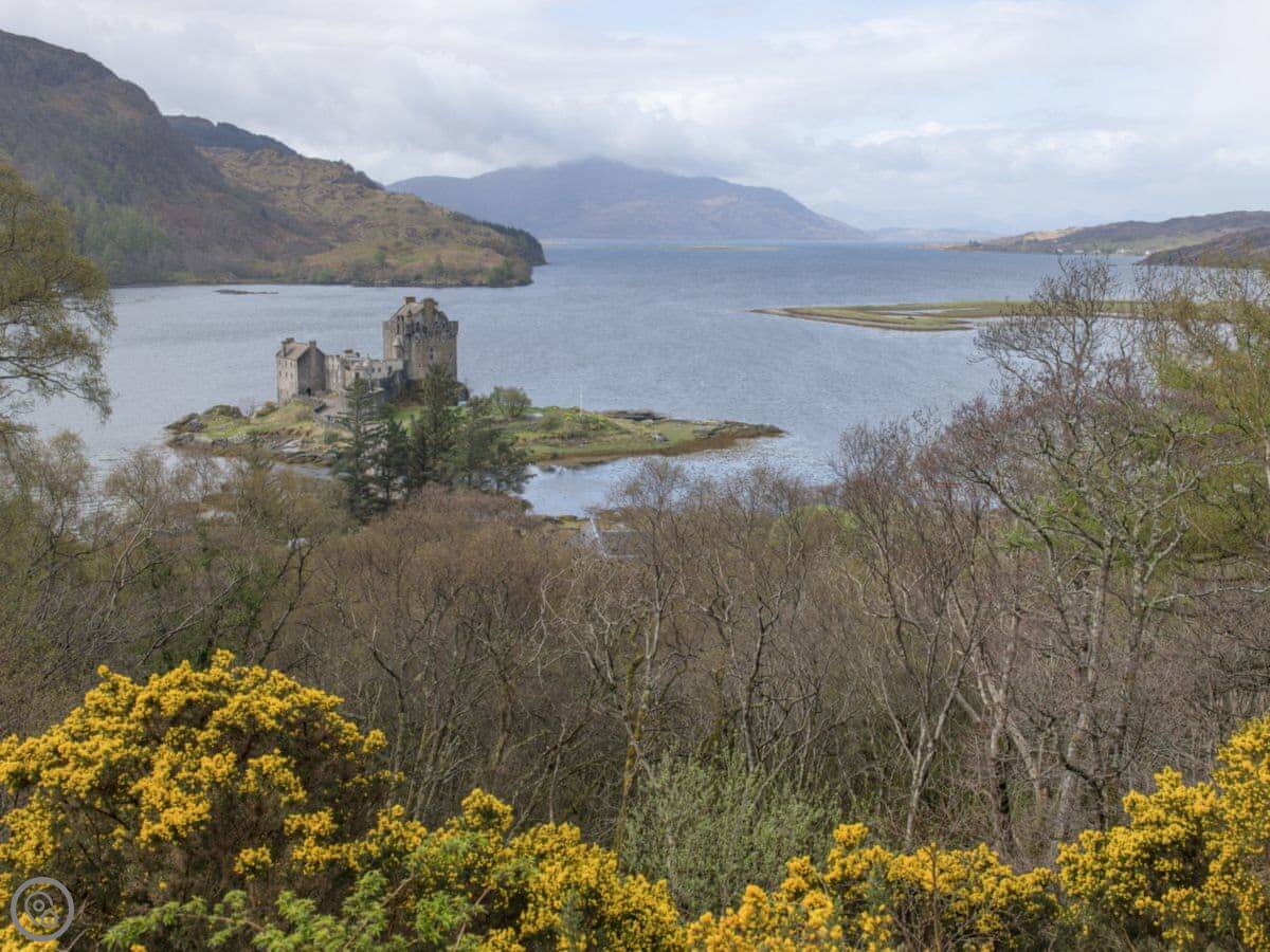 There’s a proper footpath that starts right from the garden gate. You can walk down towards the water, and then from there you get a really good view of Eilean Donan Castle across the loch.