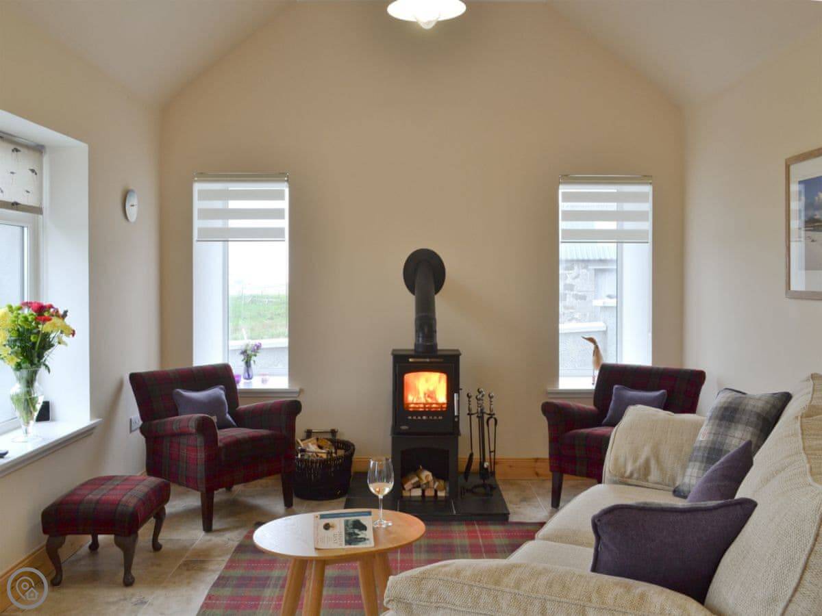 Kilbride Beach Cottage is in West Kilbride, on one of the southern isles in the Outer Hebrides. It's a detached cottage, built in 1909 but it's been extended and renovated since. It sits on a working croft, so there are sheep and hens around. The beach is a few minutes' walk away.