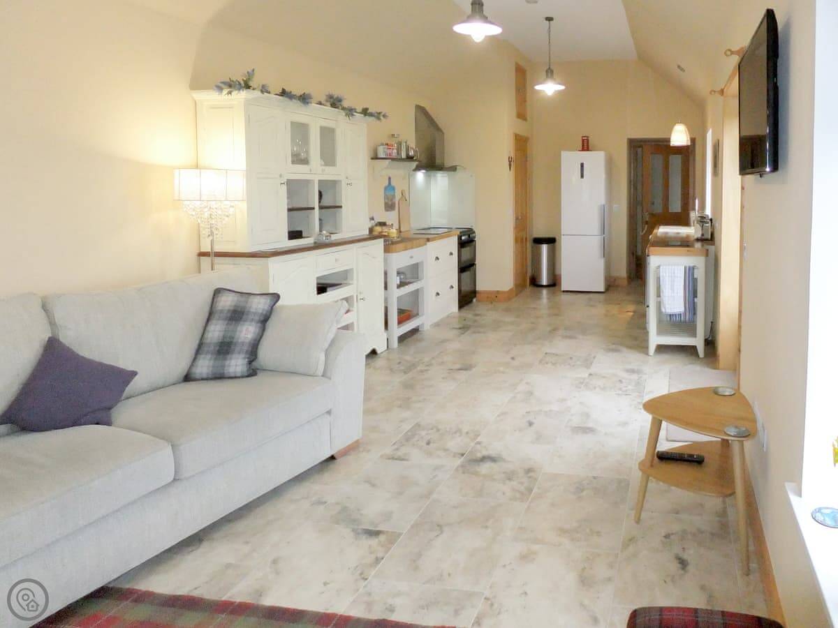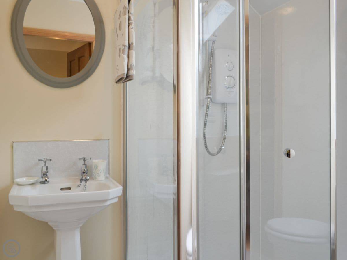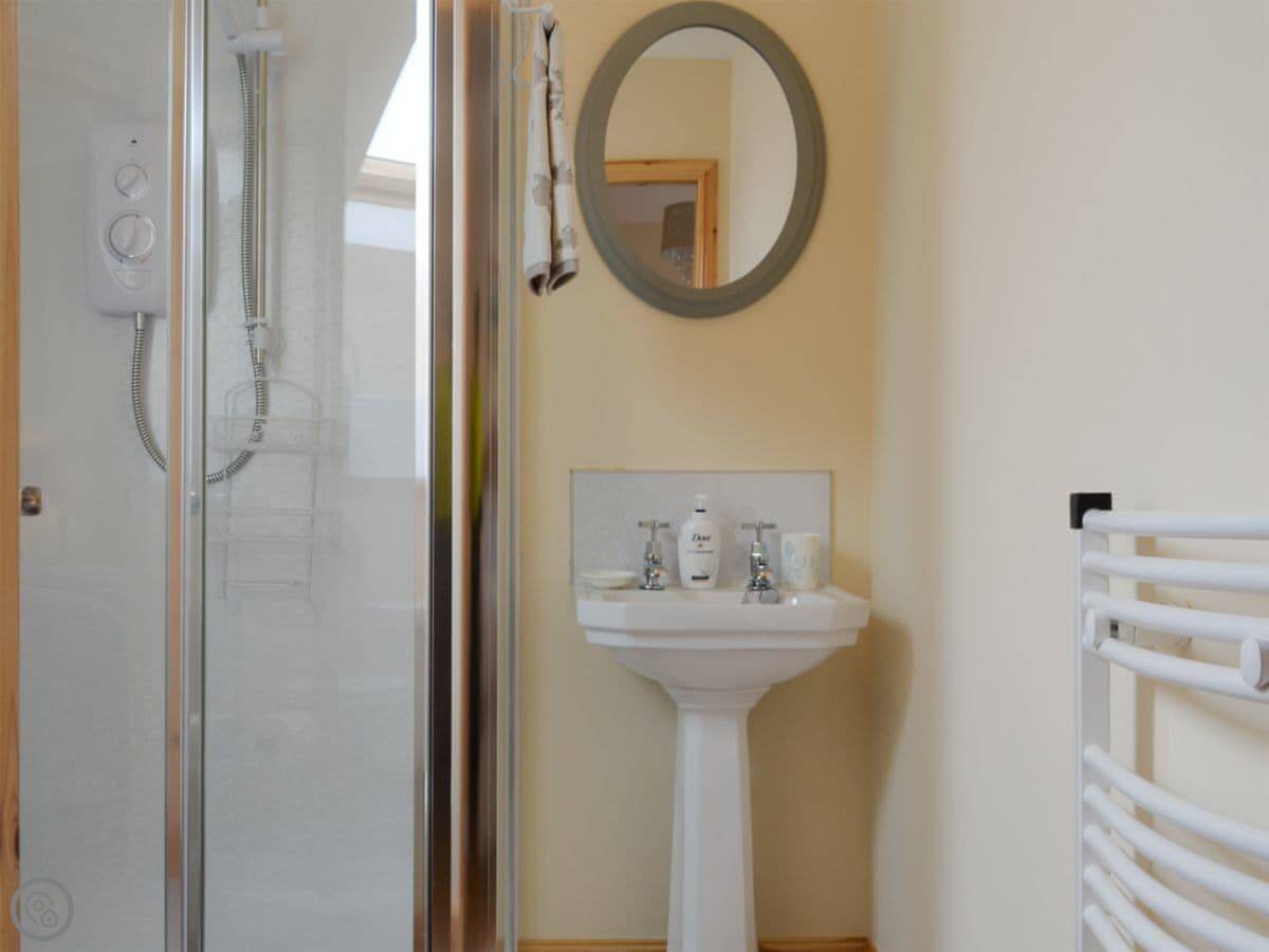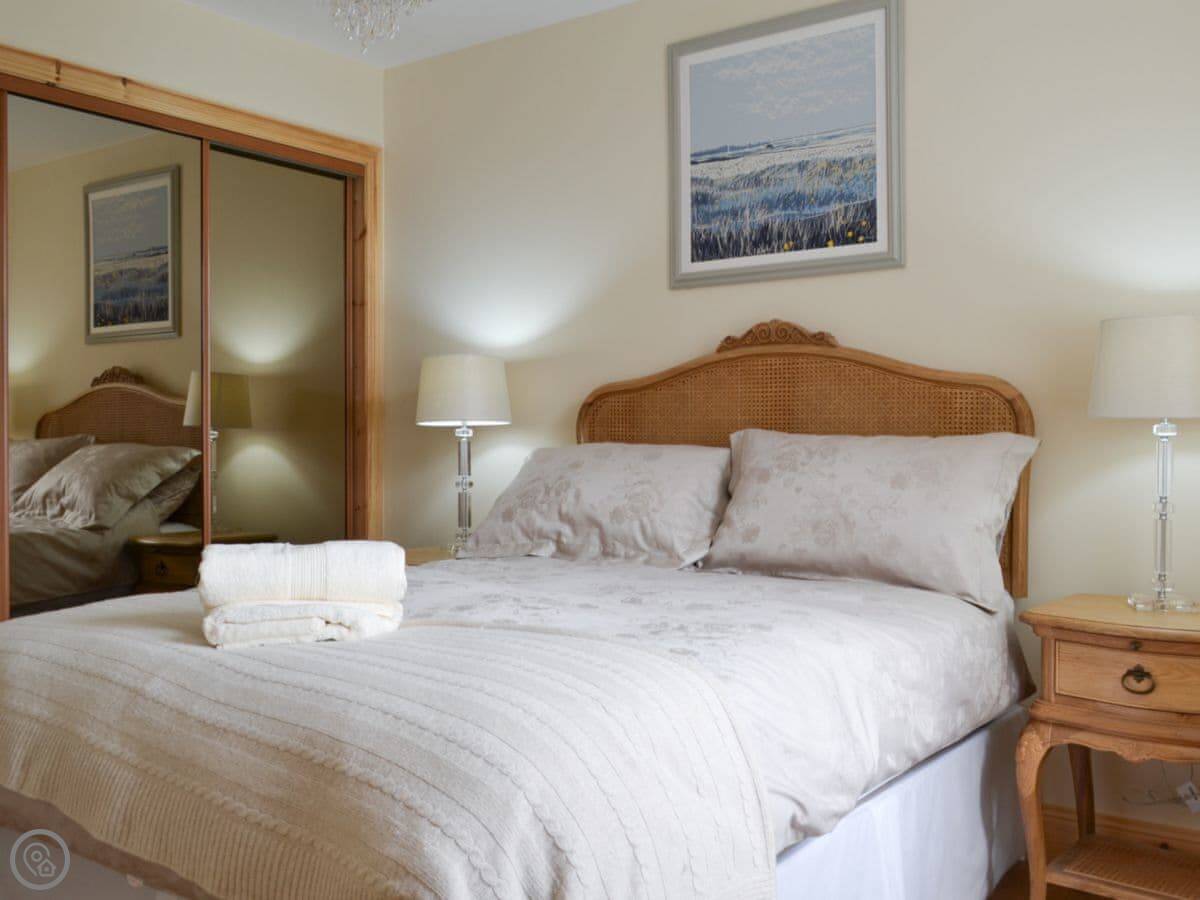 It sleeps four. Three bedrooms, three bathrooms. One of the bathrooms is a wet room on the ground floor. It's got a 4 Star rating. It's comfortable and well-equipped.