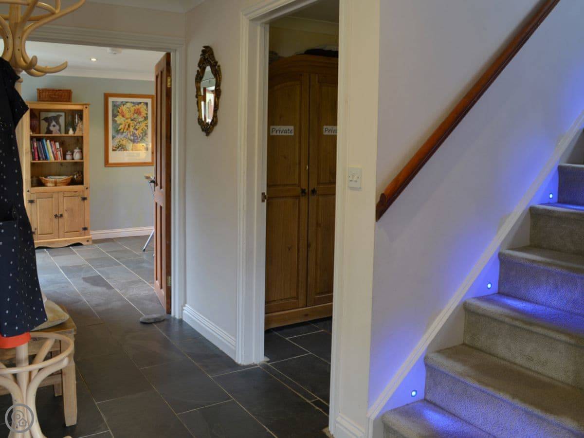 The house sleeps ten people. Five bedrooms, four bathrooms. It's got a 5 Star rating. That means it's well-equipped and comfortable. Some of the rooms are on the ground floor and the entrance is wheelchair accessible.
