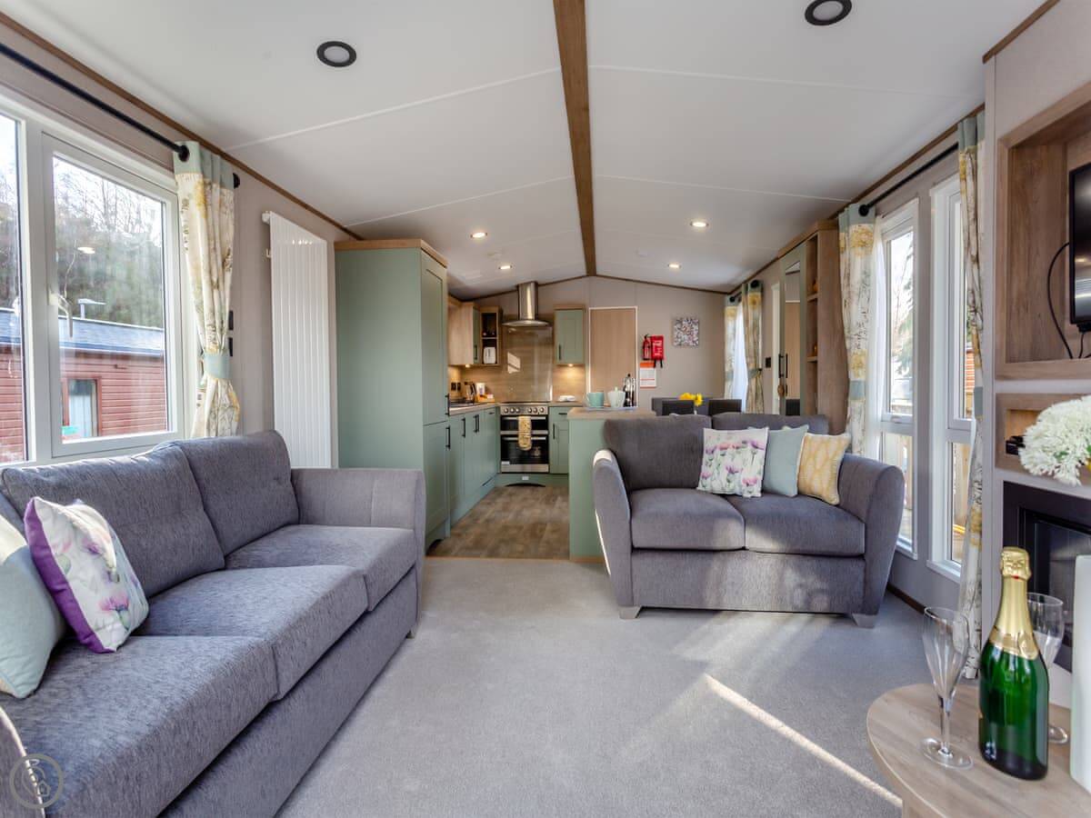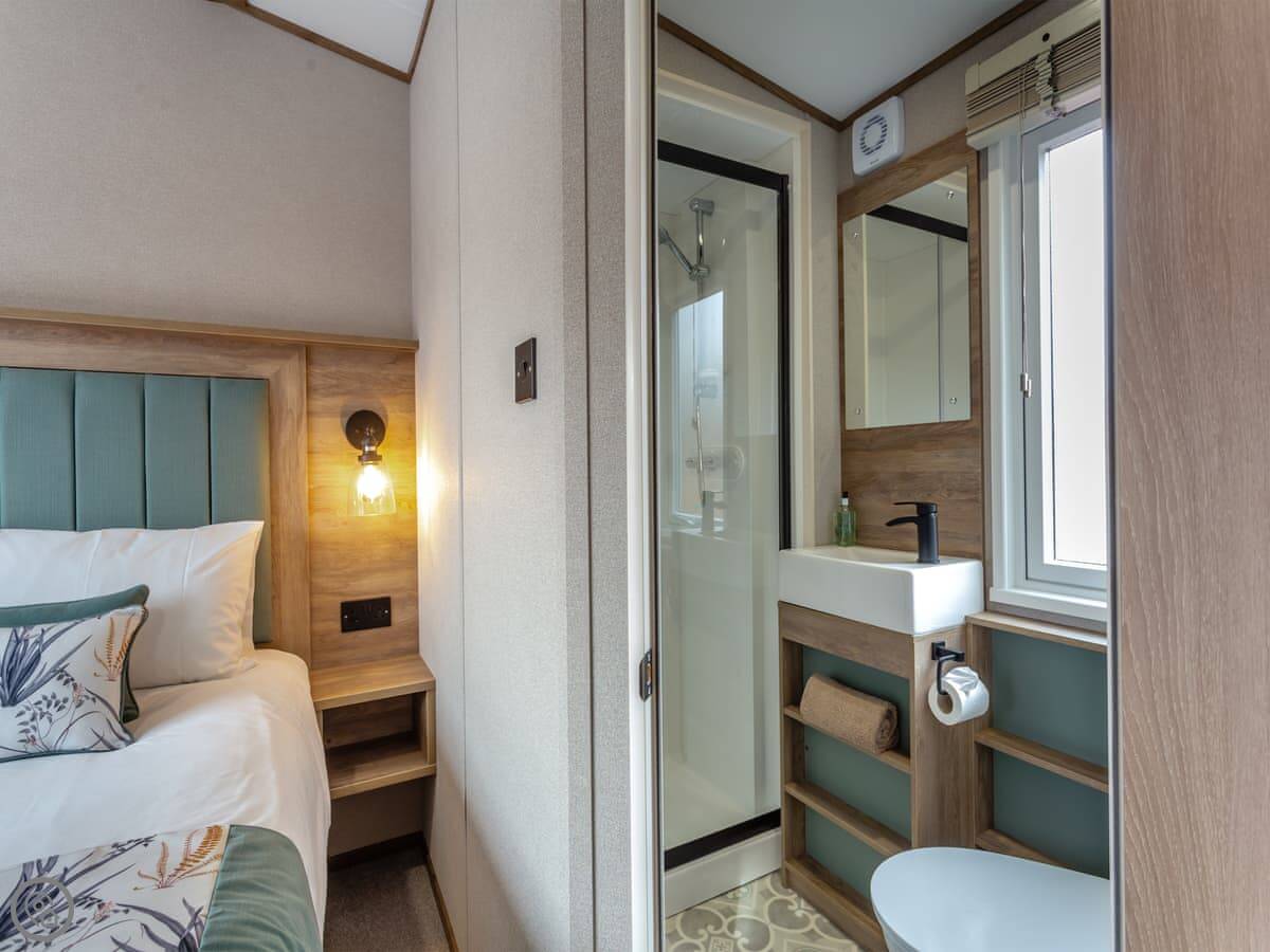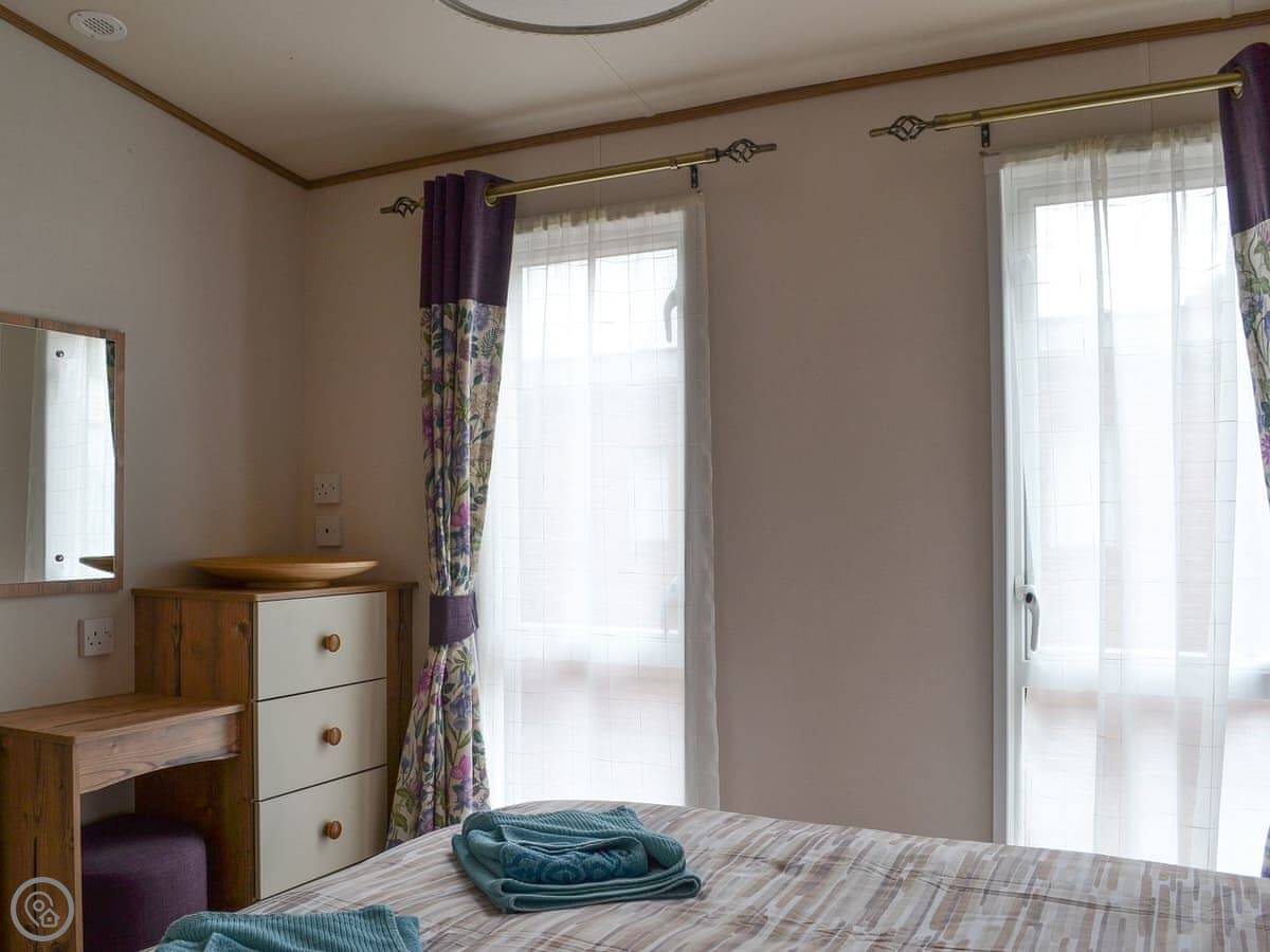 It sleeps two people. There's one bedroom but two bathrooms, which is a bit unusual but handy. The place is clean and tidy, and it's got a 3 Star rating. The garden is enclosed and it's got a view of the river.