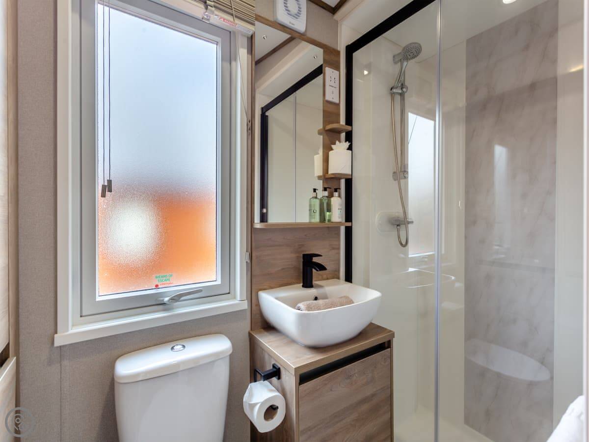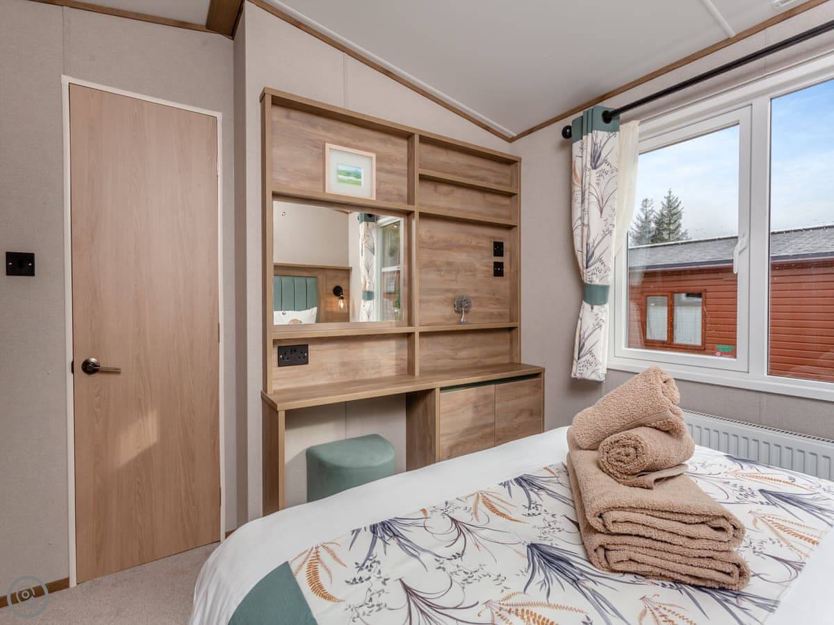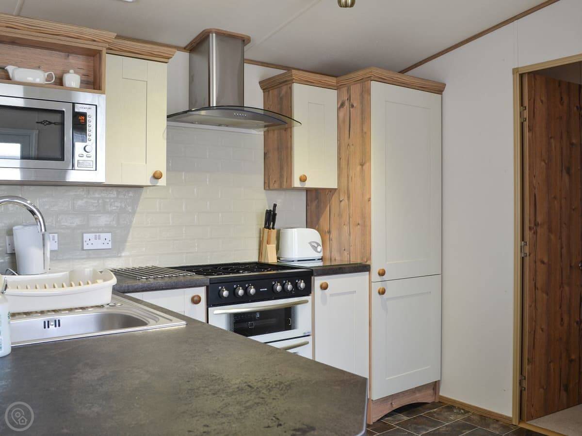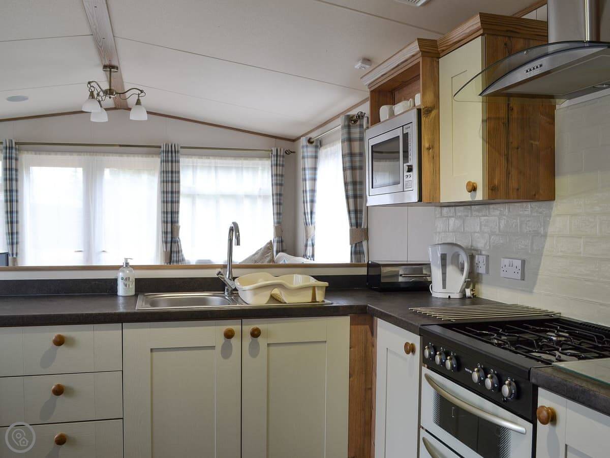 It sleeps two people. There's one bedroom but two bathrooms, which is a bit unusual but handy. The place is clean and tidy, and it's got a 3 Star rating. The garden is enclosed and it's got a view of the river.