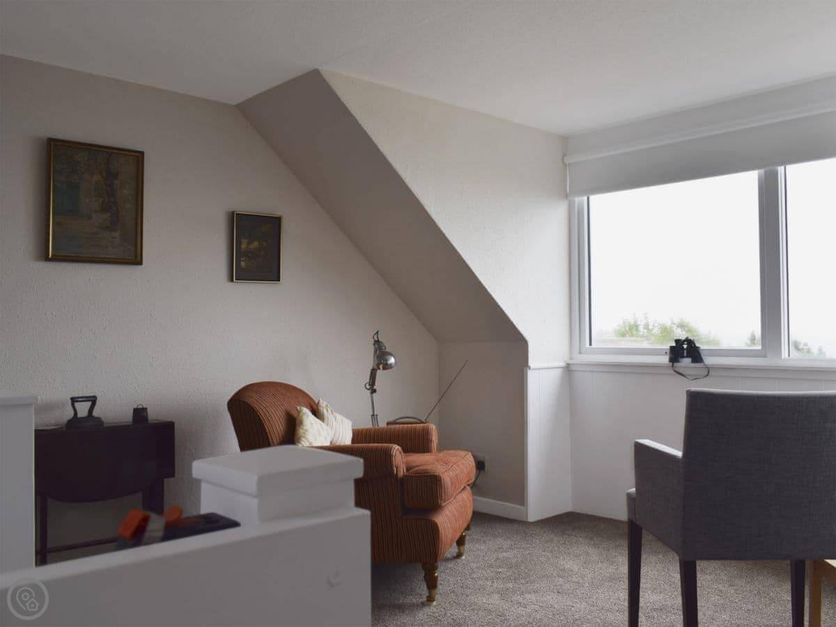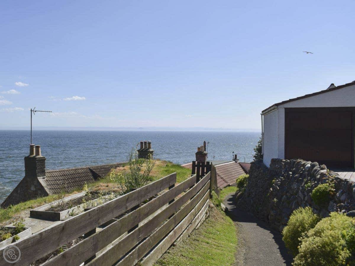 Kannier Cottage is on the hill above St Monans. It looks out over the village rooftops and the sea. You can see right across the Firth of Forth.
