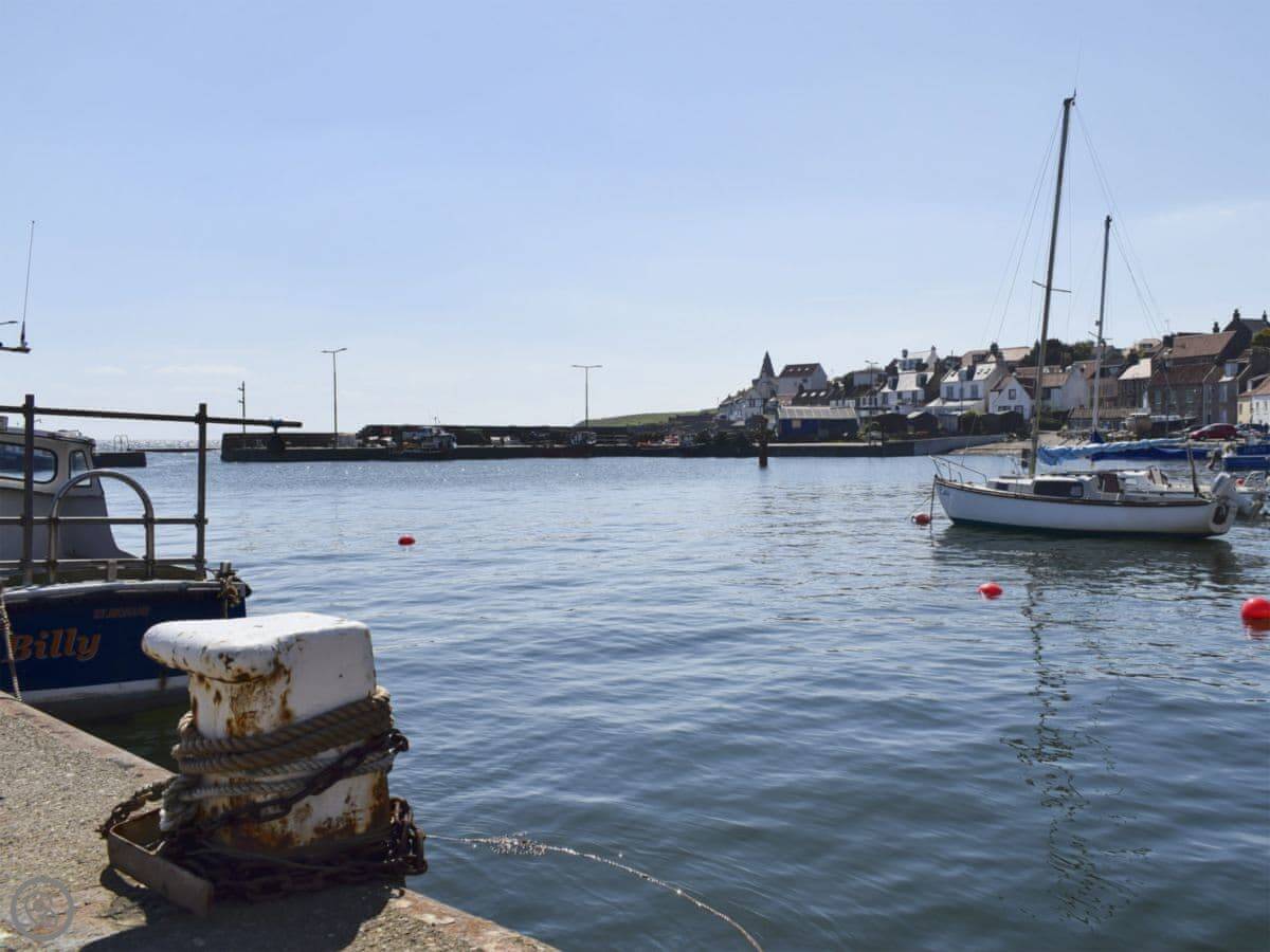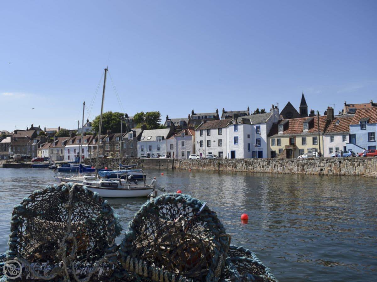 St Monans is a quiet little place. The harbour is nice. There's a good fish restaurant down there. The shop and the pub are about five minutes' walk away, down the hill. The Fife Coastal Path runs right past the bottom of the lane. You can walk to Pittenweem or Elie along it.