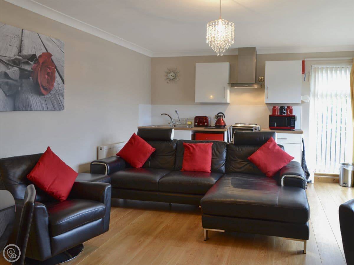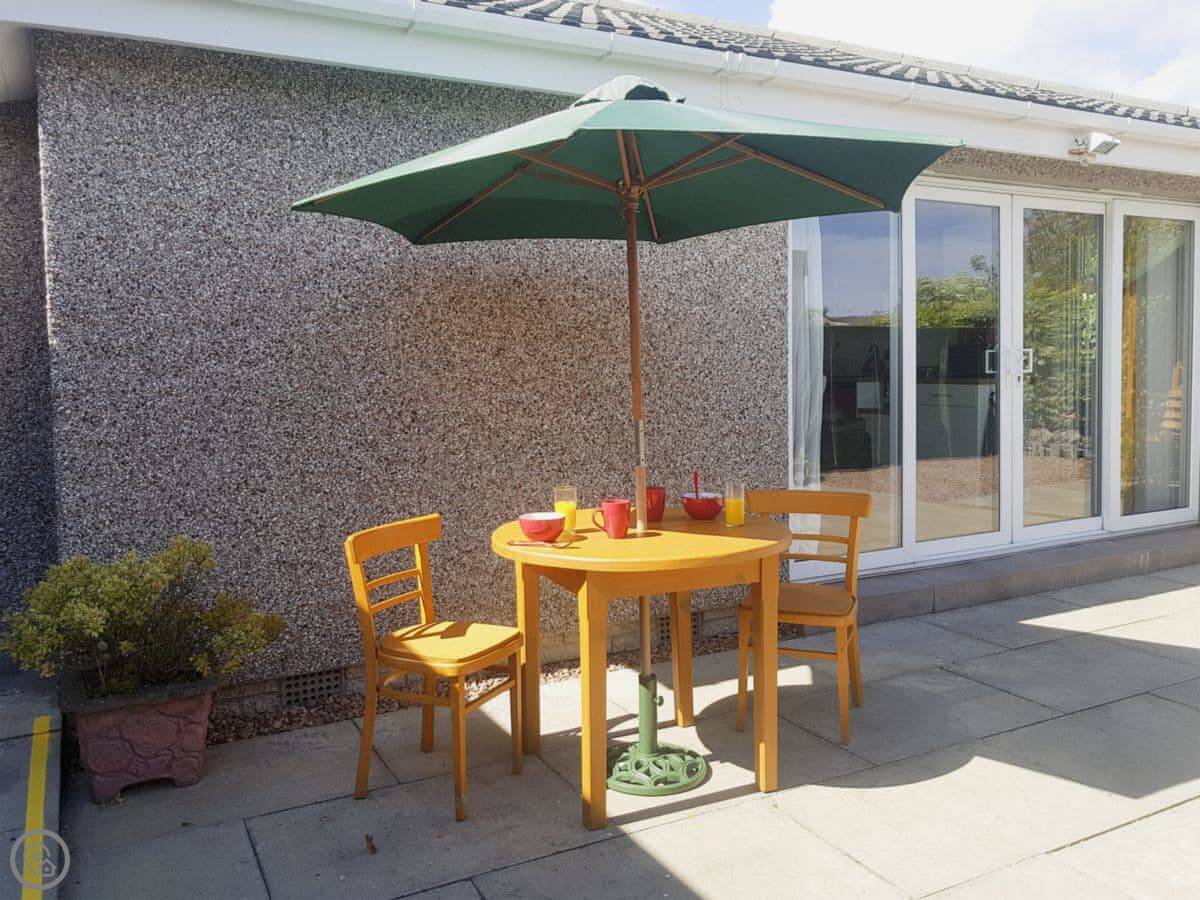 The beach is about ten minutes' walk. It's a long, sandy one. There's a play park for kids and two golf courses on the links. The town centre with shops and places to eat is a five minute walk. The local pub is a few hundred yards up the road.