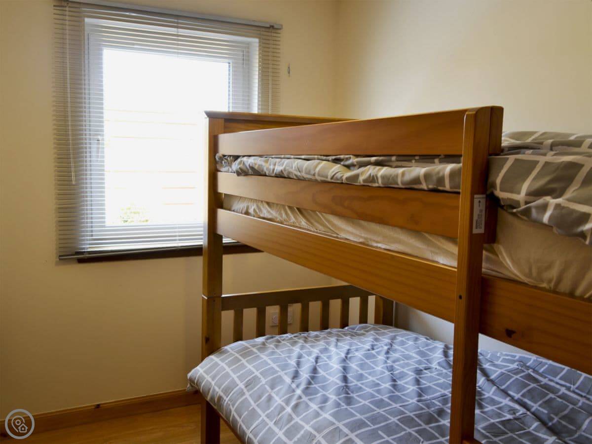 It sleeps four. Three bedrooms upstairs, one bathroom down. Everything's modern inside, it's comfortable and clean. It's got a 4 Star rating.