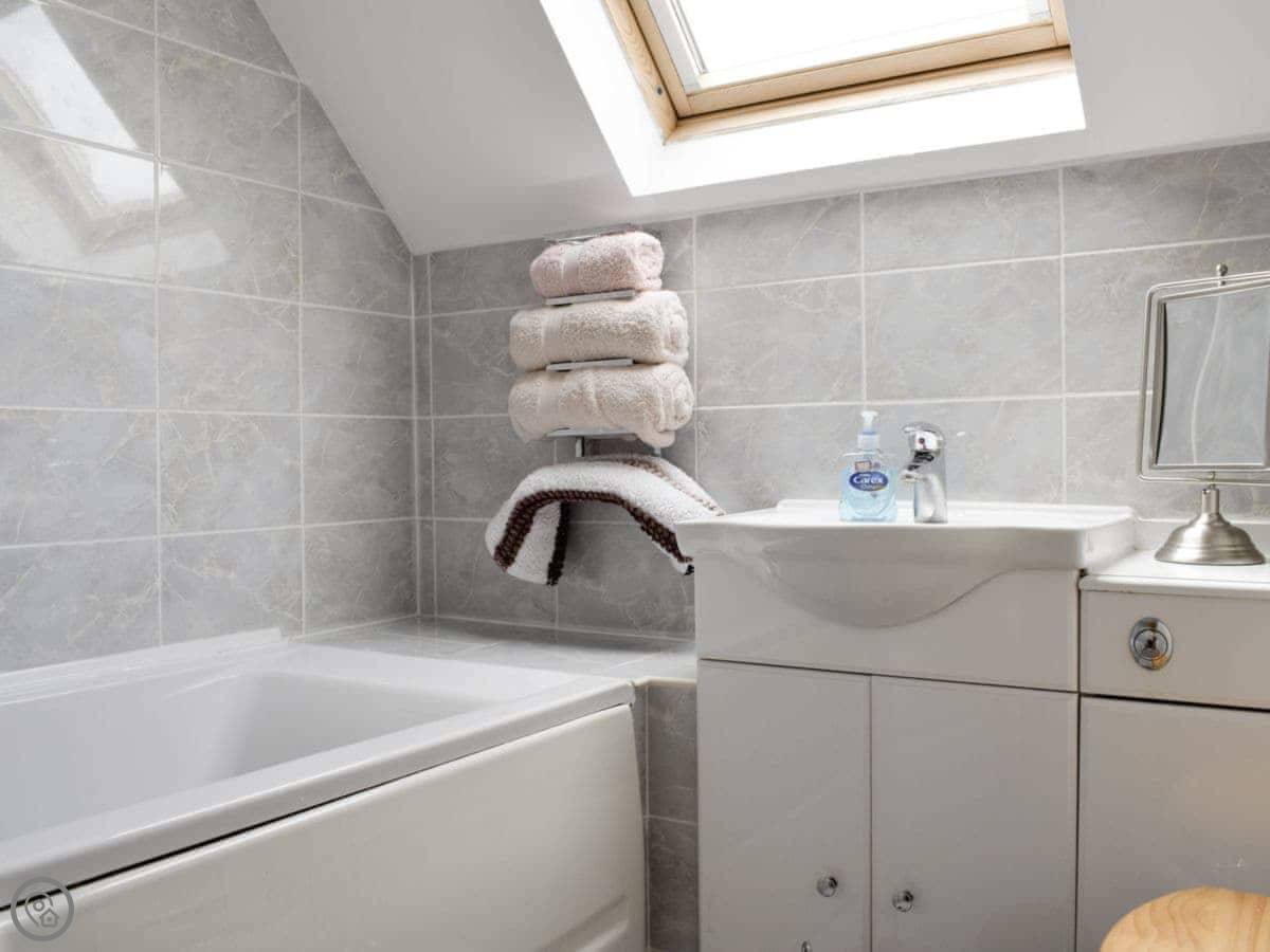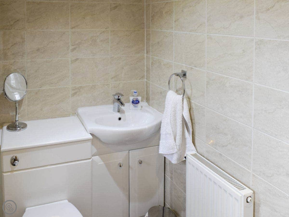 It sleeps four, in two bedrooms. One double, one twin. One bathroom, with a shower over the bath. It's got a Four Star rating, so it's comfortable and well-equipped. Good WiFi and TV. Parking is right outside.