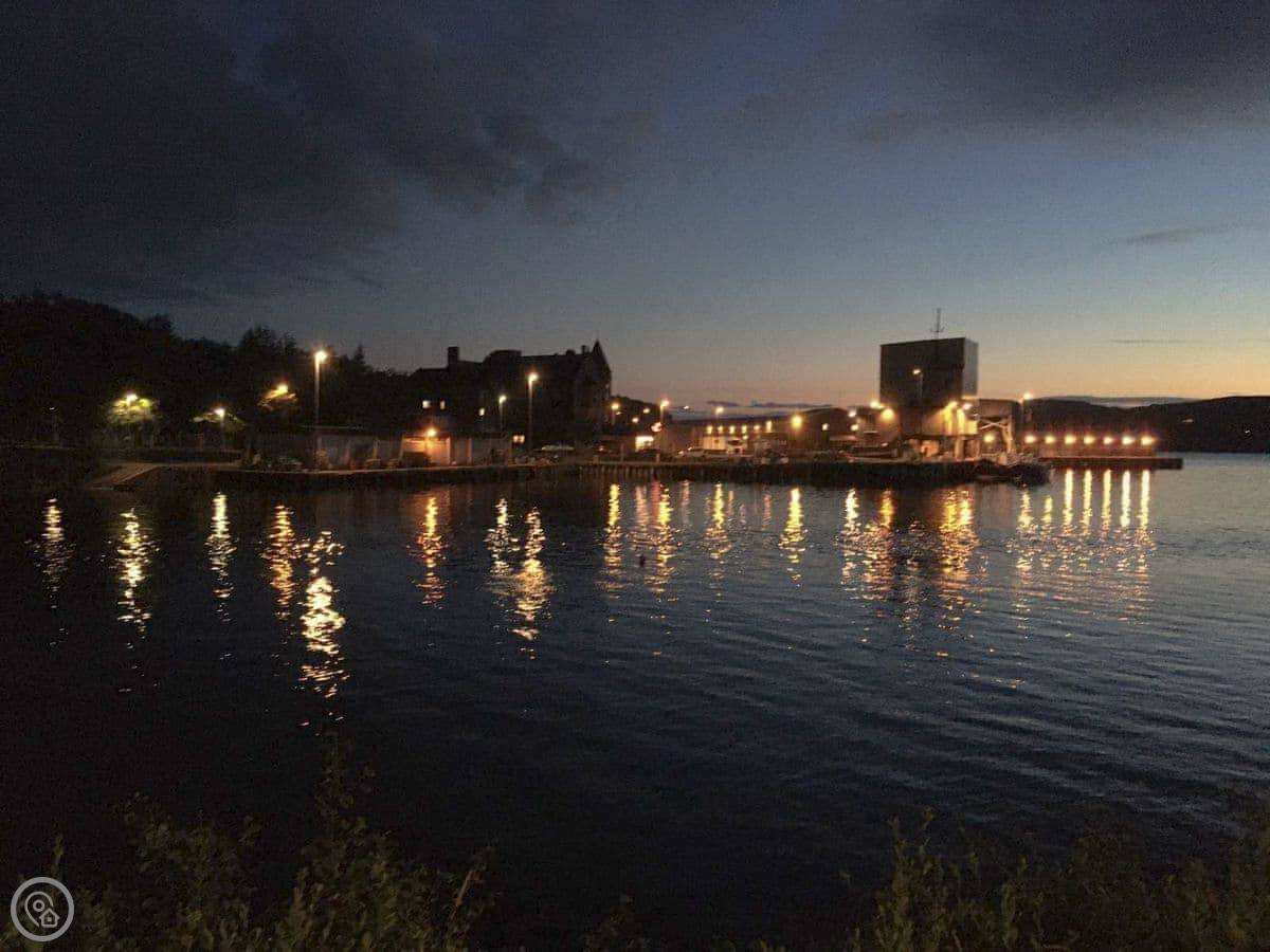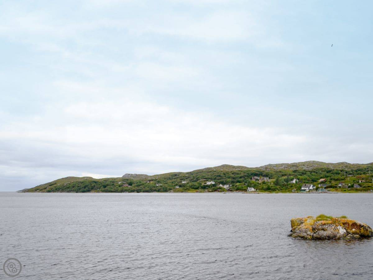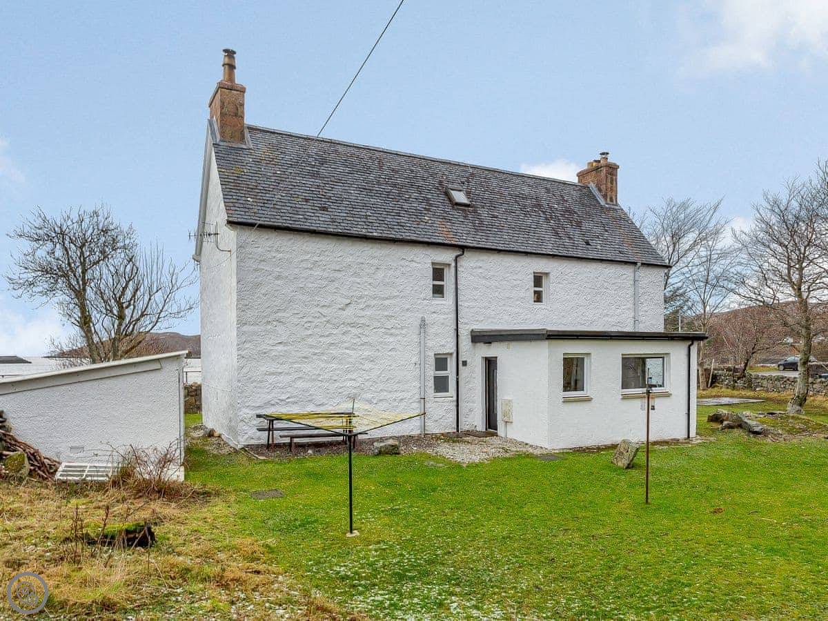 You're right in the village. The pubs, a couple of restaurants, and the shops are about a two-minute walk. The harbour's there too. For a really good beach, Achmelvich is about ten minutes' drive. It's white sand.