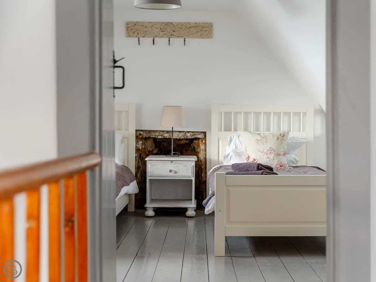 The house is old, built around 1800. It belonged to the village shoemaker originally. We've done it up, but tried to keep the character. There are old fireplaces and stone walls. The stairs are the original wide ones, but they're still stairs, so mind your head on the landings.