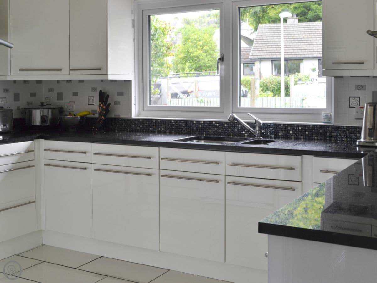 River Mill House is in Ballachulish, near Glencoe. It's a big detached house right by the river. It sleeps twelve, with six bedrooms and four bathrooms.