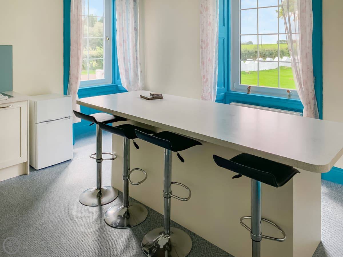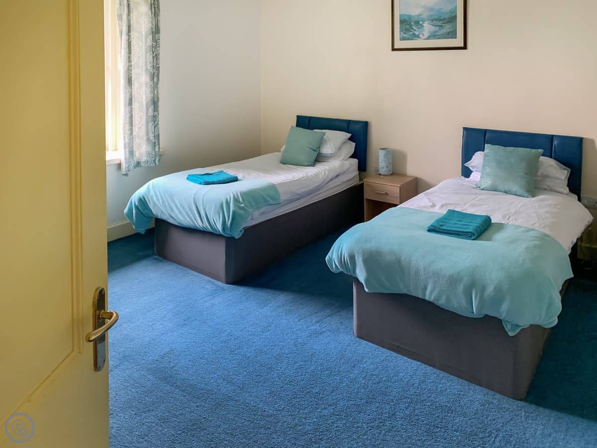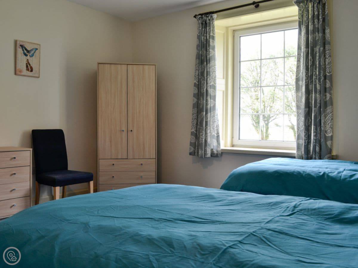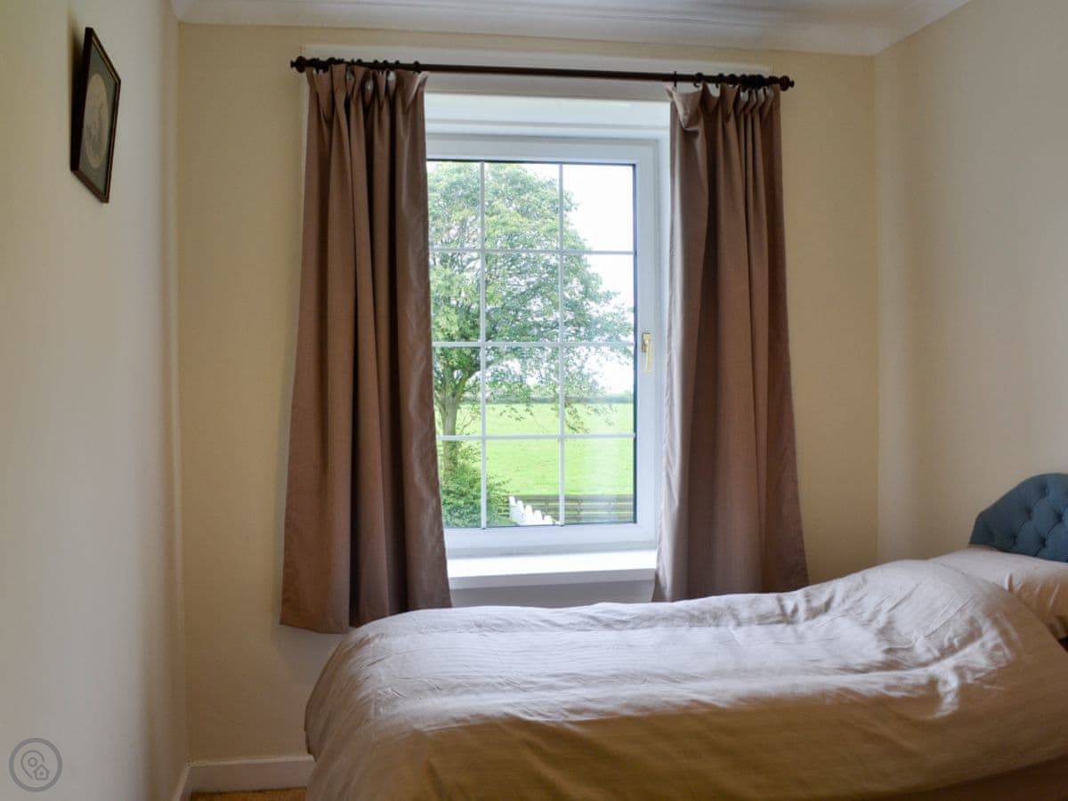 The house sleeps five. Three bedrooms, one bathroom. It's a 3 Star place, so it's comfortable and clean, not modern. The rooms are big and every window has a view of the fields. You can't really get lost in here.