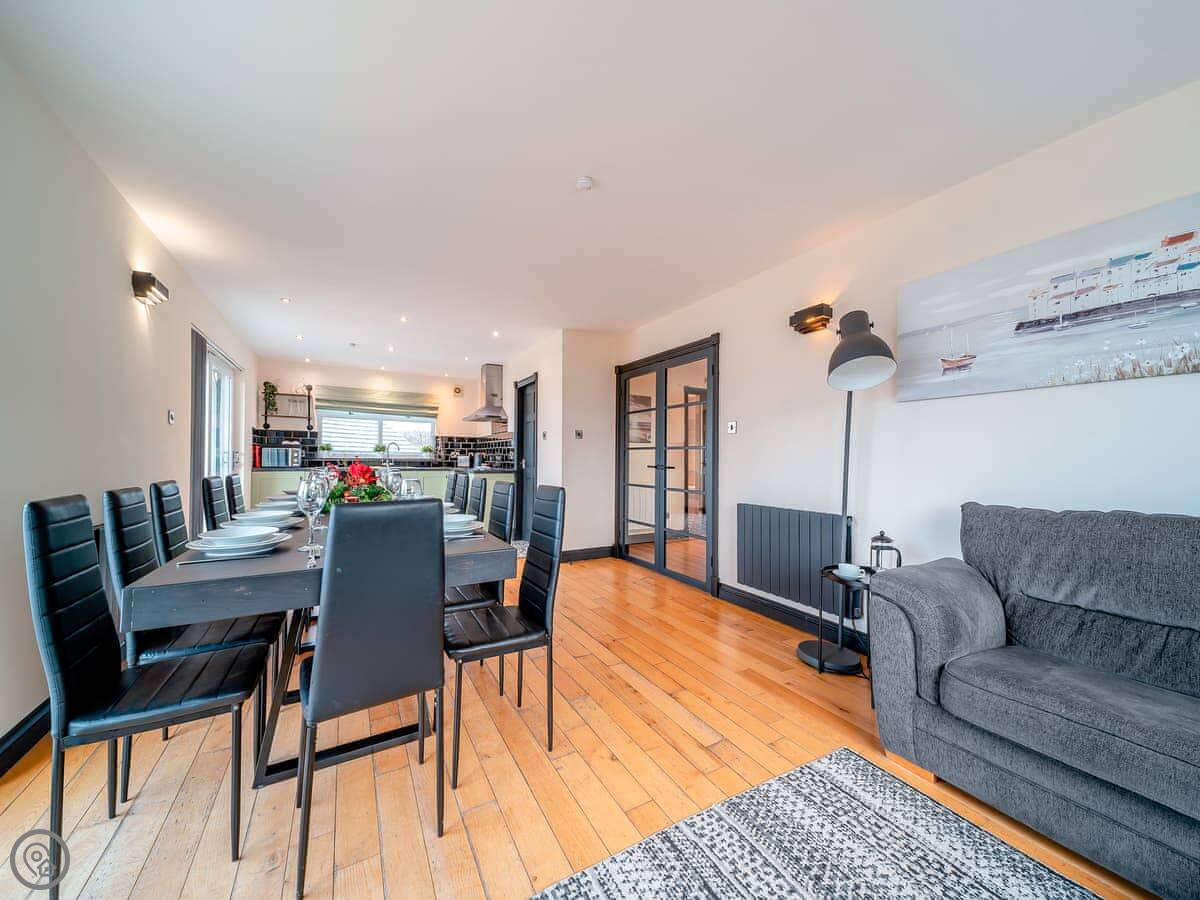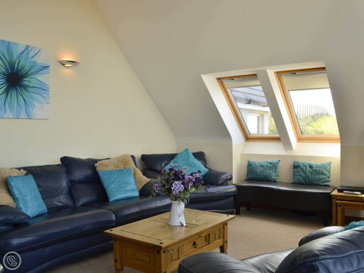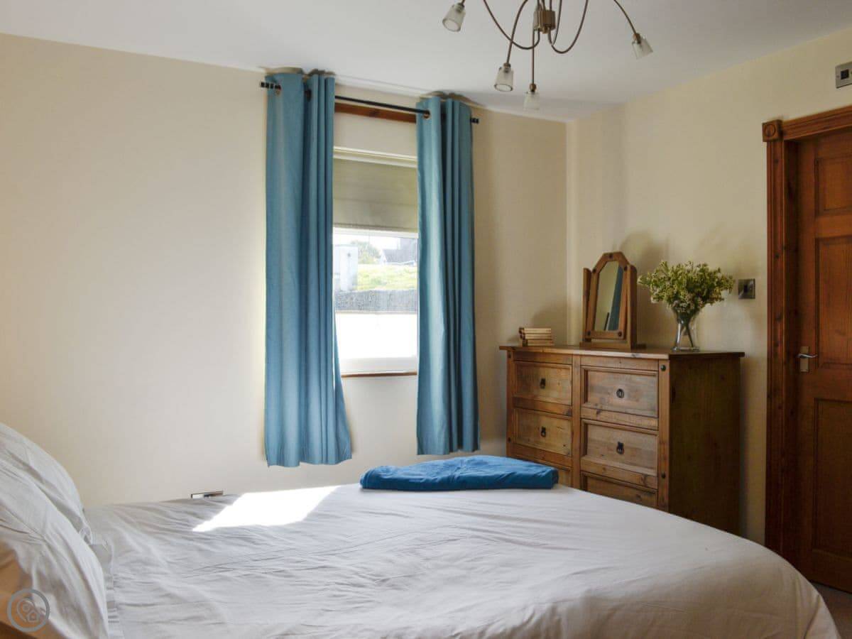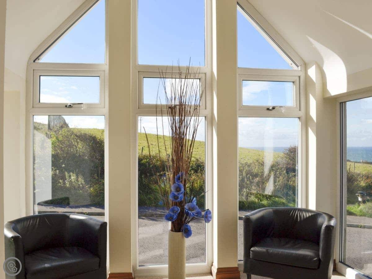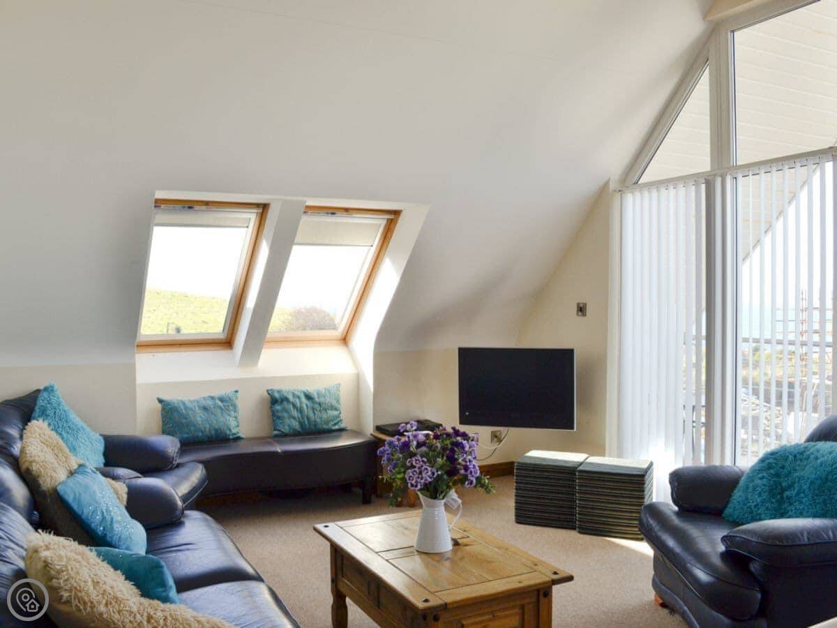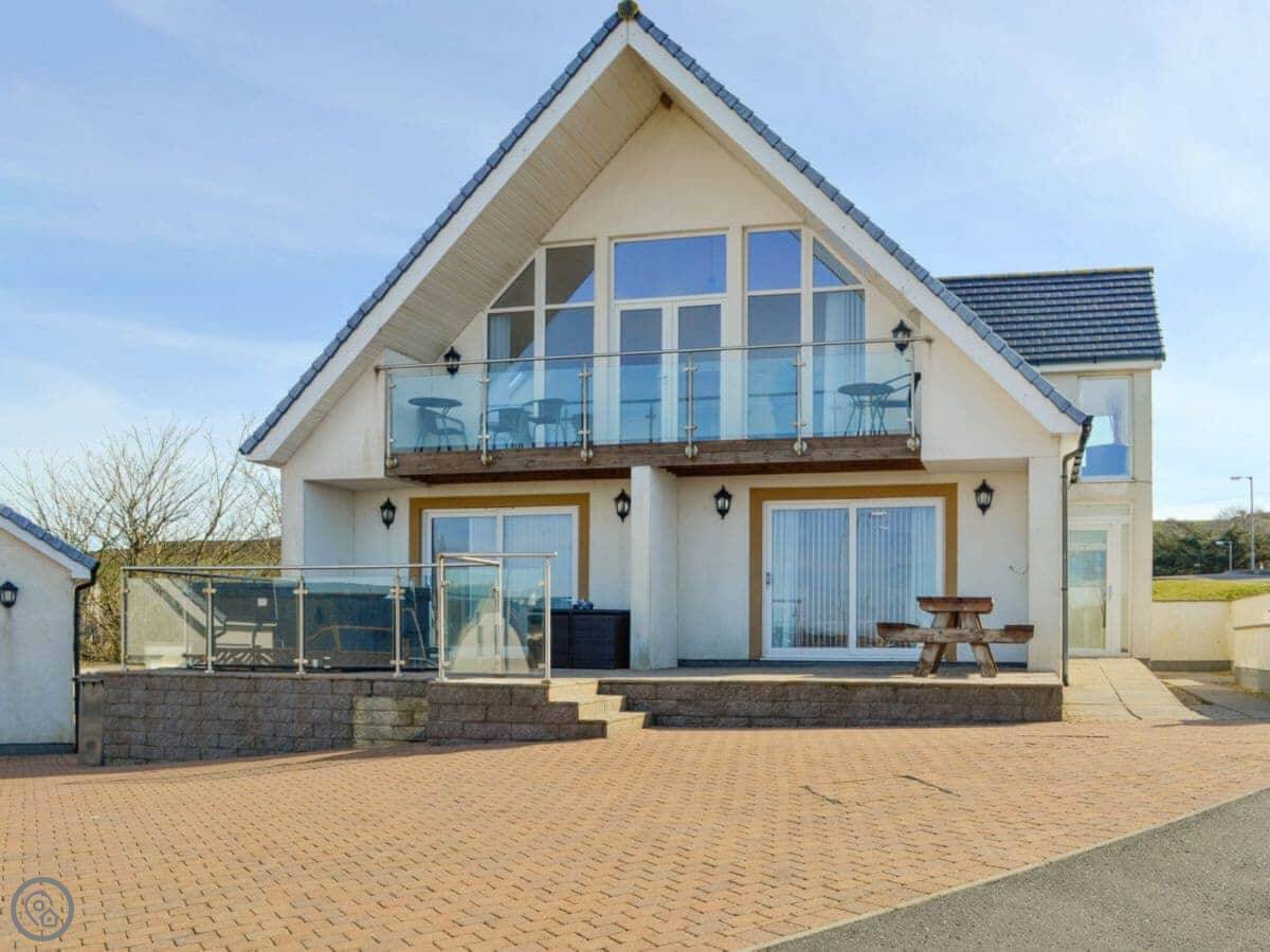 The main quirk is the living room is upstairs. It's a big room with French doors onto a balcony. You get good views over the town and the harbour from there. There's a pool table and a small bar area in that room too. There's a hot tub out the back.