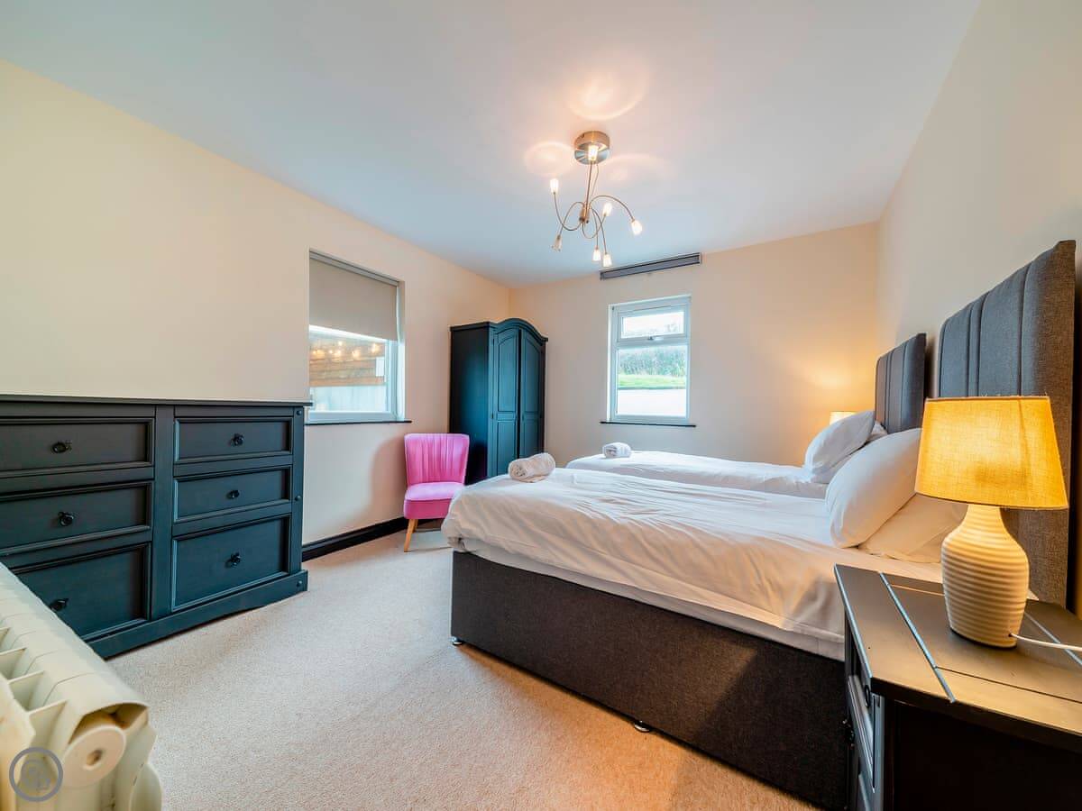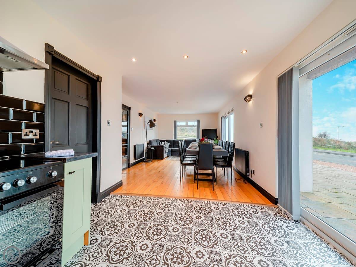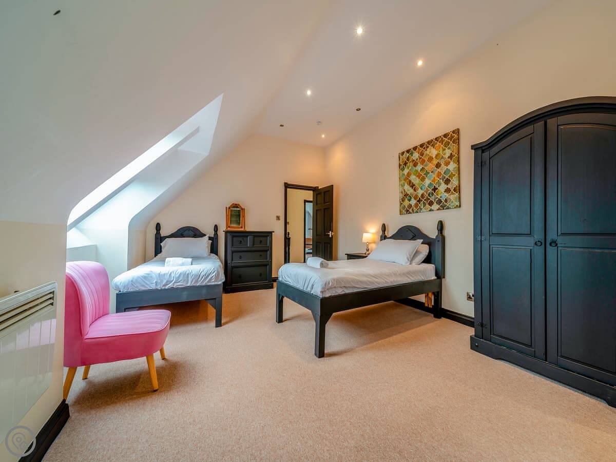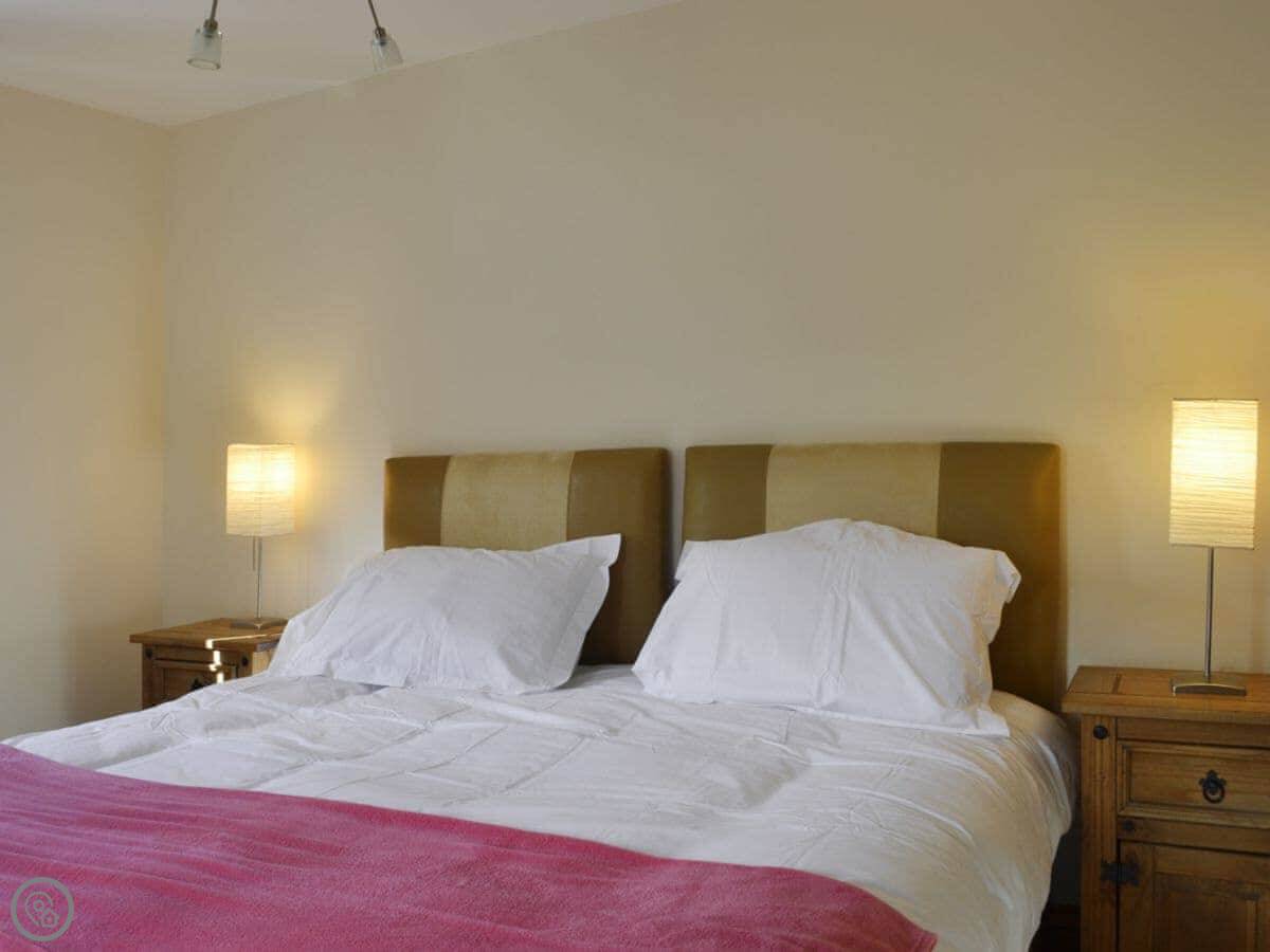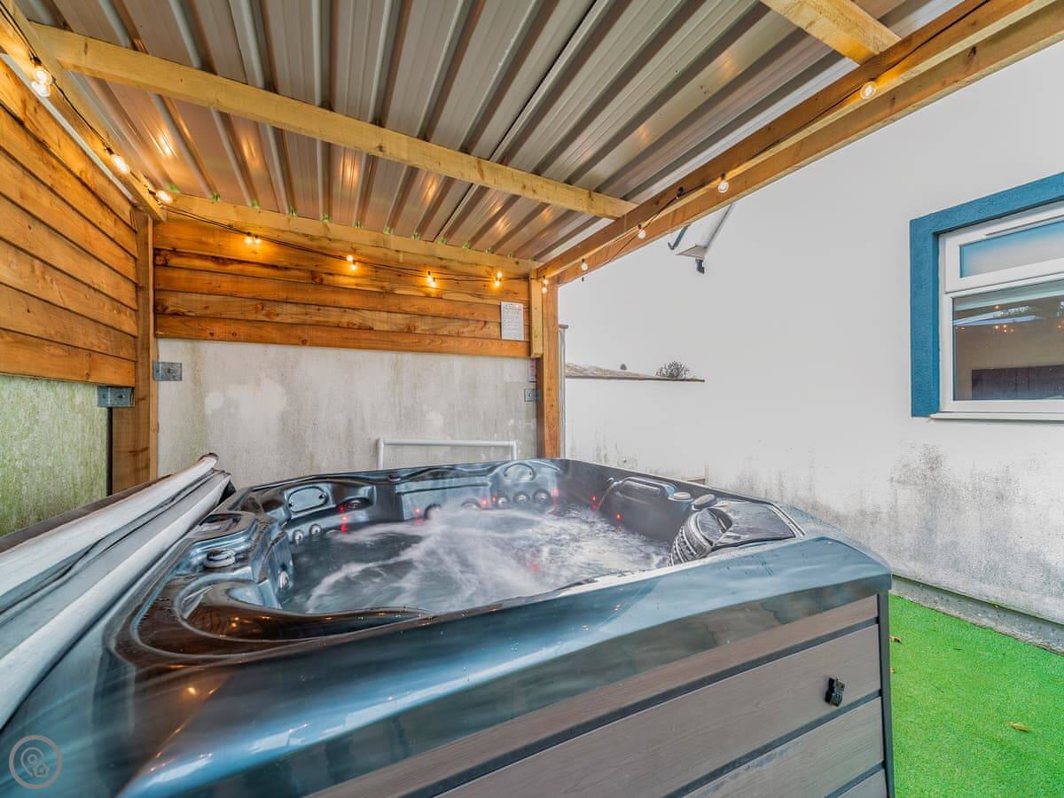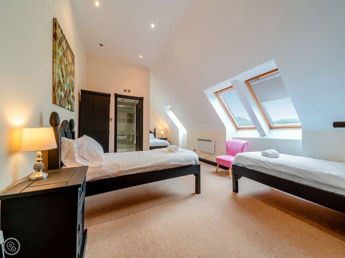 The main quirk is the living room is upstairs. It's a big room with French doors onto a balcony. You get good views over the town and the harbour from there. There's a pool table and a small bar area in that room too. There's a hot tub out the back.
