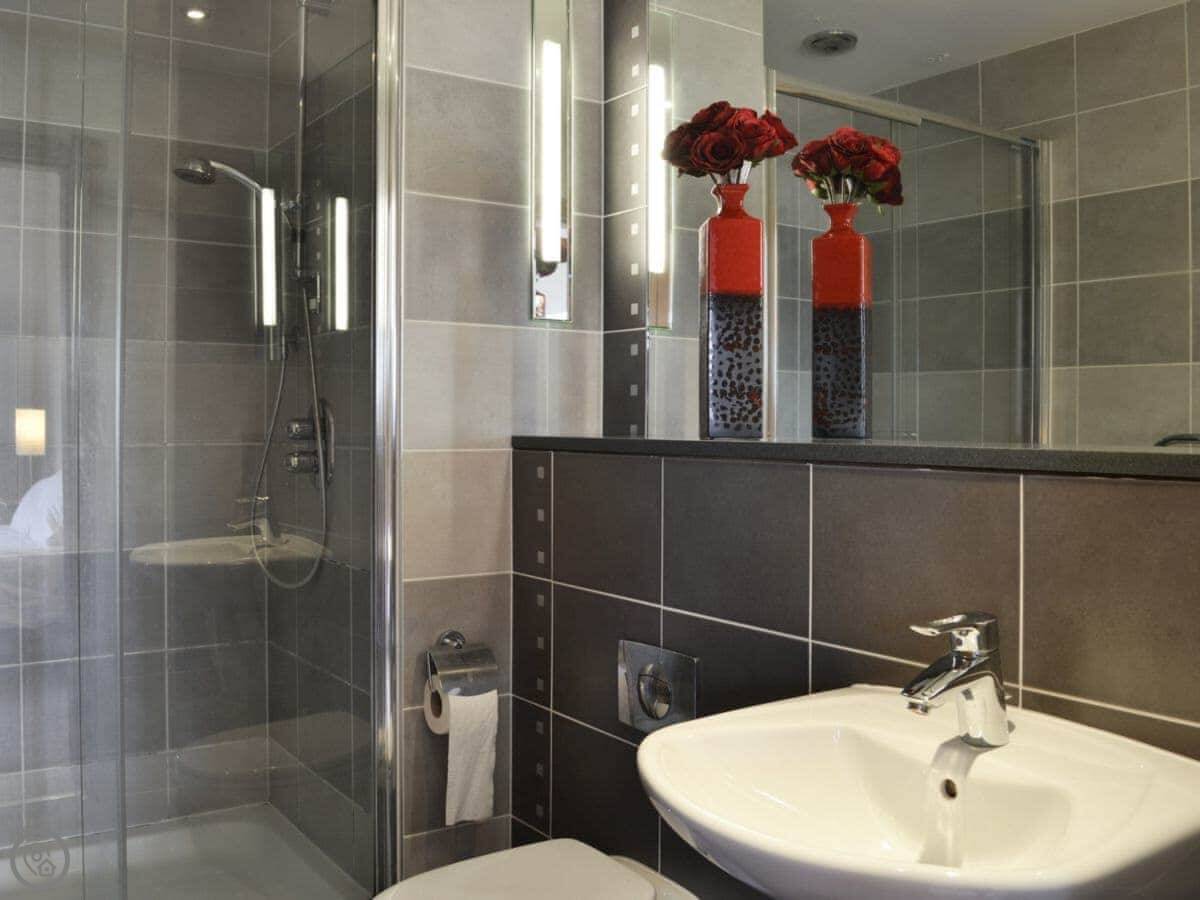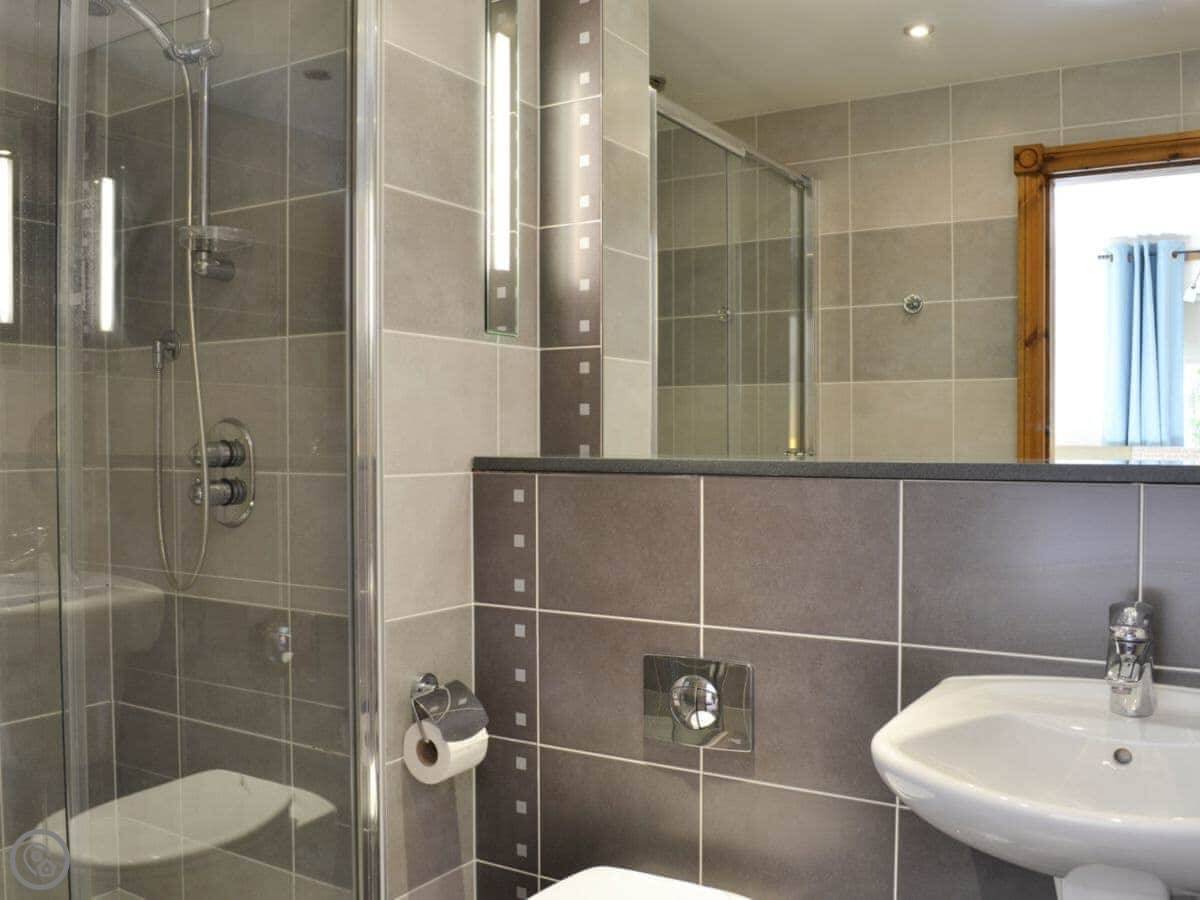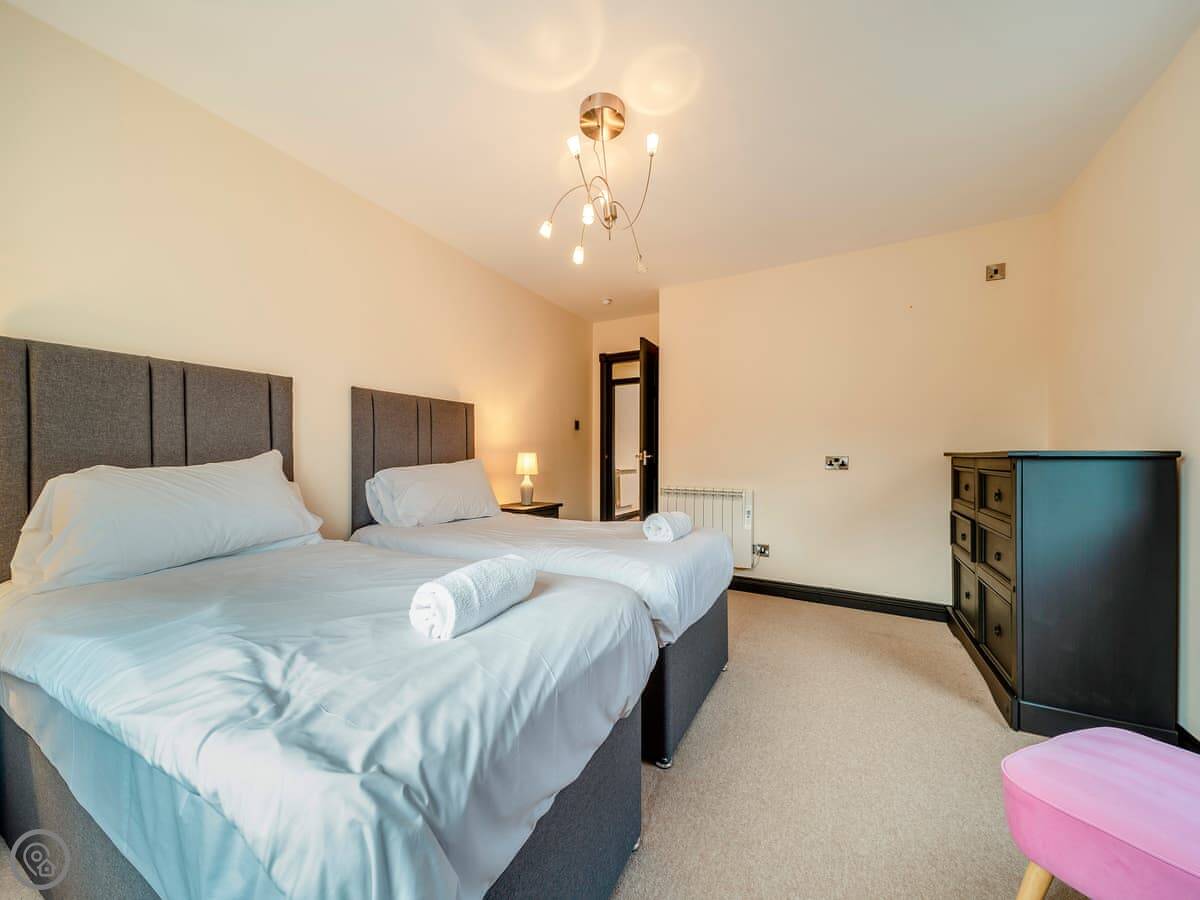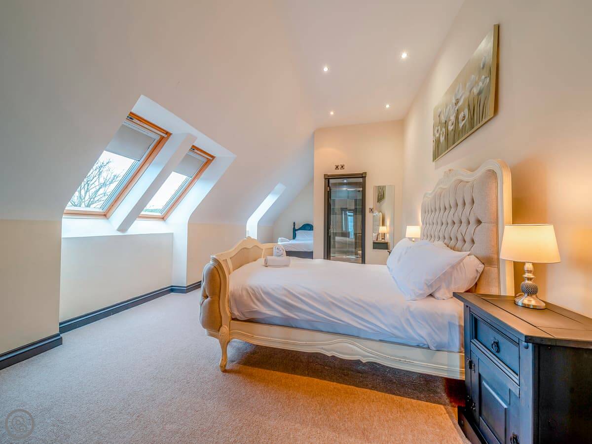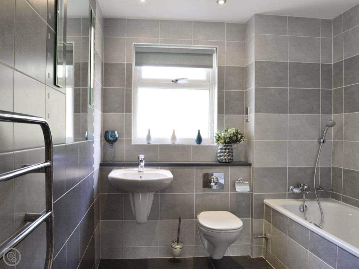 The main quirk is the living room is upstairs. It's a big room with French doors onto a balcony. You get good views over the town and the harbour from there. There's a pool table and a small bar area in that room too. There's a hot tub out the back.