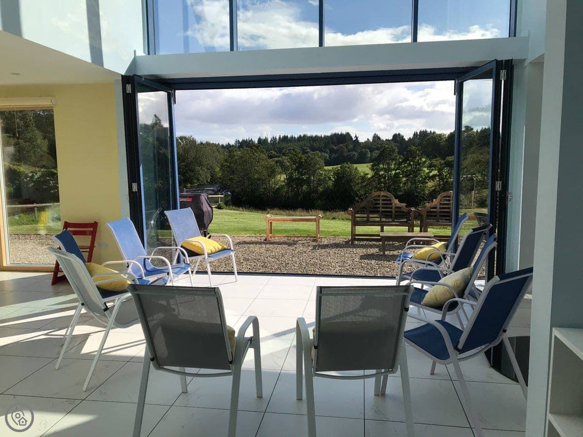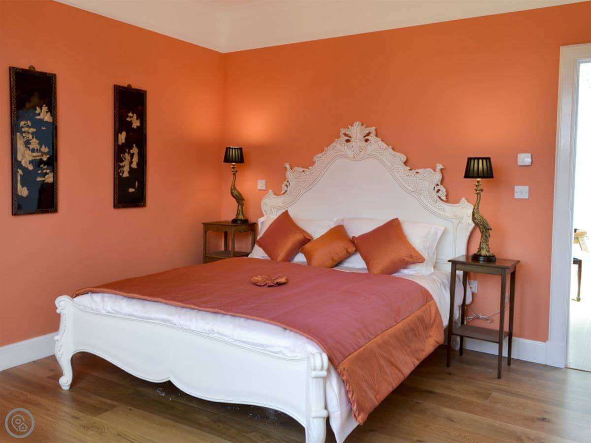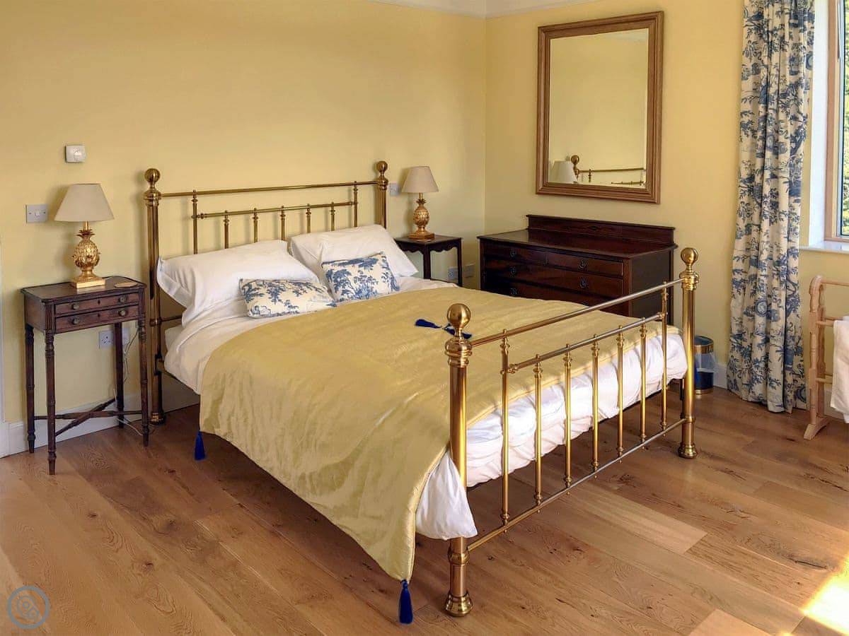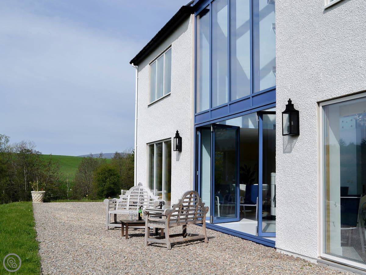 It sleeps ten people. Five bedrooms, four bathrooms. It's a 4 Star place. It's a good spot for a family get-together or a group of friends. Up to two dogs are welcome. Stag or hen parties aren't, and there's no hot tub.