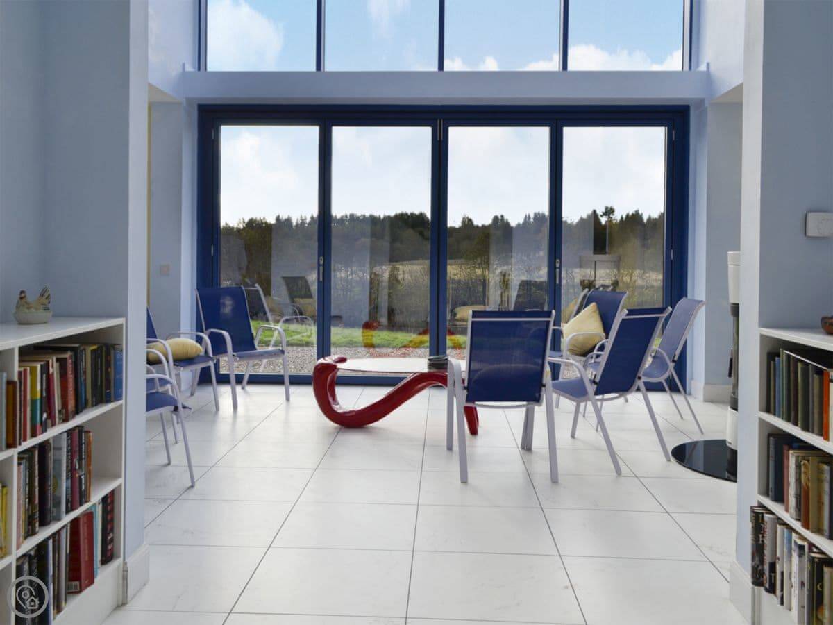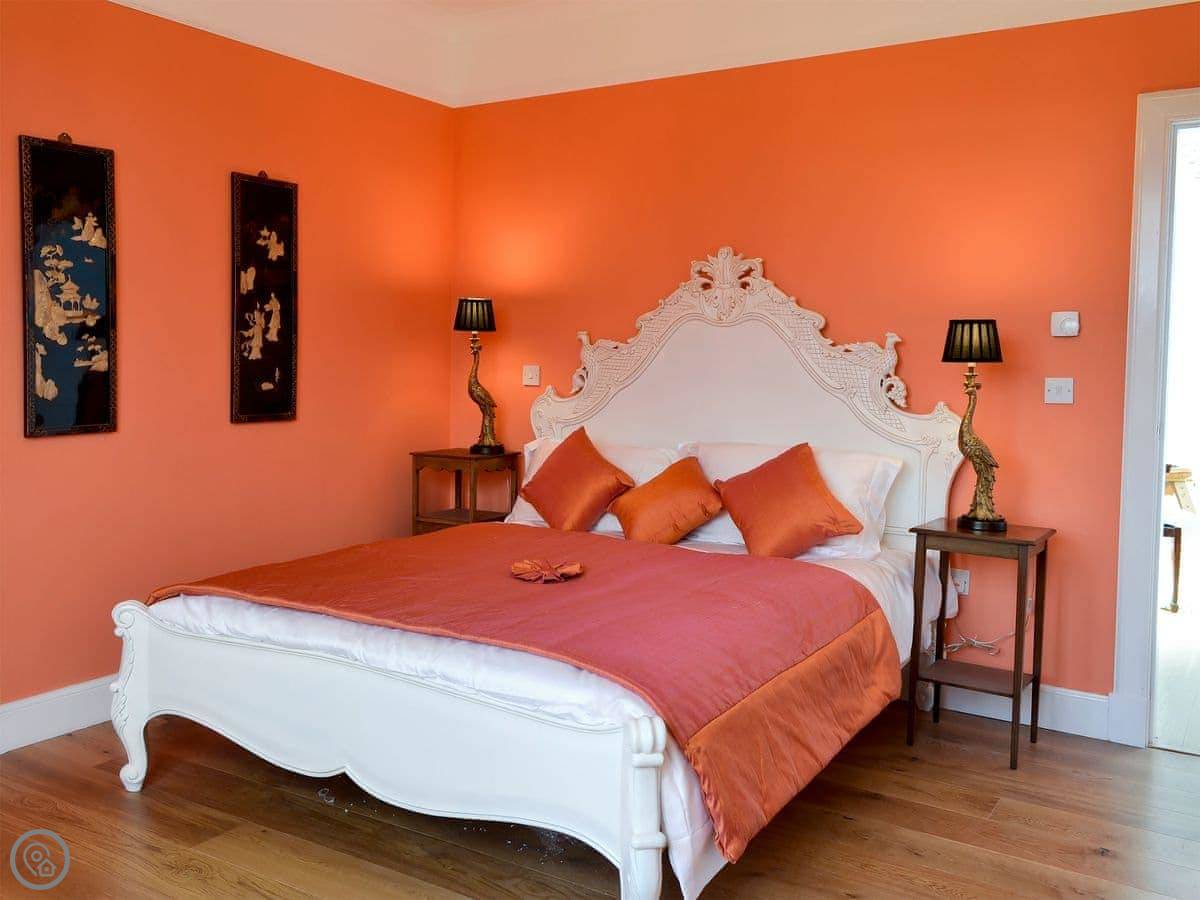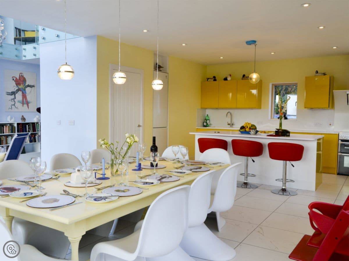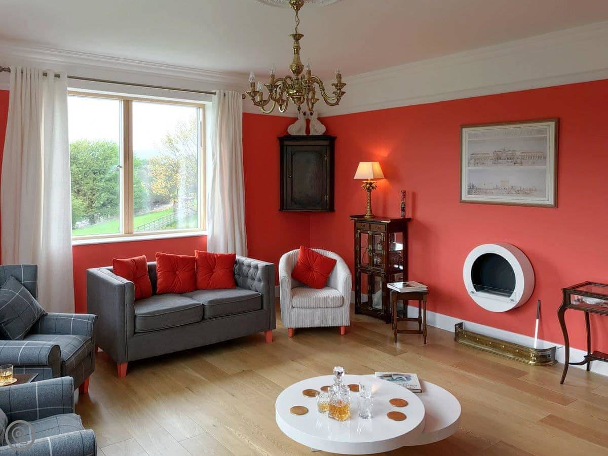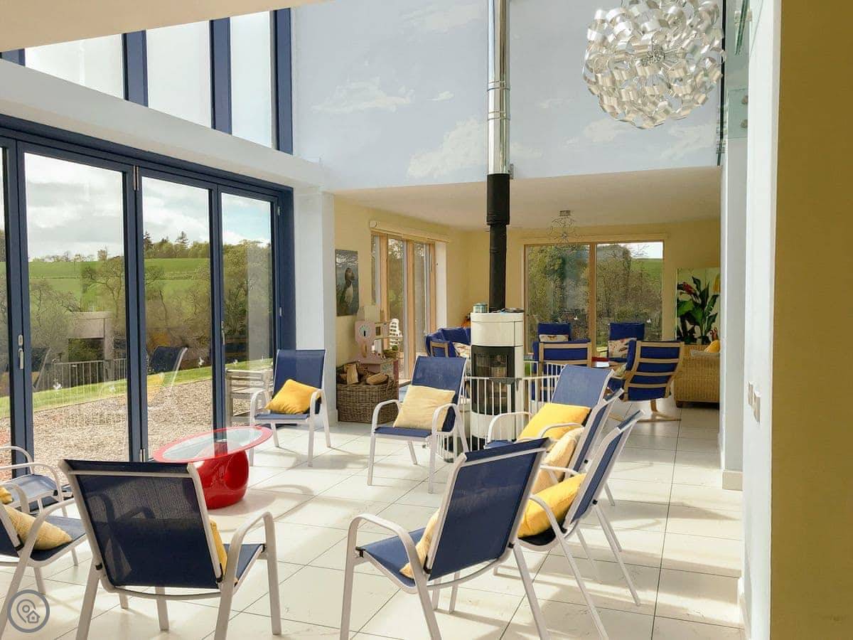 It sleeps ten people. Five bedrooms, four bathrooms. It's a 4 Star place. It's a good spot for a family get-together or a group of friends. Up to two dogs are welcome. Stag or hen parties aren't, and there's no hot tub.
