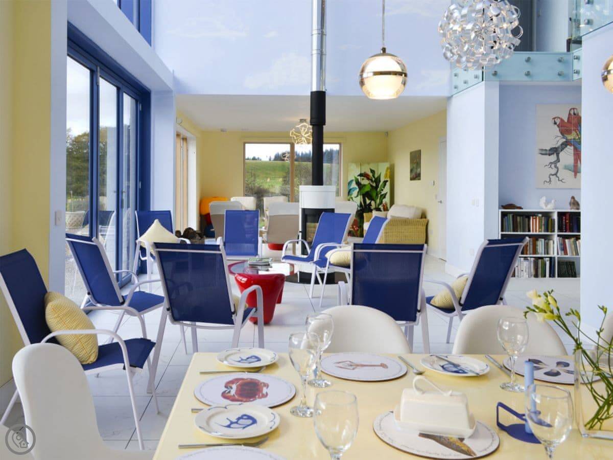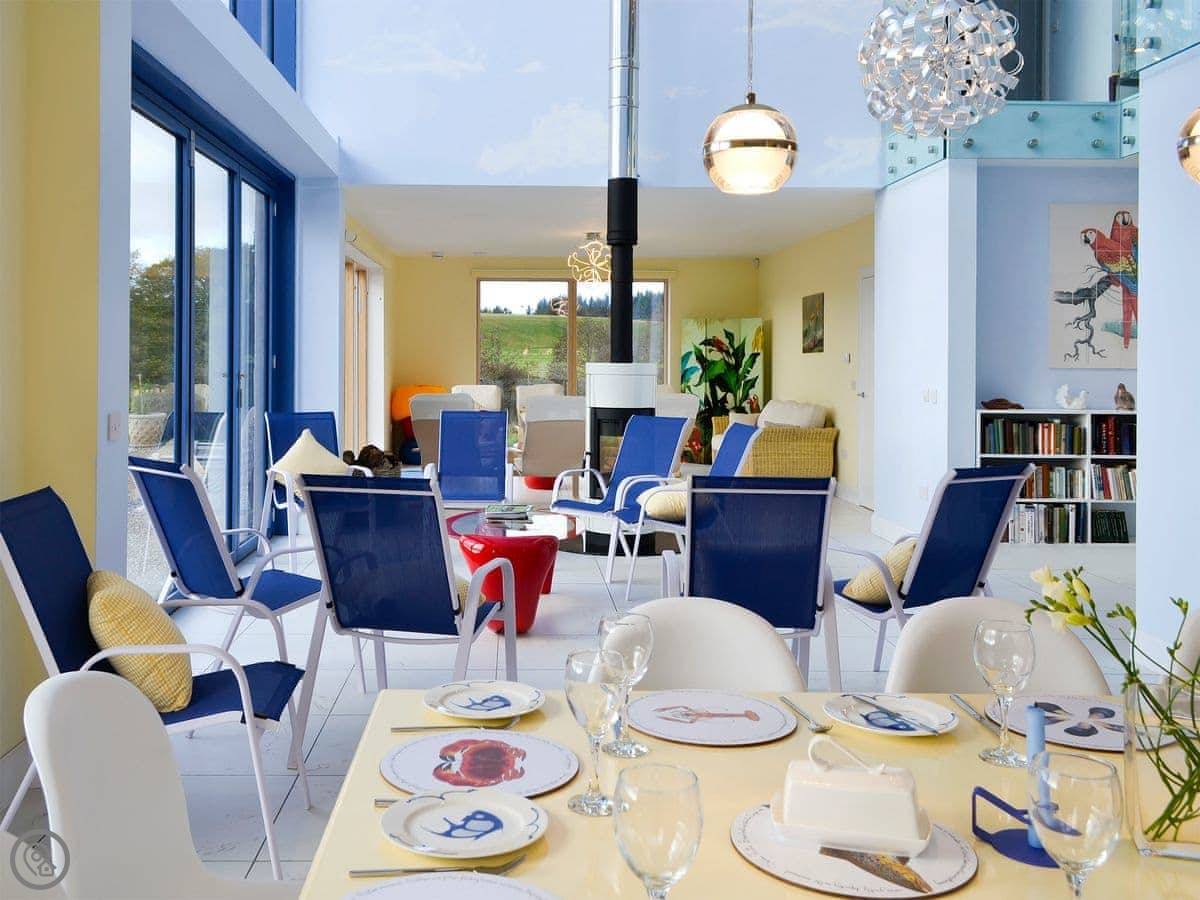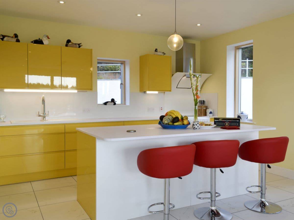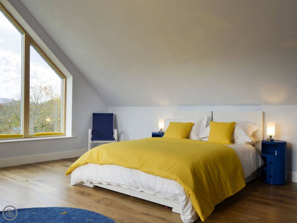 It sleeps ten people. Five bedrooms, four bathrooms. It's a 4 Star place. It's a good spot for a family get-together or a group of friends. Up to two dogs are welcome. Stag or hen parties aren't, and there's no hot tub.