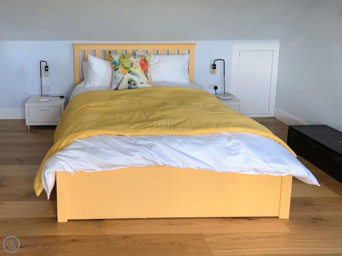 The top floor has two more bedrooms, both with king-size beds that can be made up as twins if needed. There's another bathroom up there. We can provide up to three cots and baby equipment.