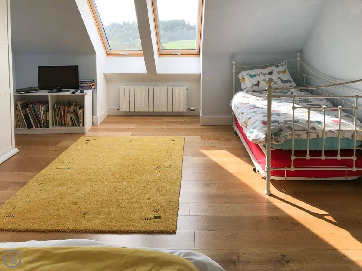 On the first floor, there are three bedrooms: two doubles and one with twin singles. There's a bathroom and a separate shower room too. Also on this floor is a separate drawing room, which is a quieter space.