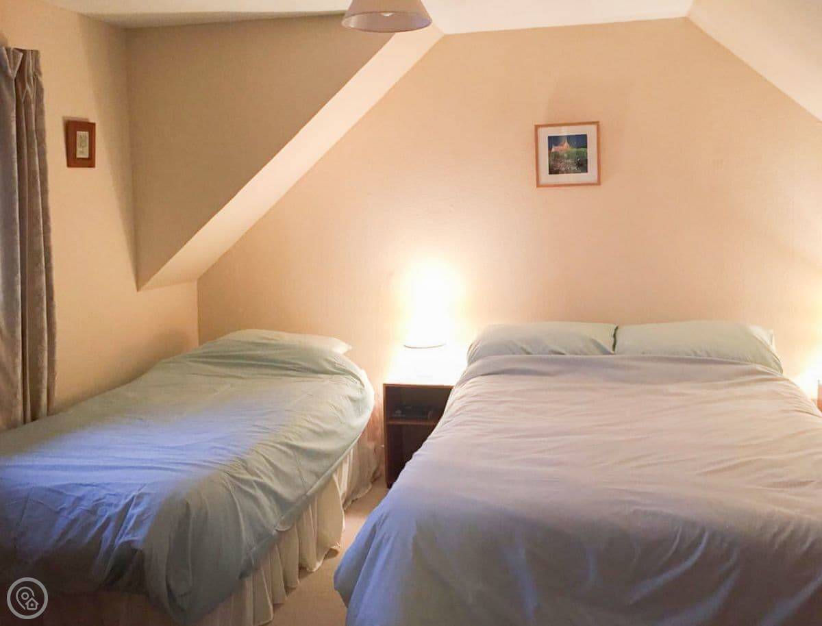 It sleeps five. Three bedrooms, one bathroom. It’s got a 3 Star rating. We put in a new shower and two double beds a couple of years ago, and the cooker is new this year. There’s no dishwasher.