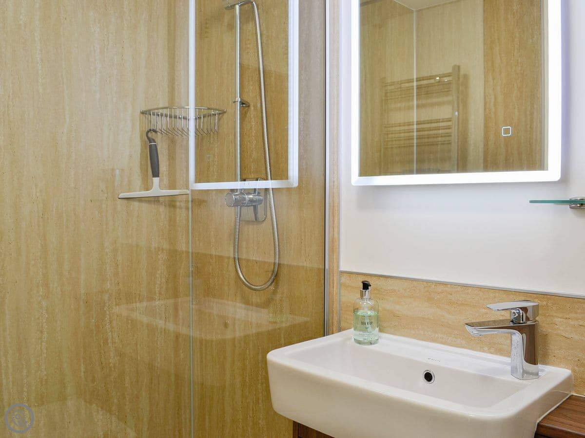 The kitchen has a dishwasher and a washing machine. There's a shower, not a bath. The garden is enclosed, which is good if you're bringing dogs. You can have up to two. There's a BBQ and space to put bikes.