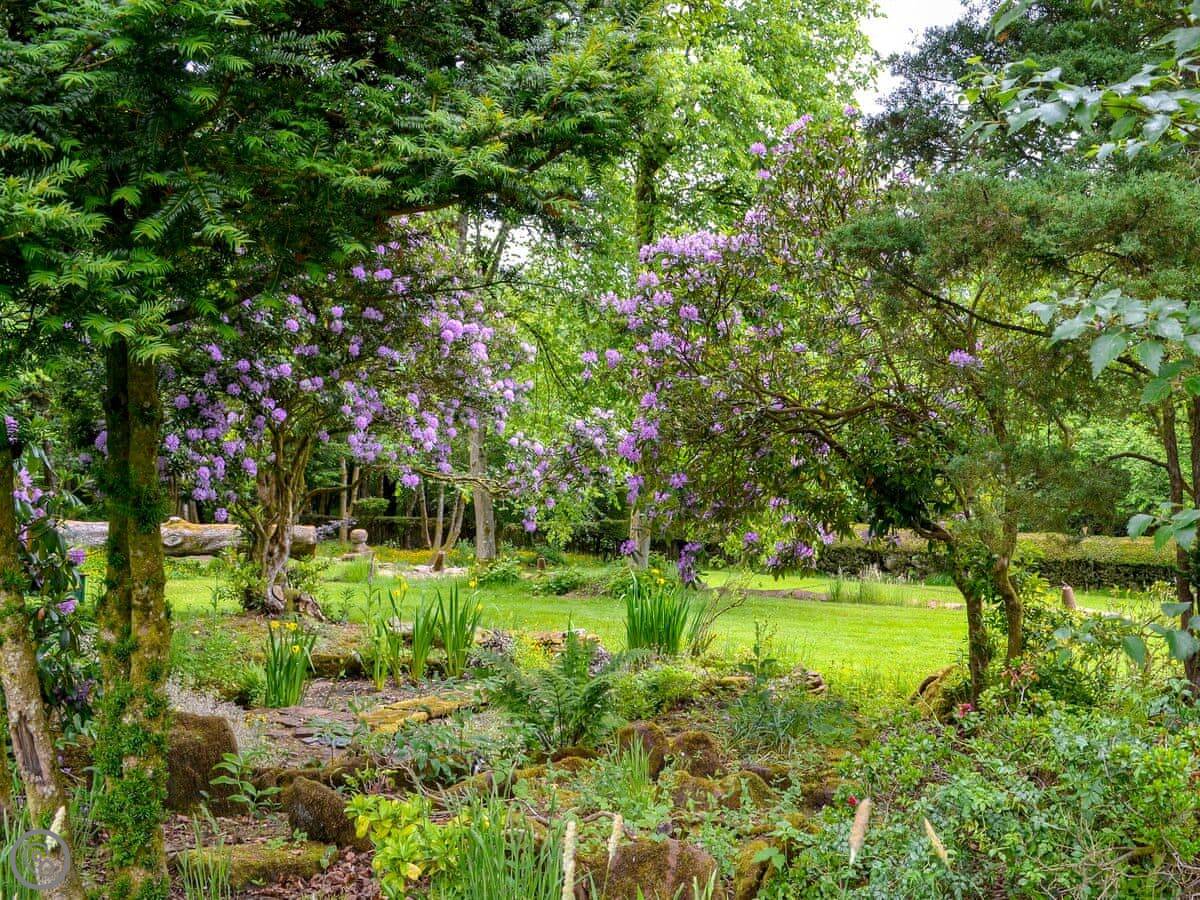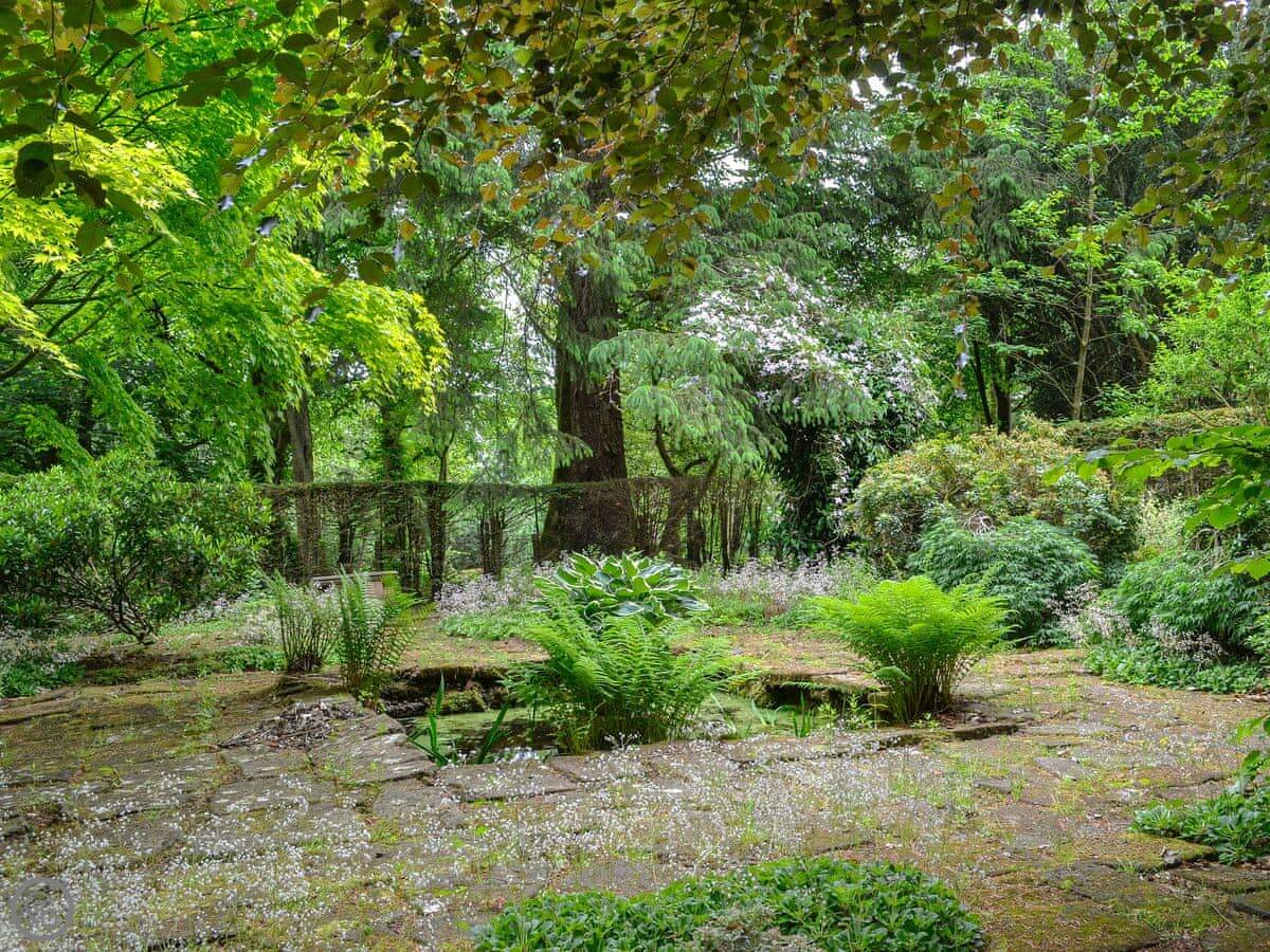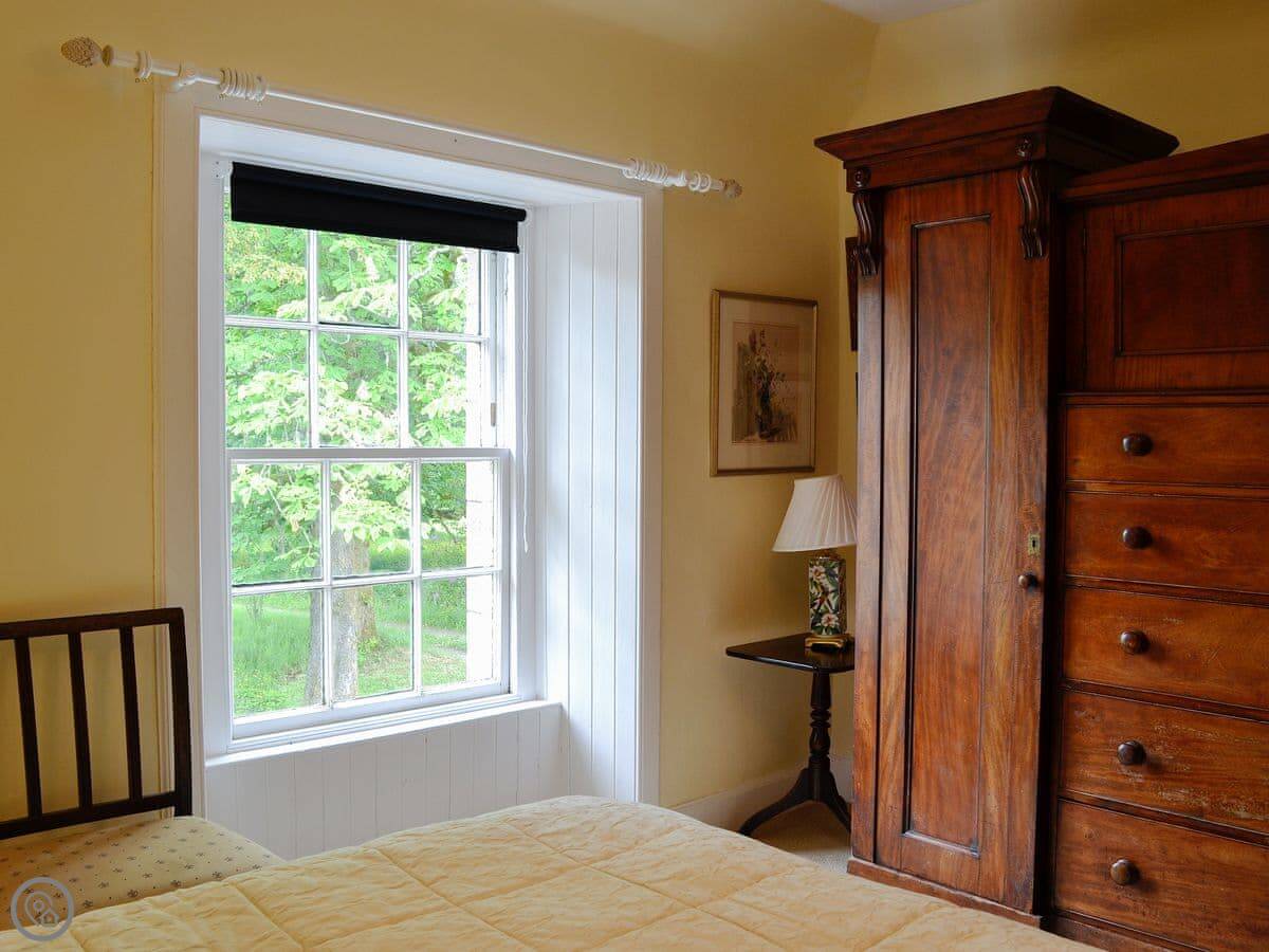 You're up a flight of external stone stairs to get in. The apartment looks out over the estate gardens, which you're welcome to walk around. There's a refurbished summerhouse you can use too. The Victorian stables below are interesting if you like that sort of thing, the owner can show you.