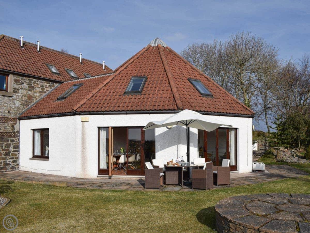 The Roundel is near St Michaels in Fife. It's a semi-detached house, peaceful, with big views over fields from the back.