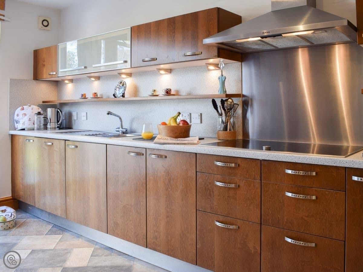 Facilities: it's got wifi, a washing machine, dishwasher, TV. There's a cot, highchair, and stairgate if you need them. You can bring up to two dogs. Bedding and towels are included. There's a BBQ outside.