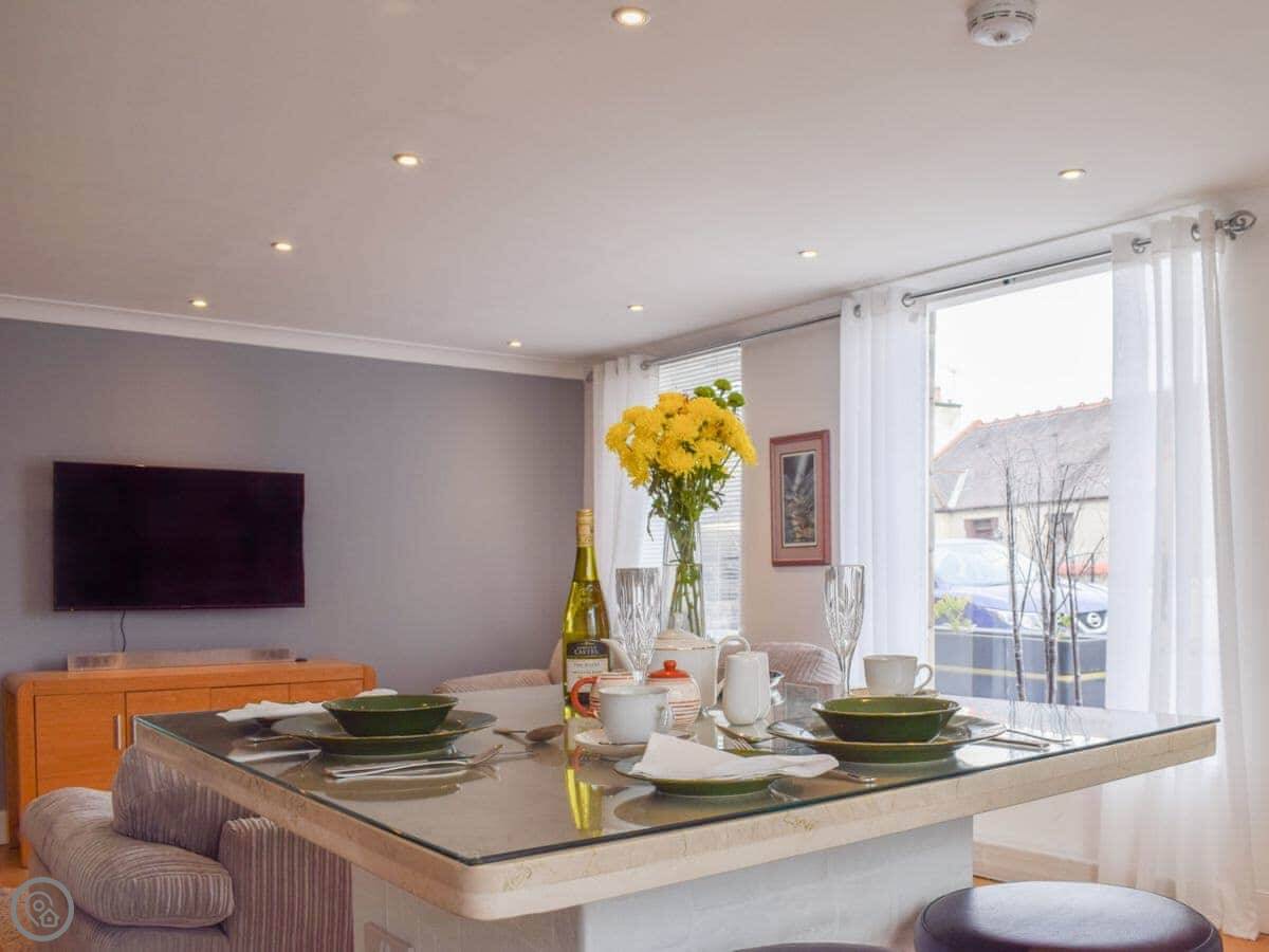 Bramble Cottage is in Leven, right on the main street. It's semi-detached, I live next door. It's all on one floor, so no stairs to worry about. It used to be the local shop and post office, built around 1900.