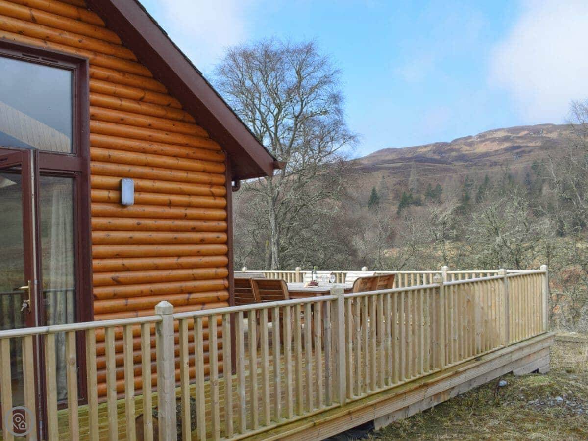 Frith View is in Keltneyburn, which is highland Perthshire. It's a detached lodge. It looks out over a small loch and a deer park. The garden is private.