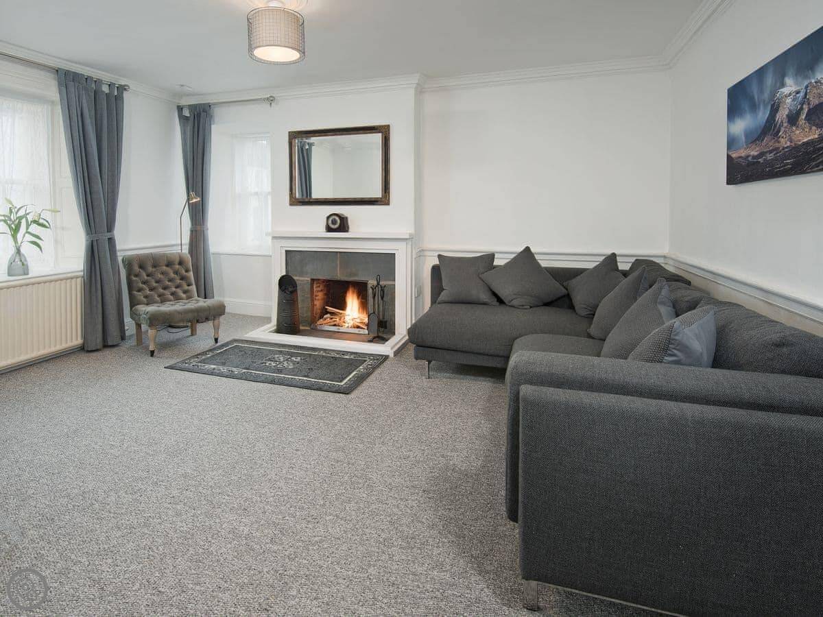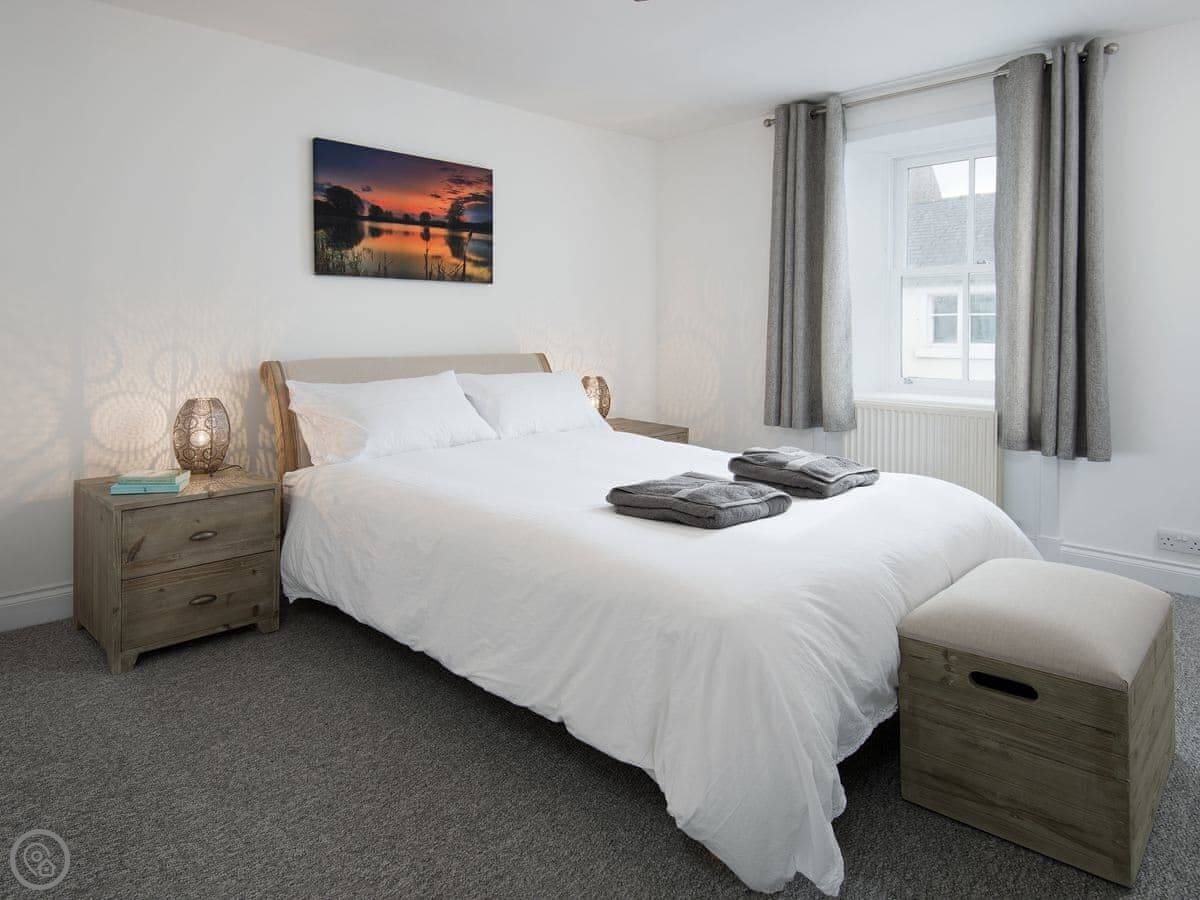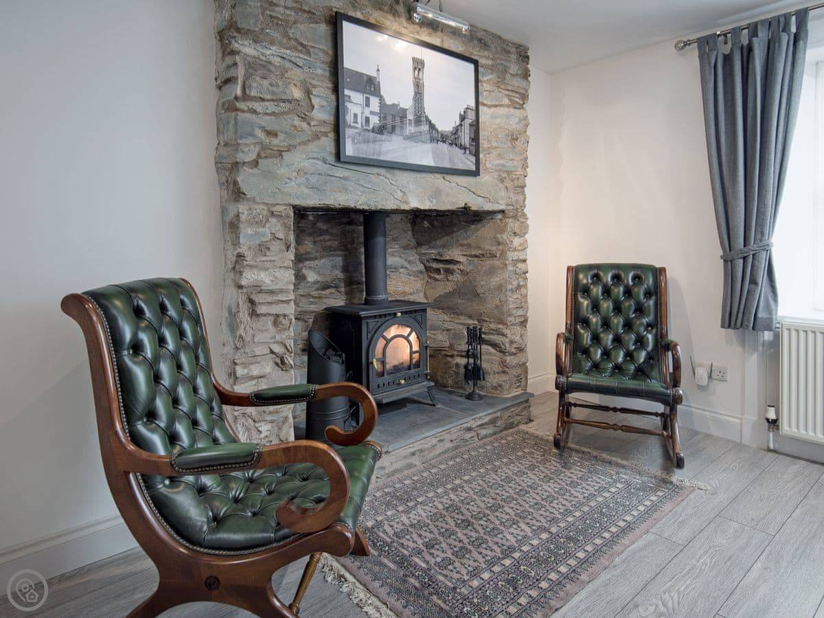 Inside it's been renovated. It sleeps four, in two bedrooms. They've both got their own bathrooms ensuite, and there's a third shower room downstairs too. It's got a 4 star rating, so it's comfortable and well looked after. There's a woodburning stove in the living room.