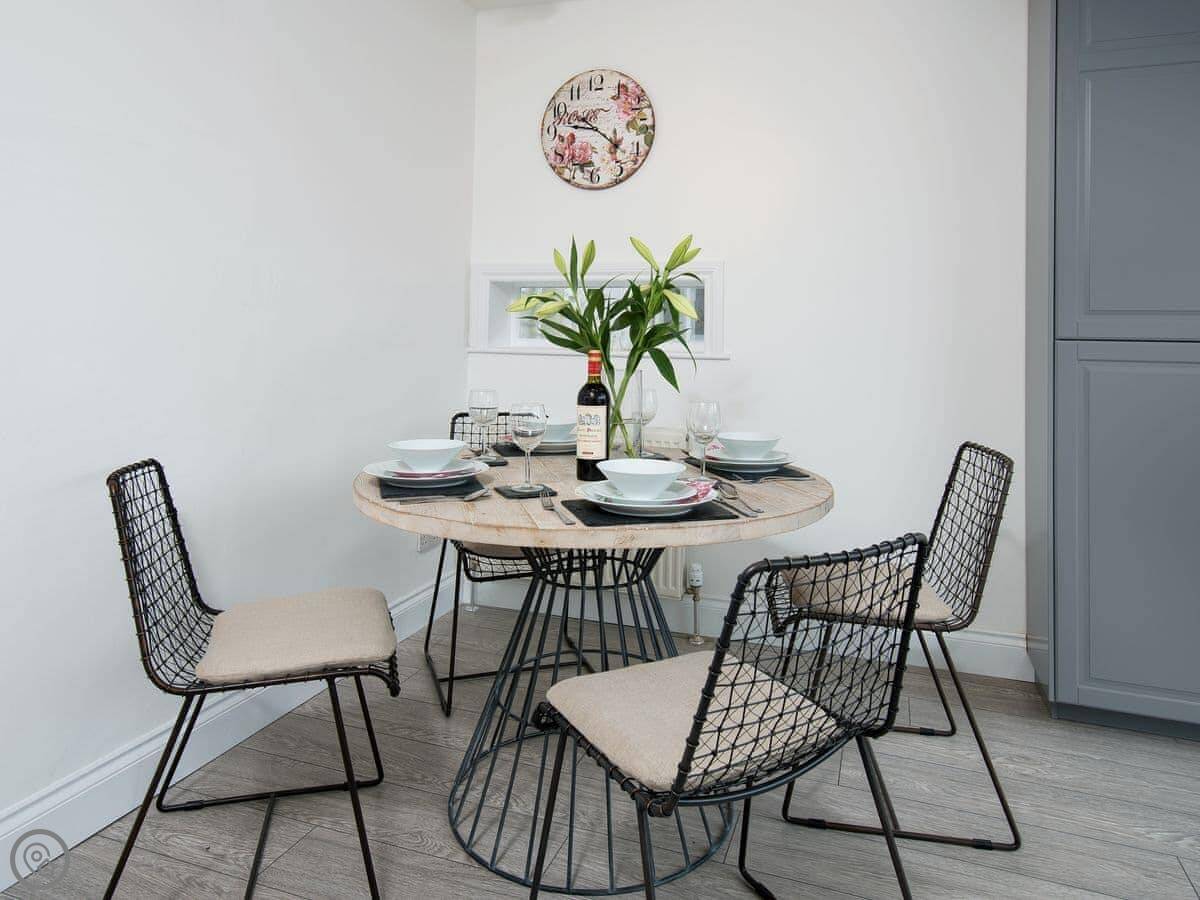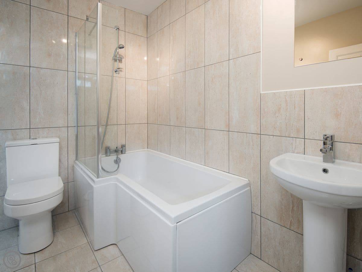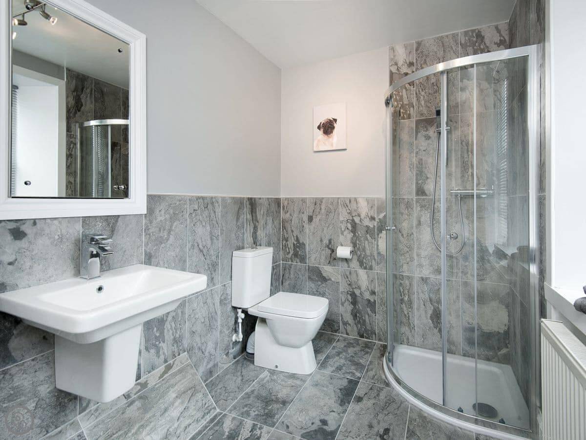 Inside it's been renovated. It sleeps four, in two bedrooms. They've both got their own bathrooms ensuite, and there's a third shower room downstairs too. It's got a 4 star rating, so it's comfortable and well looked after. There's a woodburning stove in the living room.