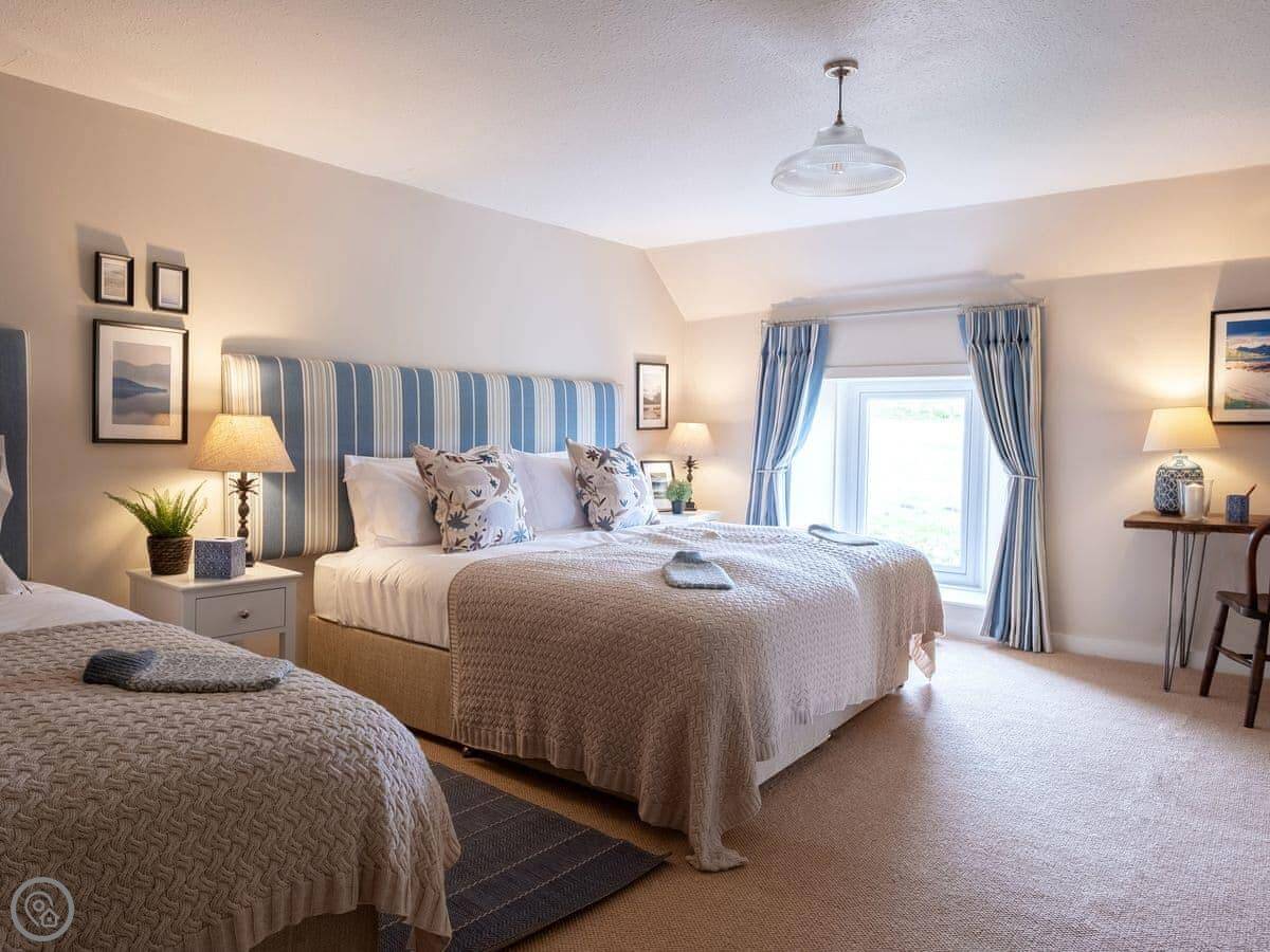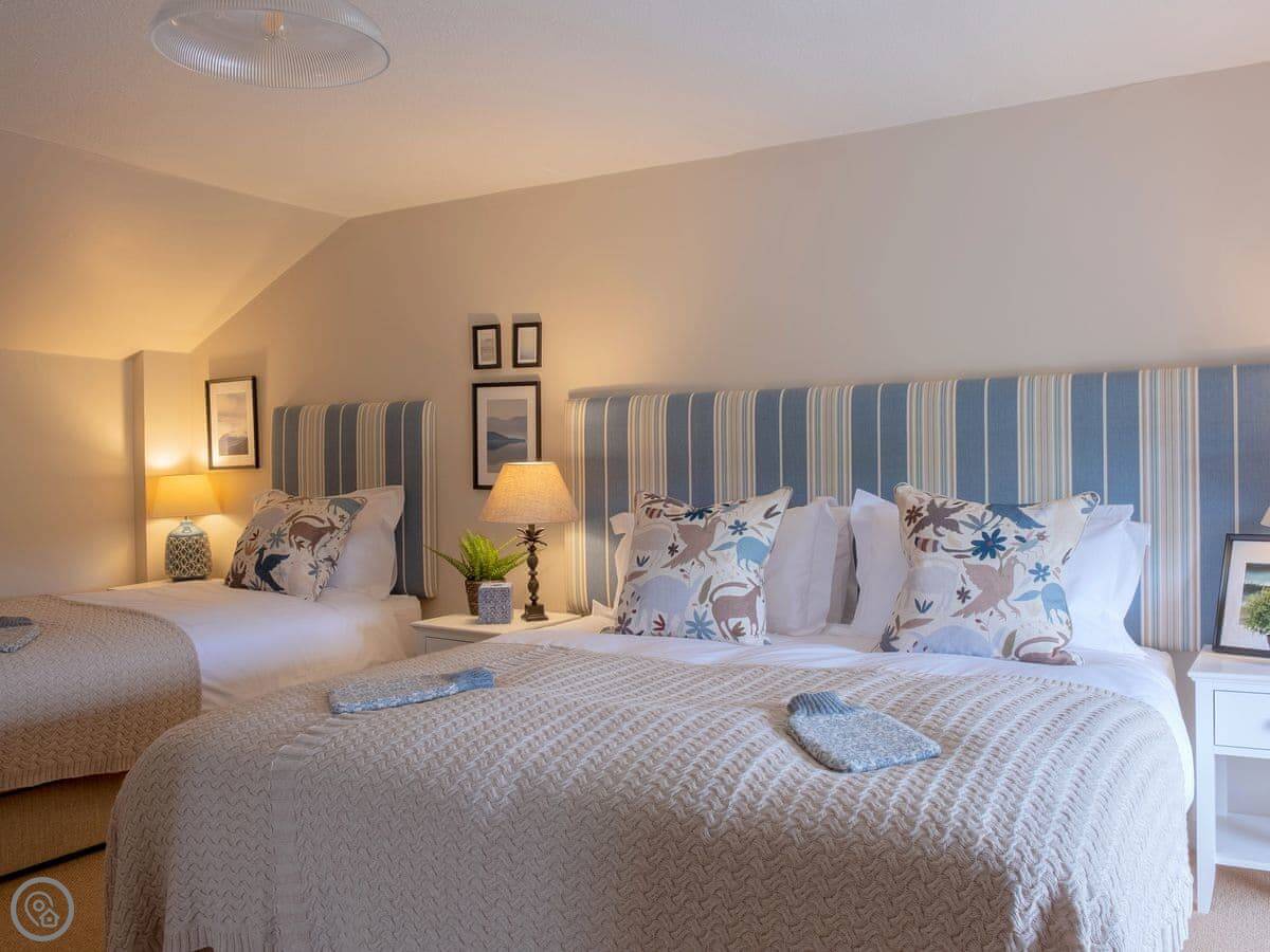 The house sleeps seven in three bedrooms. There are two bathrooms. One has a walk-in shower. It's got a 4 Star rating. It's comfortable and clean. The stairs inside are steep and a bit narrow, just so you know.