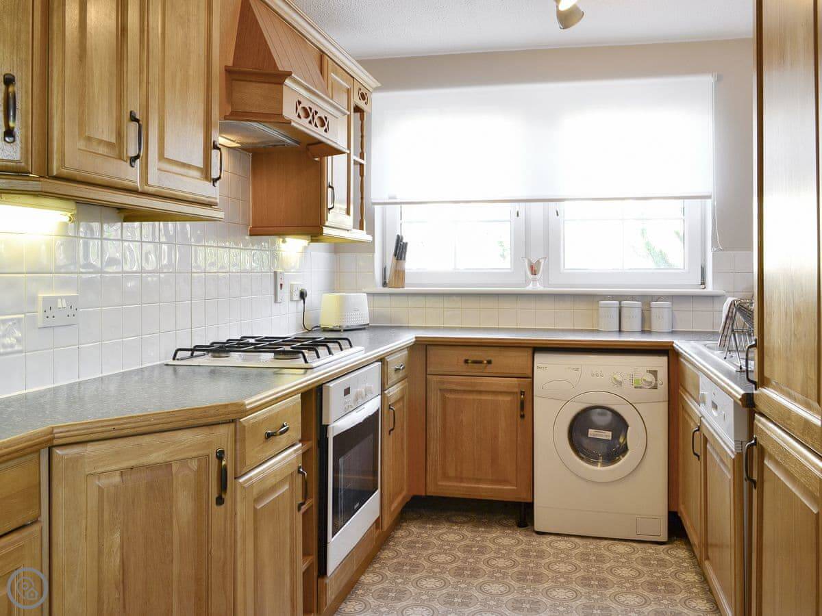 The kitchen is a good size. It's got a dishwasher and a washing machine. You can park on site, which is a big help in Edinburgh.