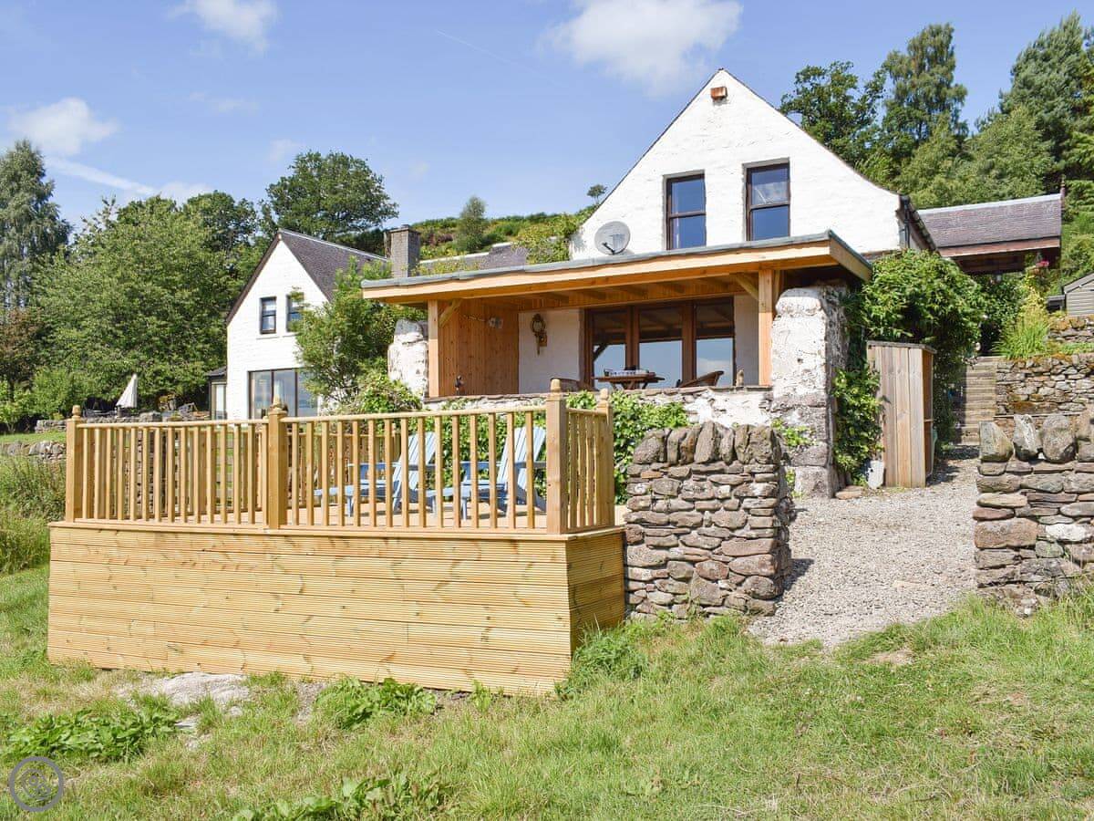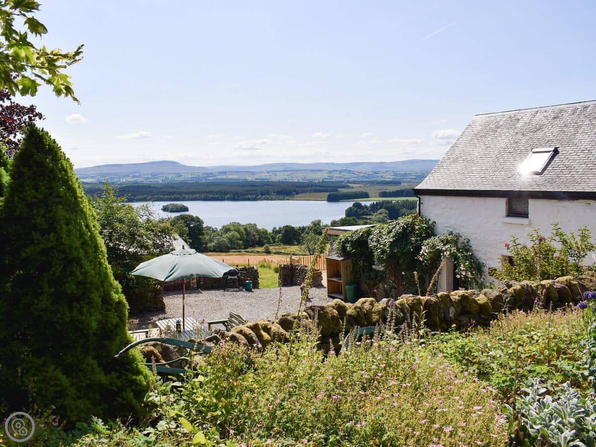 It's up in the hills above the Lake of Menteith. That's Scotland's only lake, incidentally. The view from the cottage is the main thing. You look right out over the water to Inchmahome Priory on the island. You can see it from the covered porch, which is handy if it's raining.