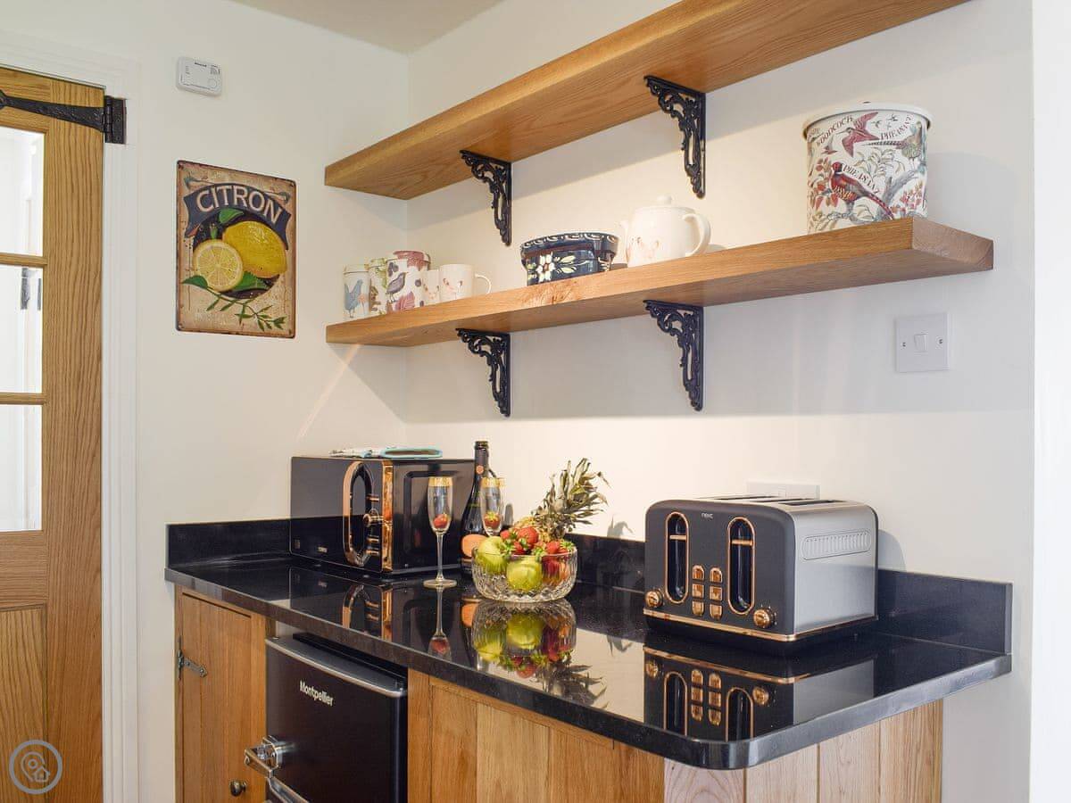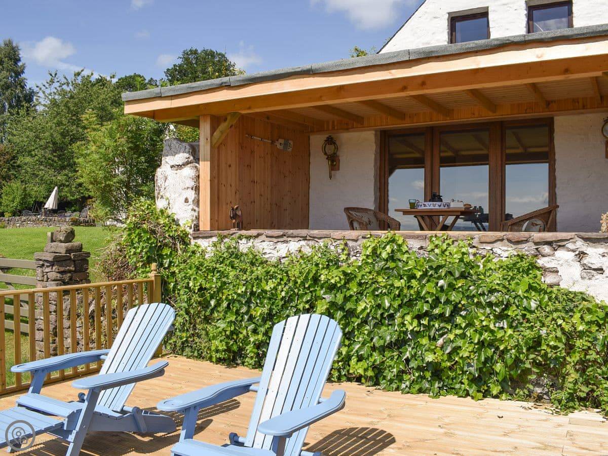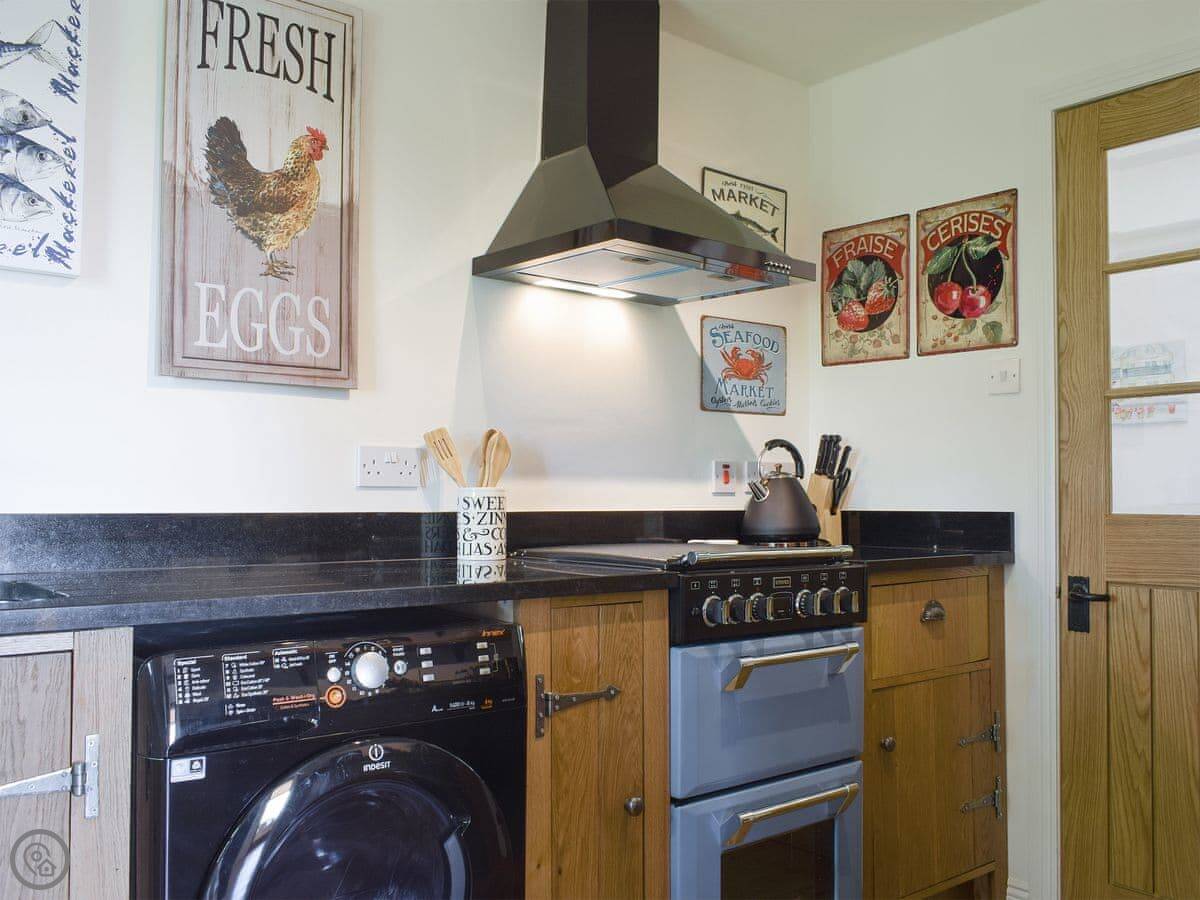 It was all renovated a few years ago. It's done to a good standard. Oak floors, a decent kitchen, a kingsize bed. The bathroom has a shower over the bath. There's a woodburning stove for chilly evenings. Outside, there's a private deck with a barbecue.
