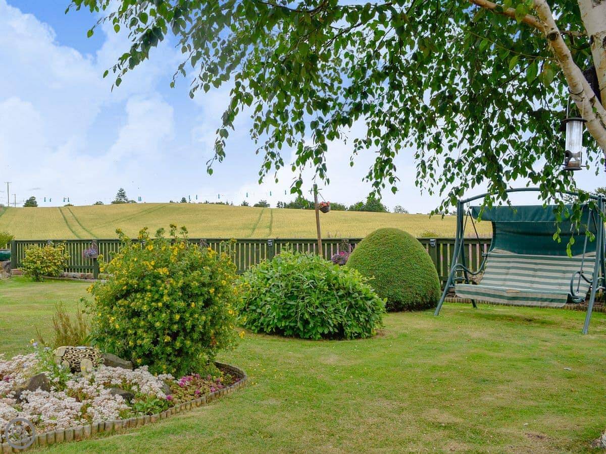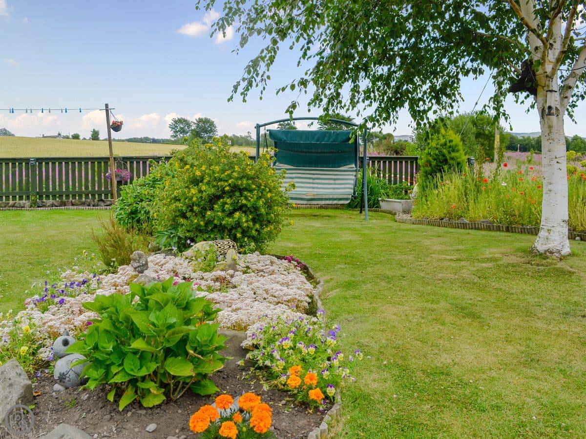 Laurel Bank is my cottage attached to the house here in New Alyth. It's small, just for two people. You get the front garden to share, which looks out over fields to the hills.