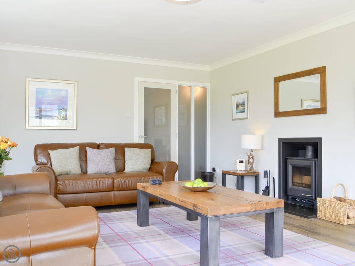 Inside, it's open plan with a woodburning stove. There's a dishwasher, washing machine, WiFi, and a TV. Bedding and towels are included. There's a cot and highchair if you need them. No pets.