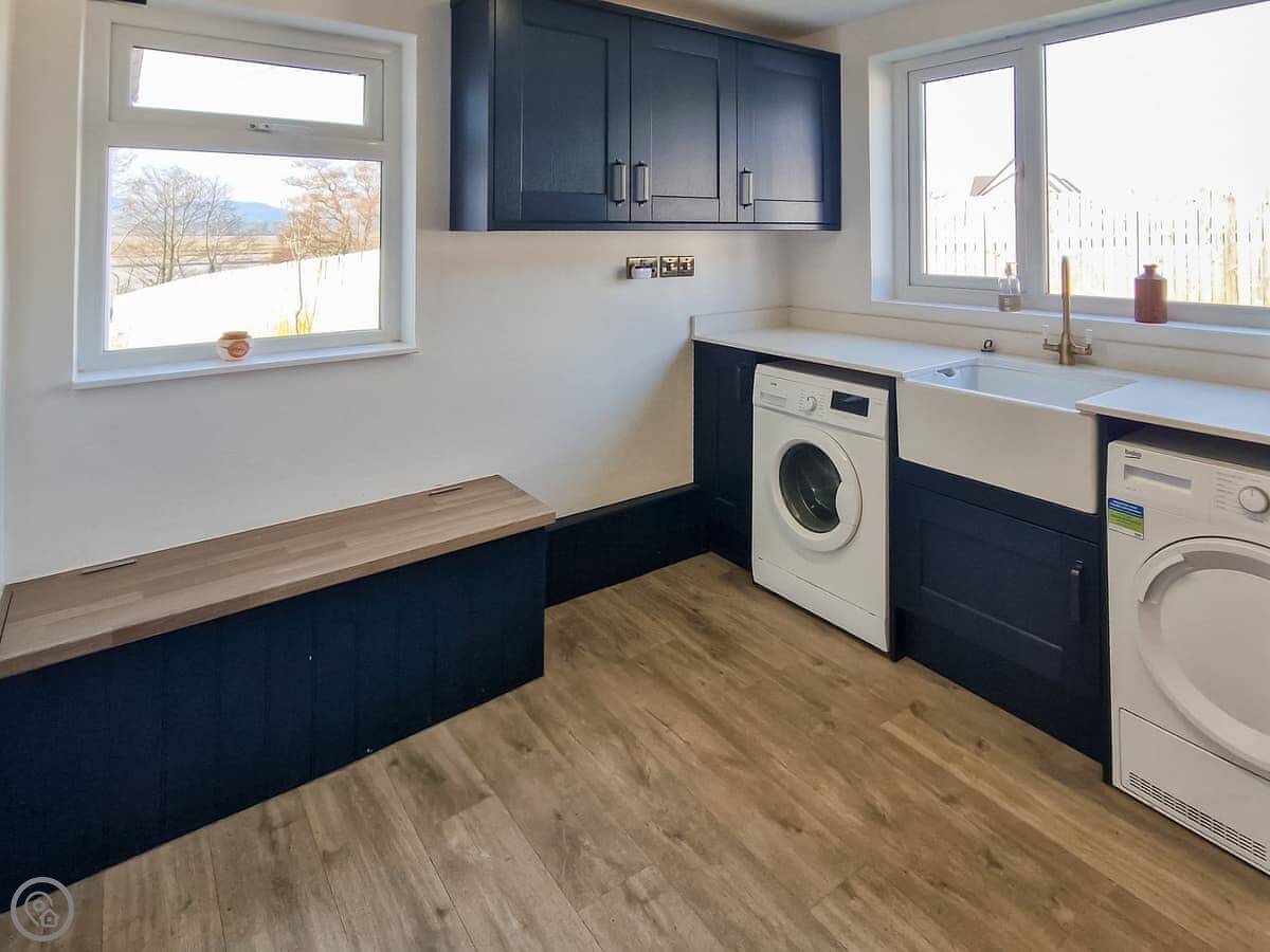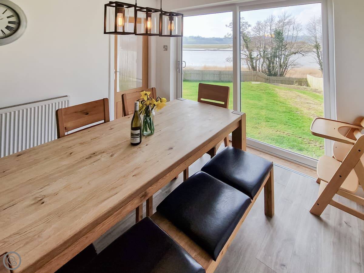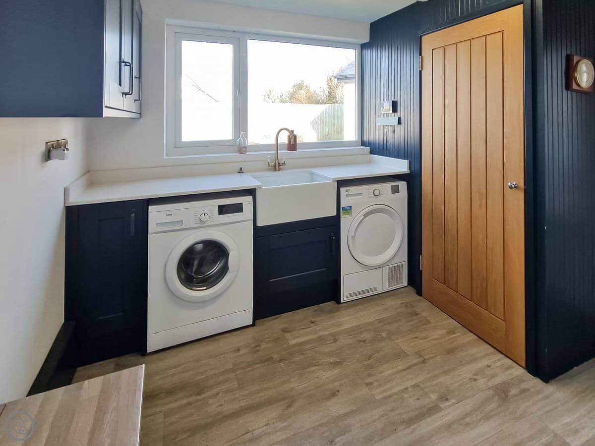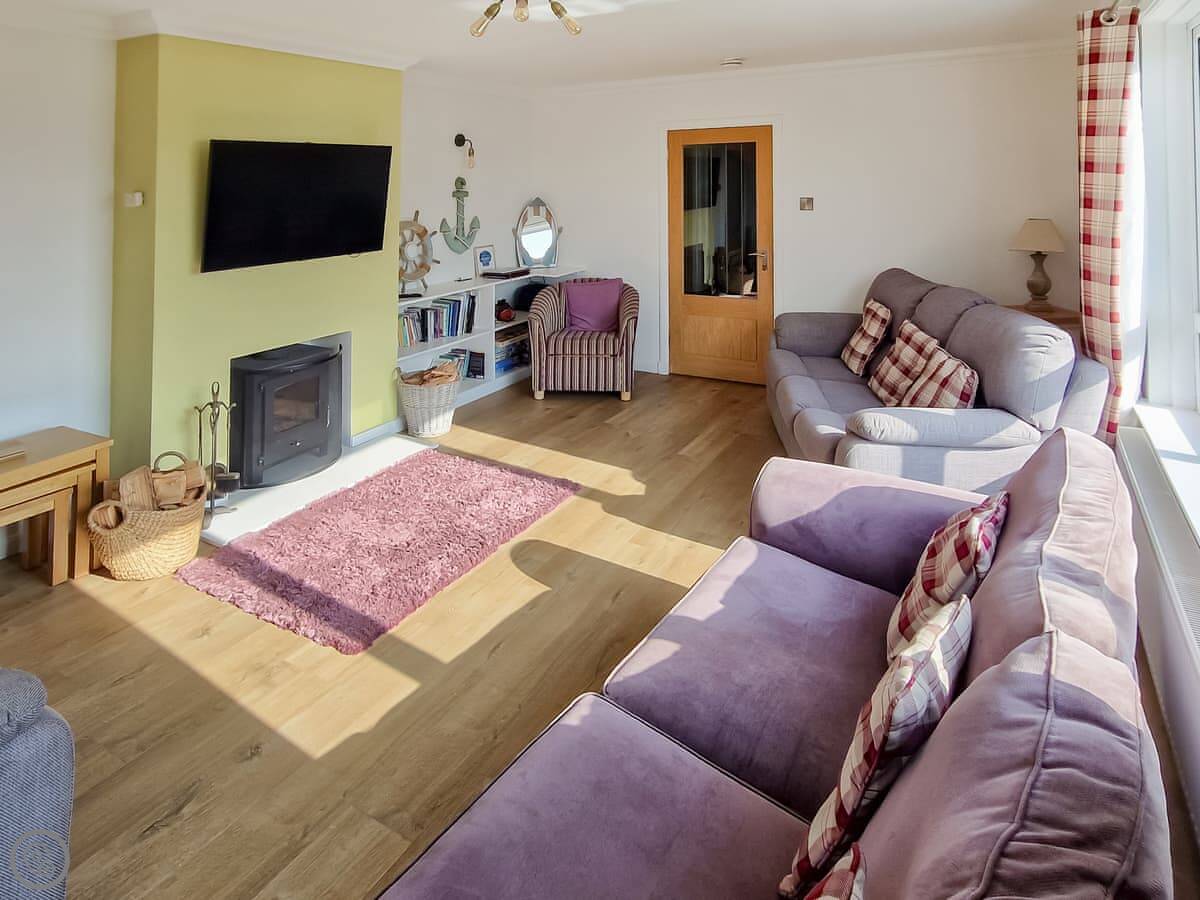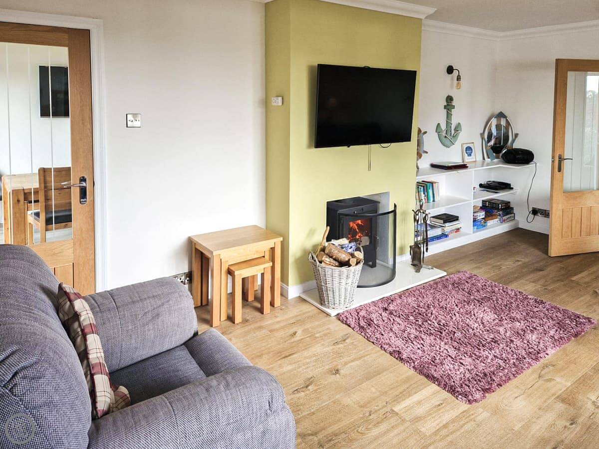 In terms of what's here, we've got a washing machine, dishwasher, TV, and WiFi. The woodburning stove works. We include bedding and towels. You can bring up to two dogs. There's a cot and a highchair if you need them.