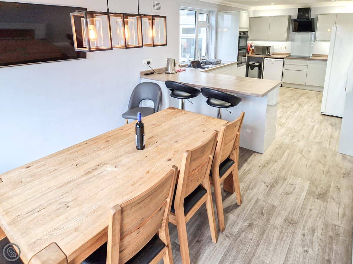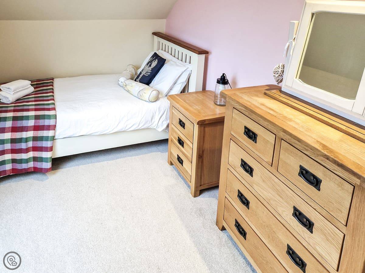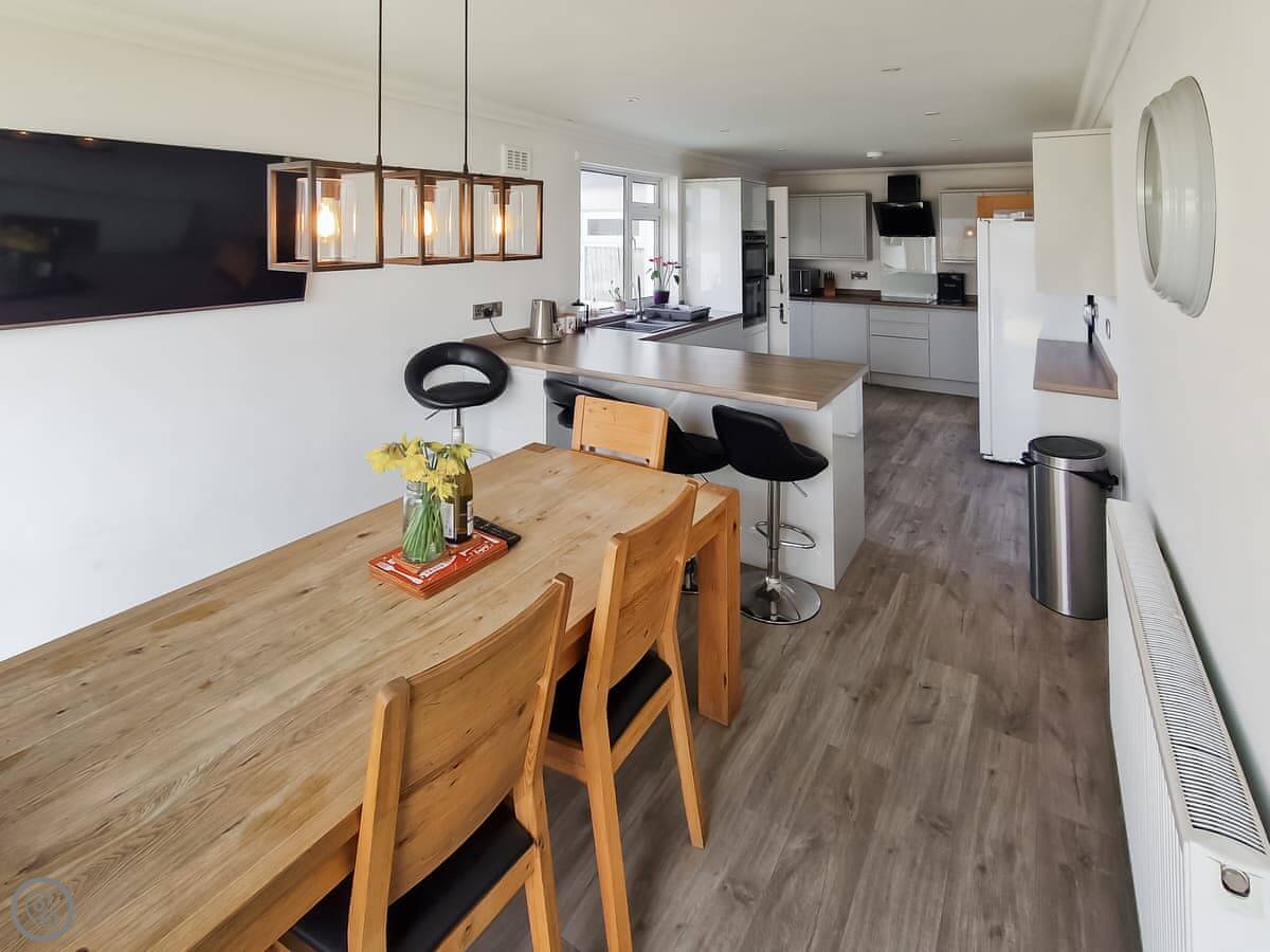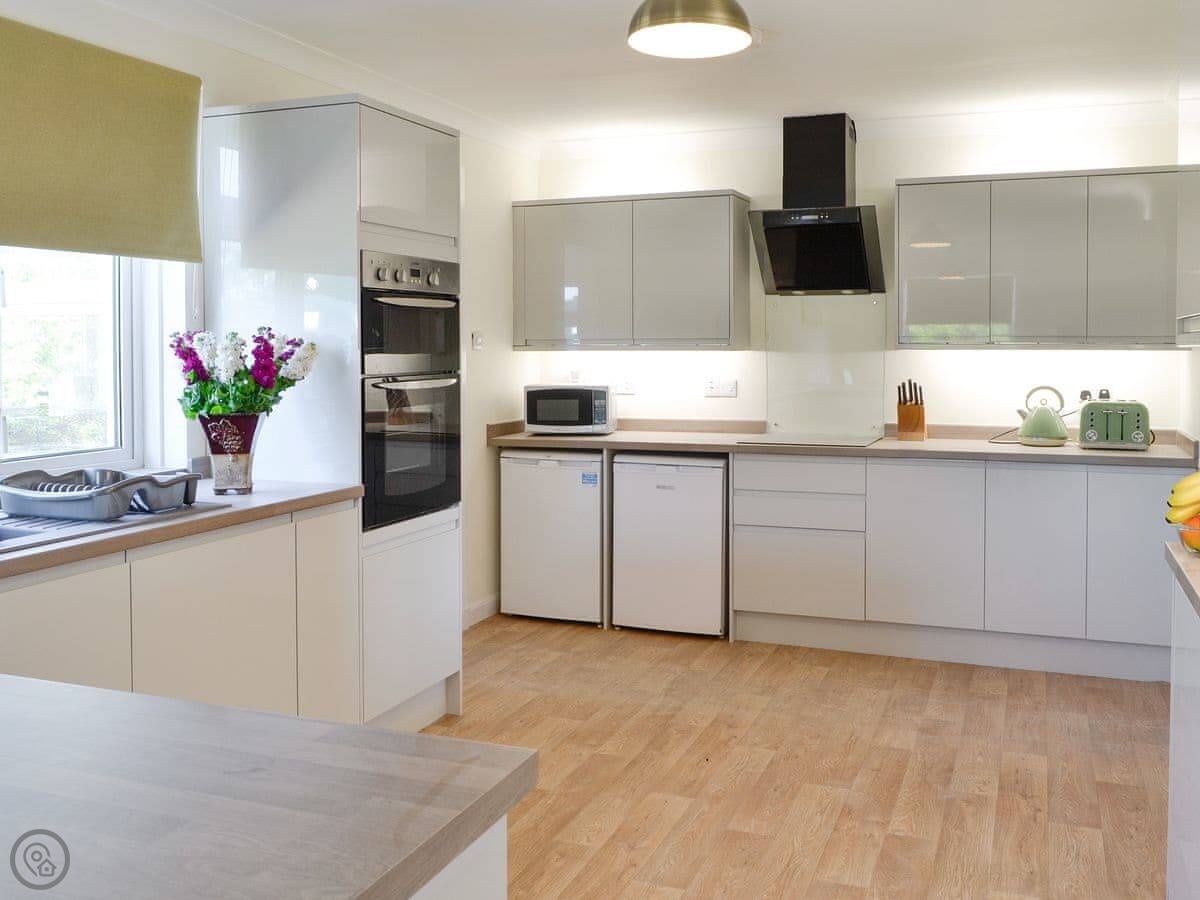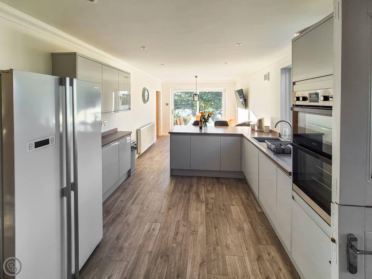 In terms of what's here, we've got a washing machine, dishwasher, TV, and WiFi. The woodburning stove works. We include bedding and towels. You can bring up to two dogs. There's a cot and a highchair if you need them.