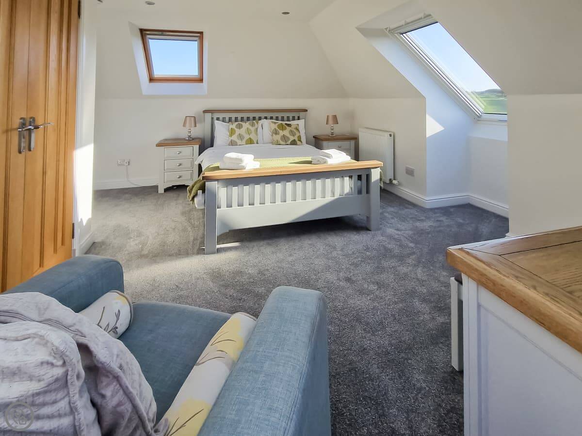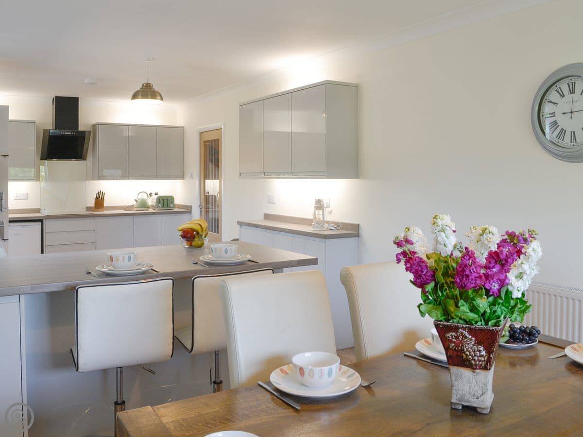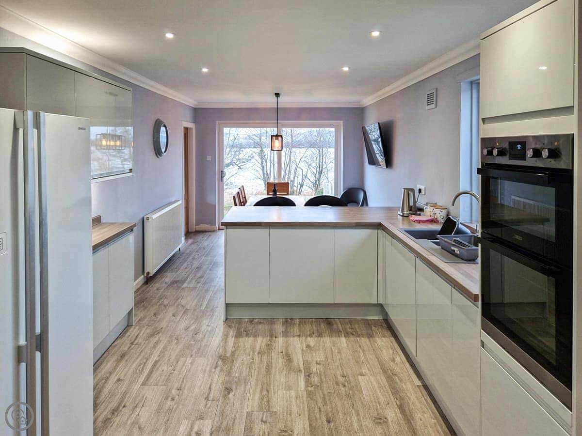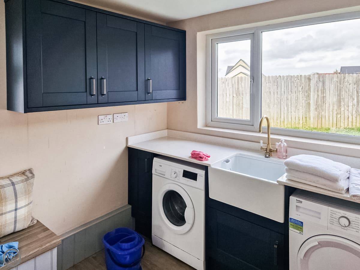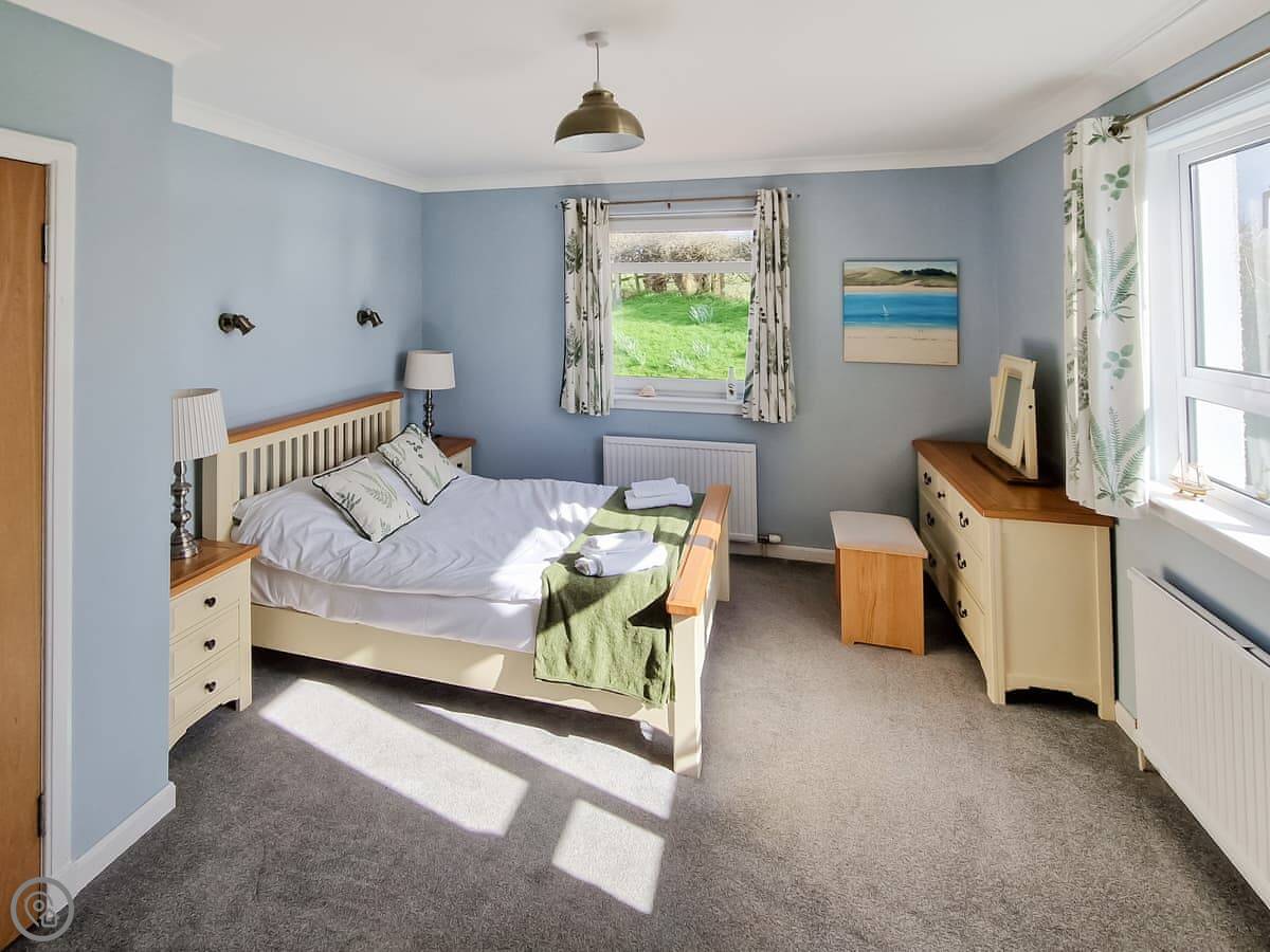 In terms of what's here, we've got a washing machine, dishwasher, TV, and WiFi. The woodburning stove works. We include bedding and towels. You can bring up to two dogs. There's a cot and a highchair if you need them.