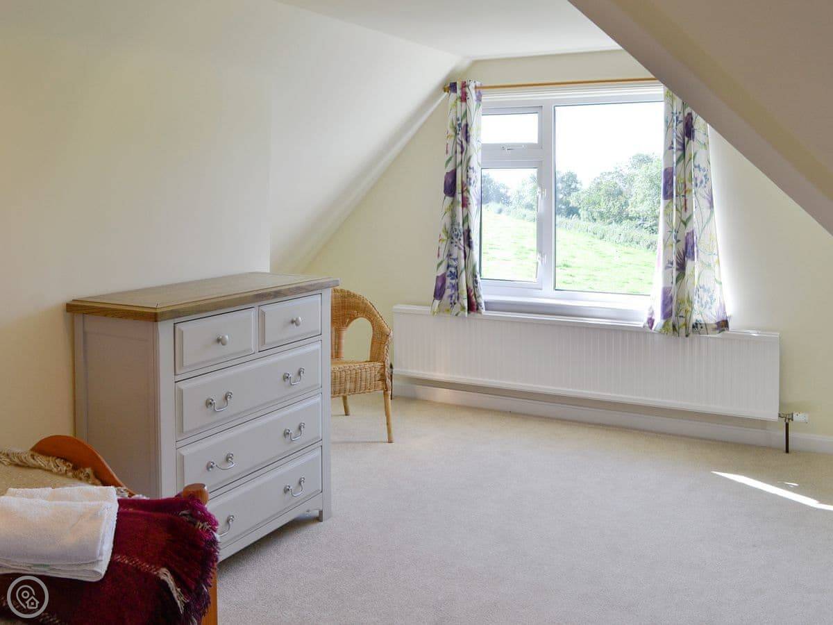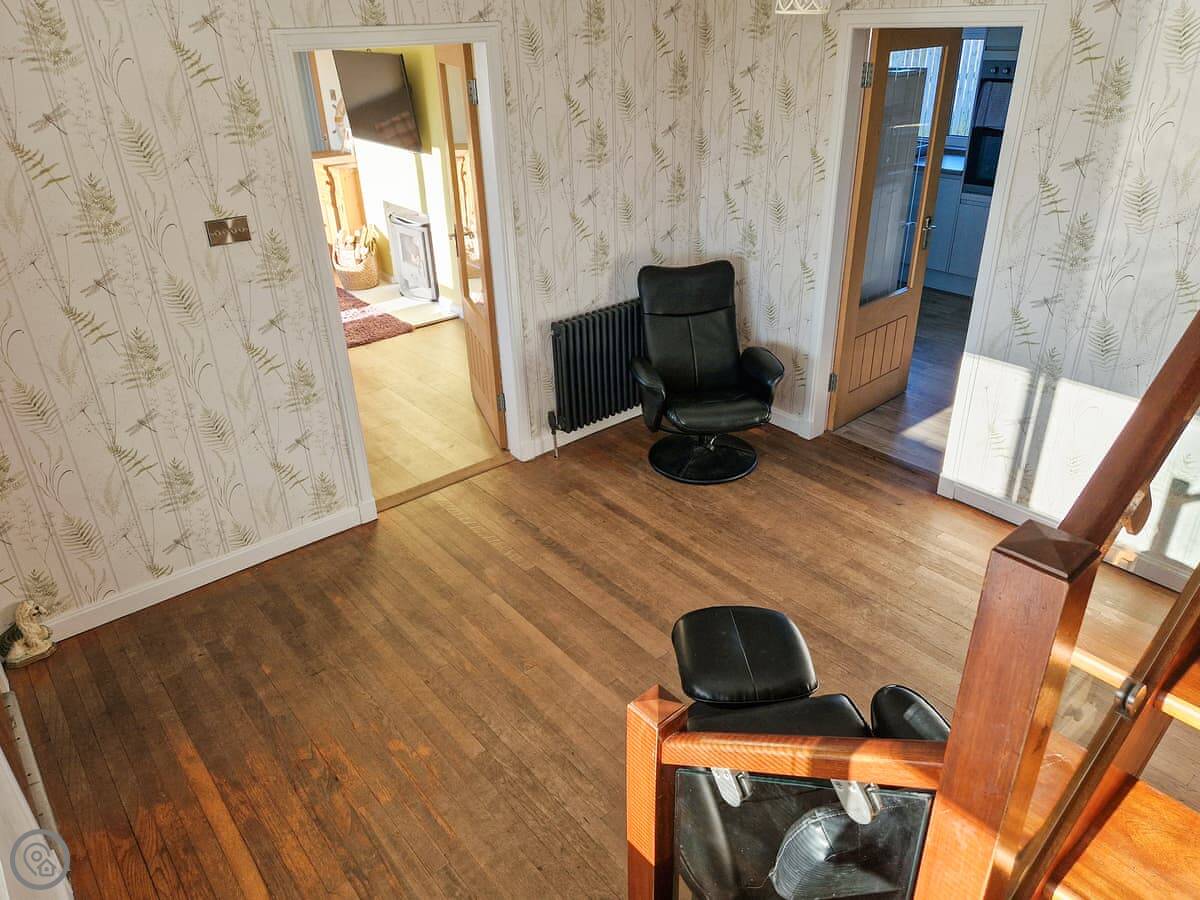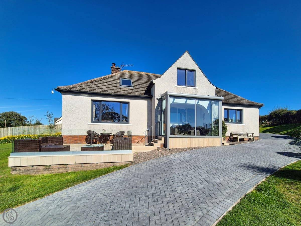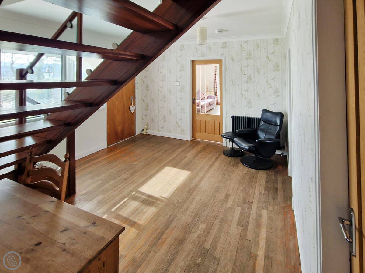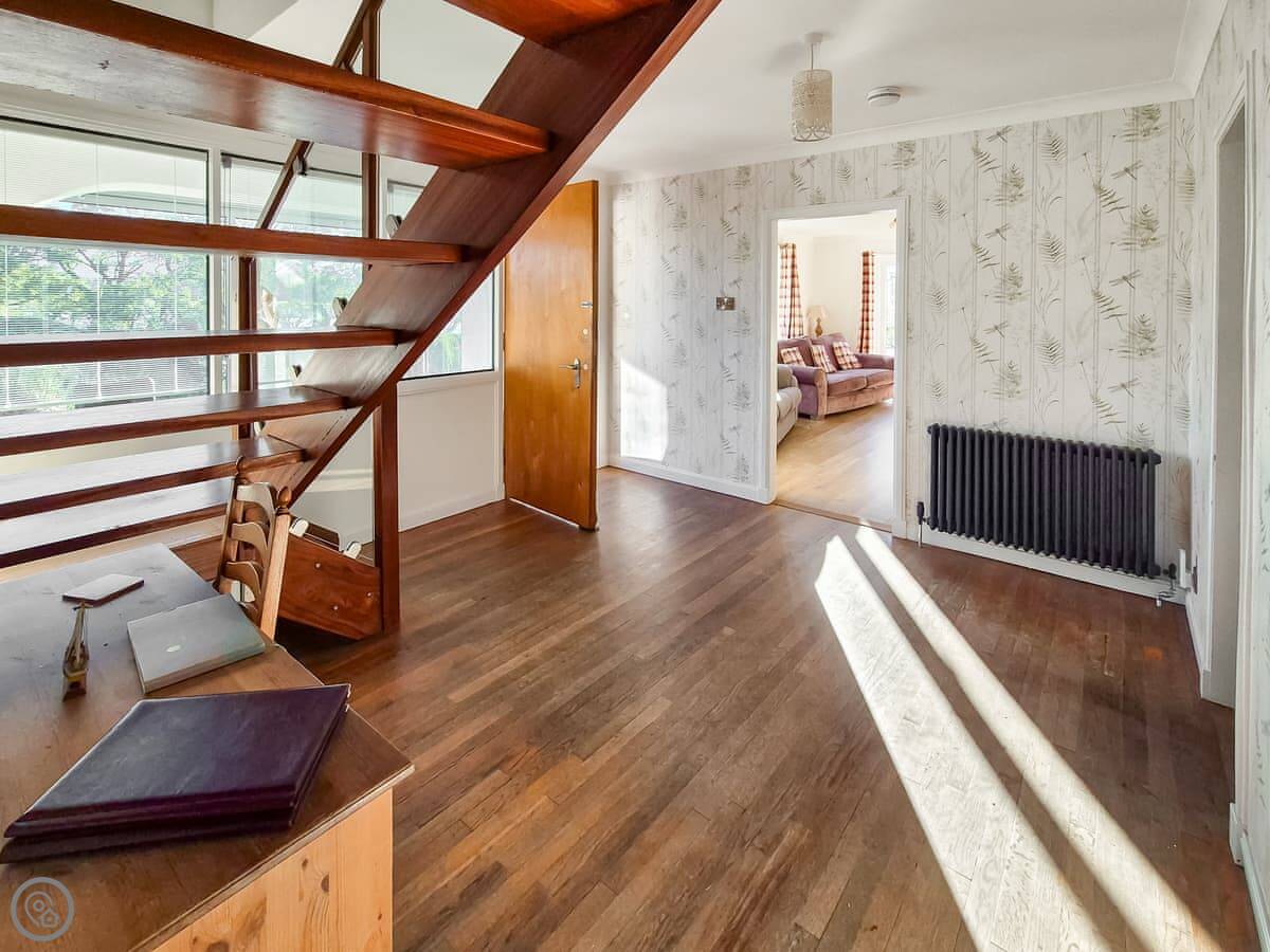 It sleeps nine people in five bedrooms. There are two bathrooms, one is a wet room on the ground floor. It's got a 4 Star rating. It's comfortable, not luxurious.