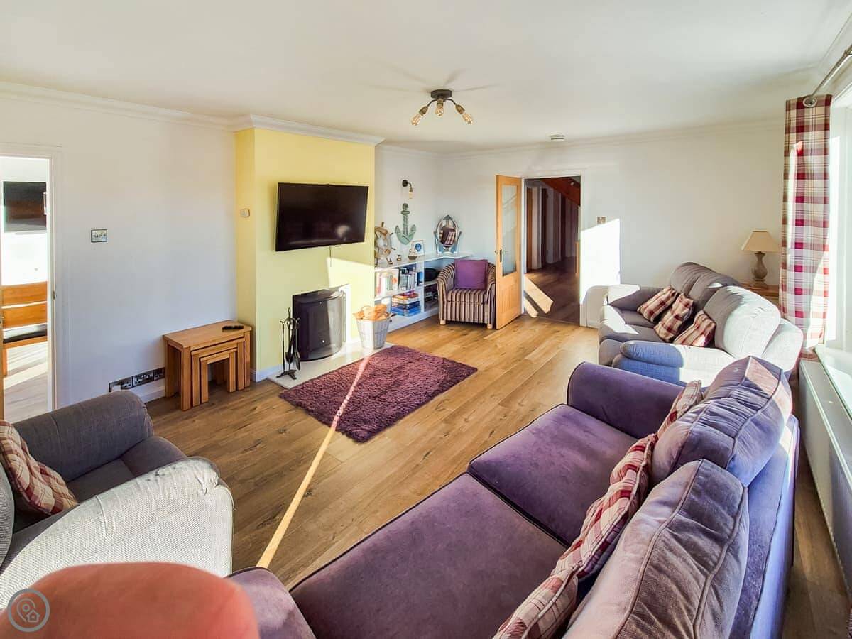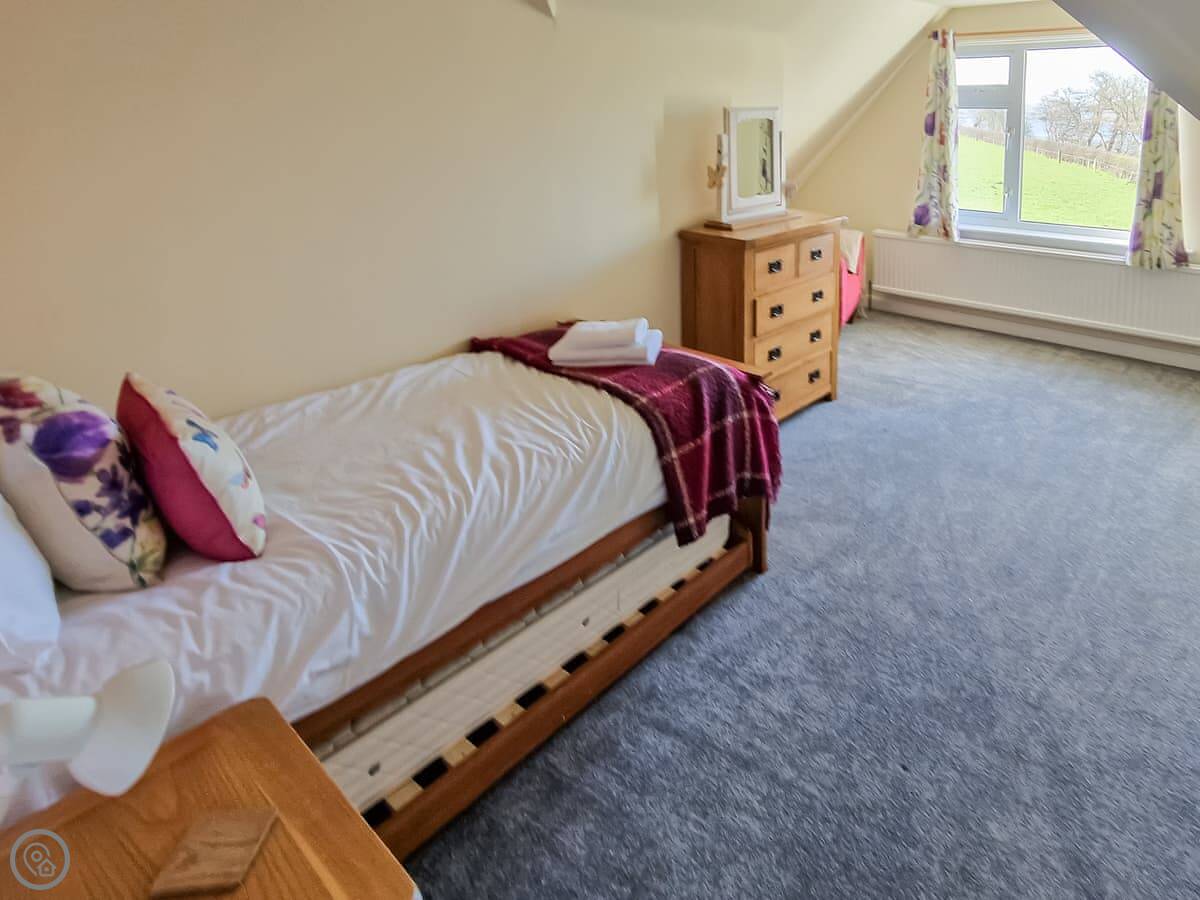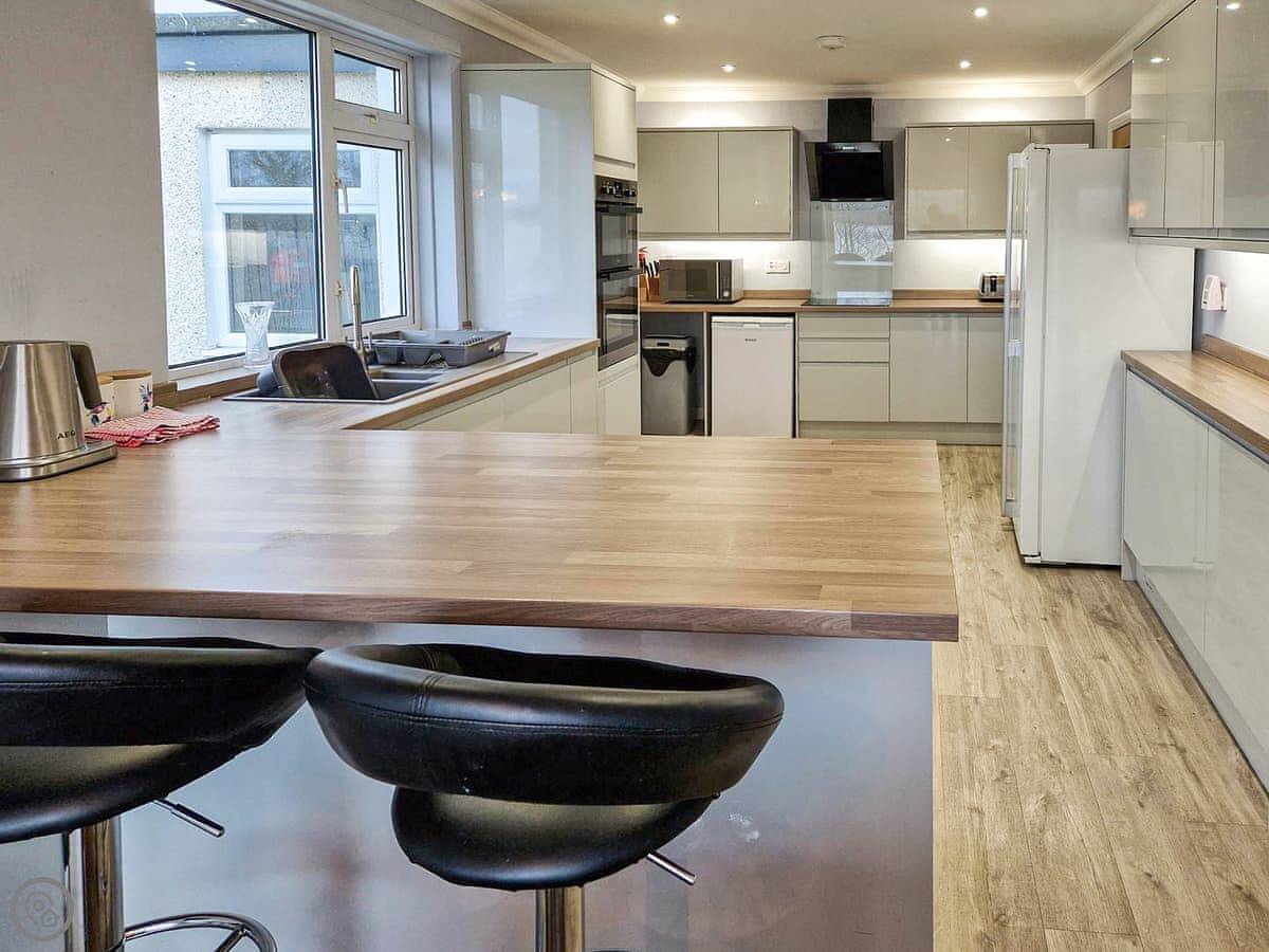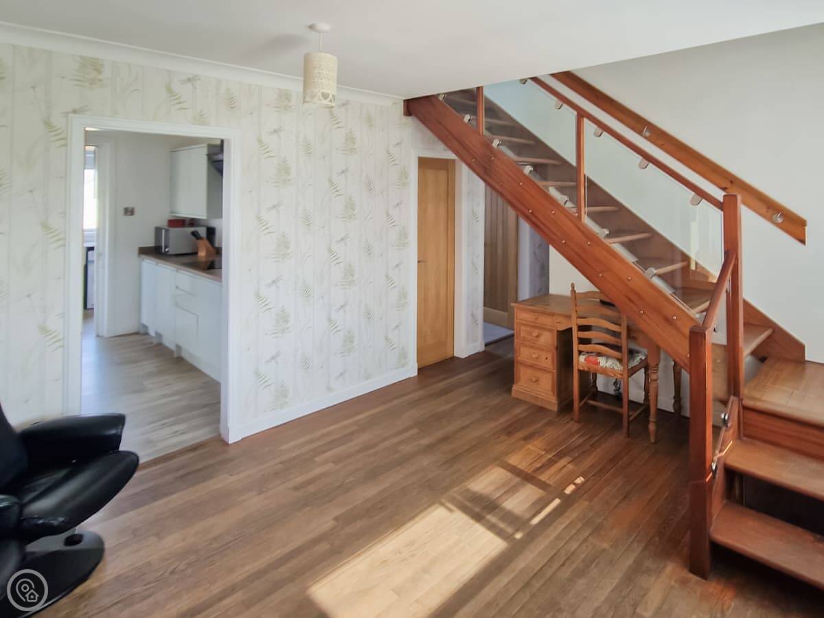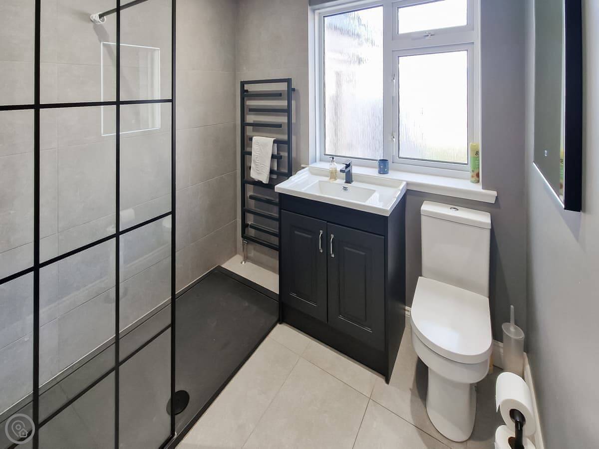It sleeps nine people in five bedrooms. There are two bathrooms, one is a wet room on the ground floor. It's got a 4 Star rating. It's comfortable, not luxurious.