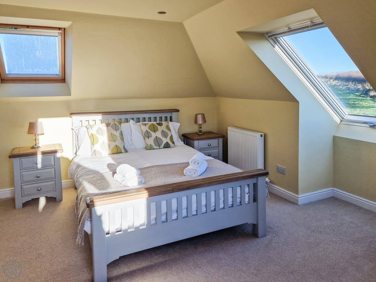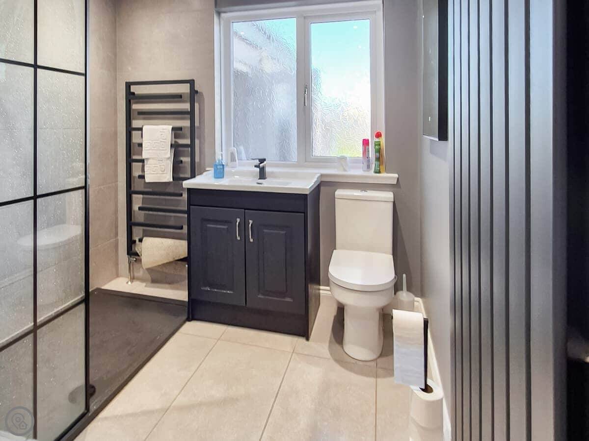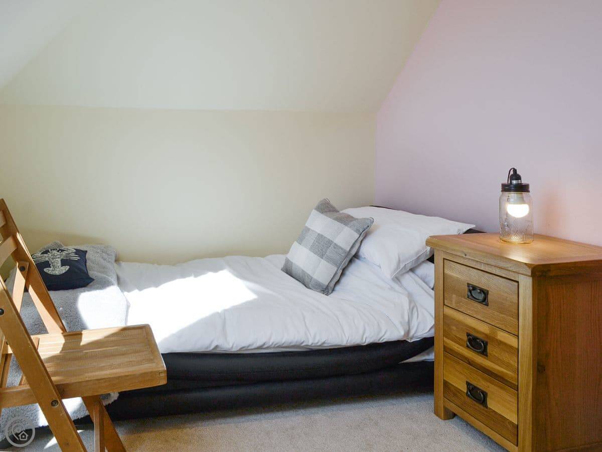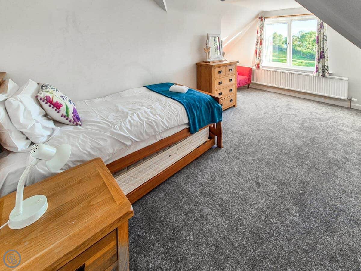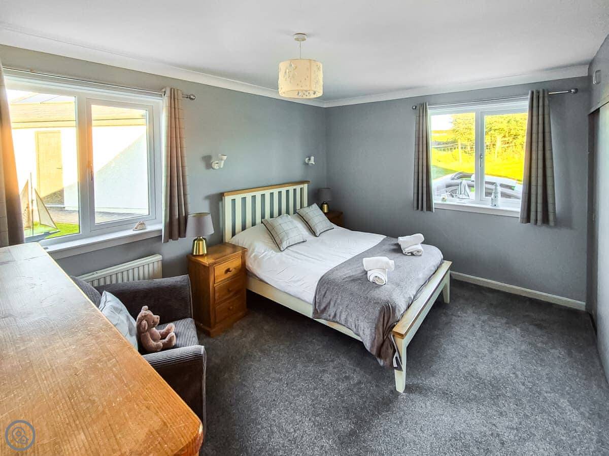 It sleeps nine people in five bedrooms. There are two bathrooms, one is a wet room on the ground floor. It's got a 4 Star rating. It's comfortable, not luxurious.