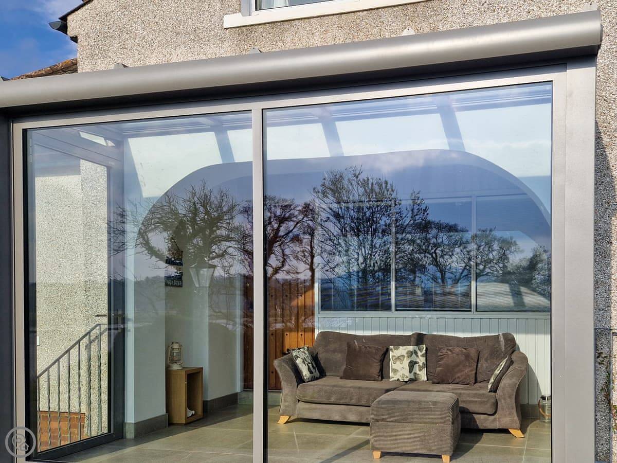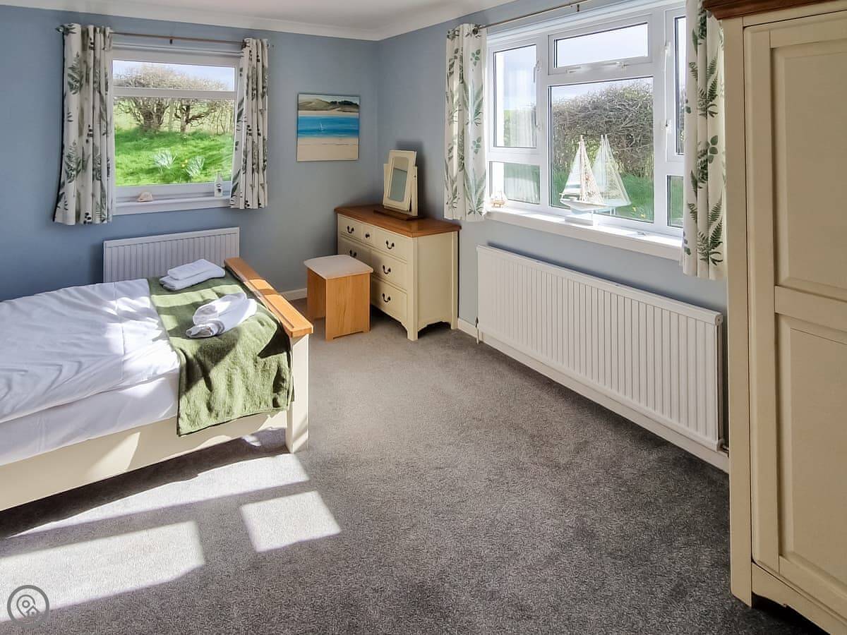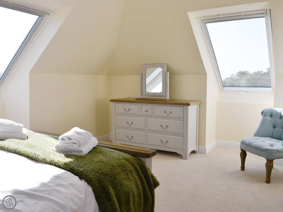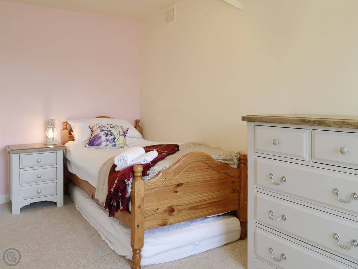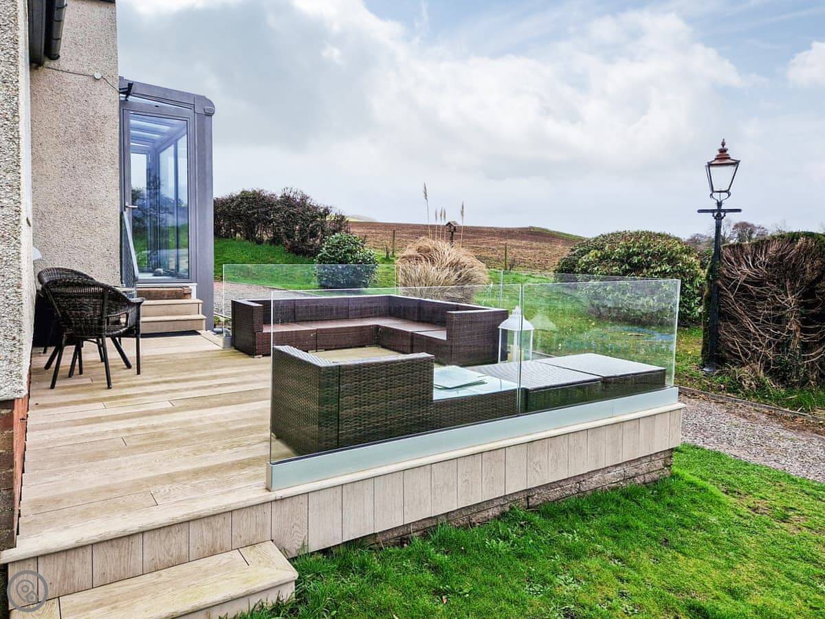 It sleeps nine people in five bedrooms. There are two bathrooms, one is a wet room on the ground floor. It's got a 4 Star rating. It's comfortable, not luxurious.