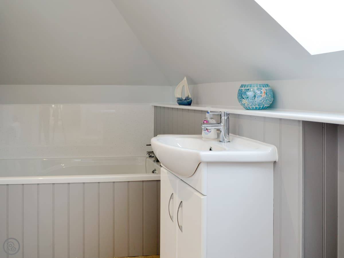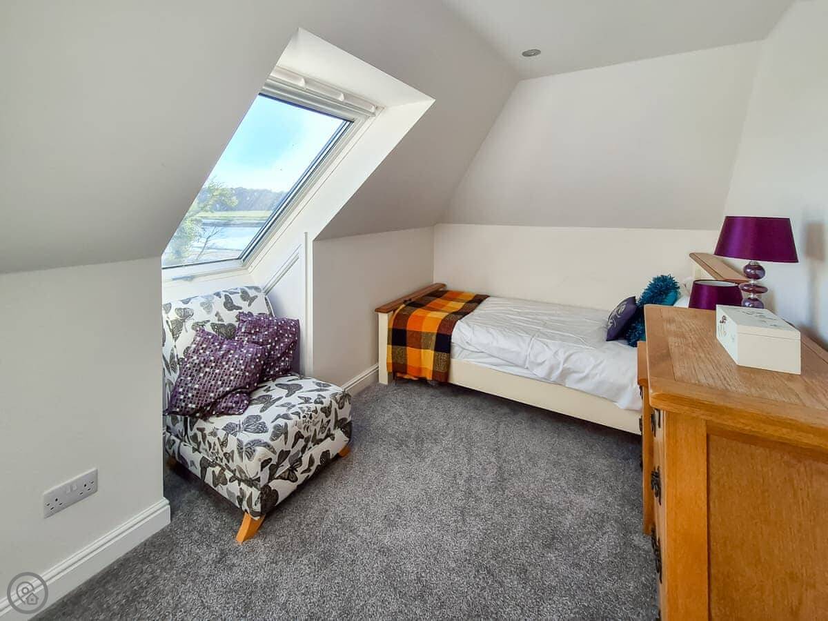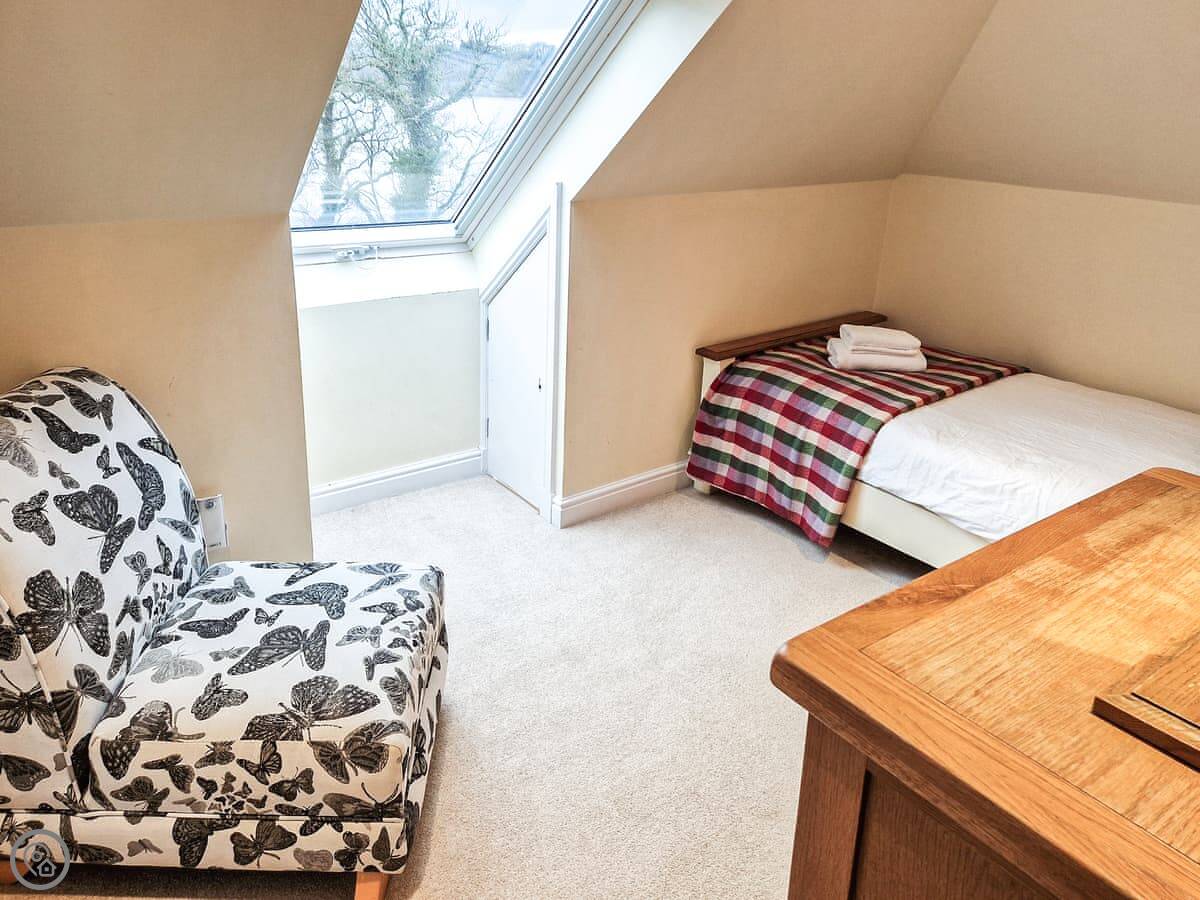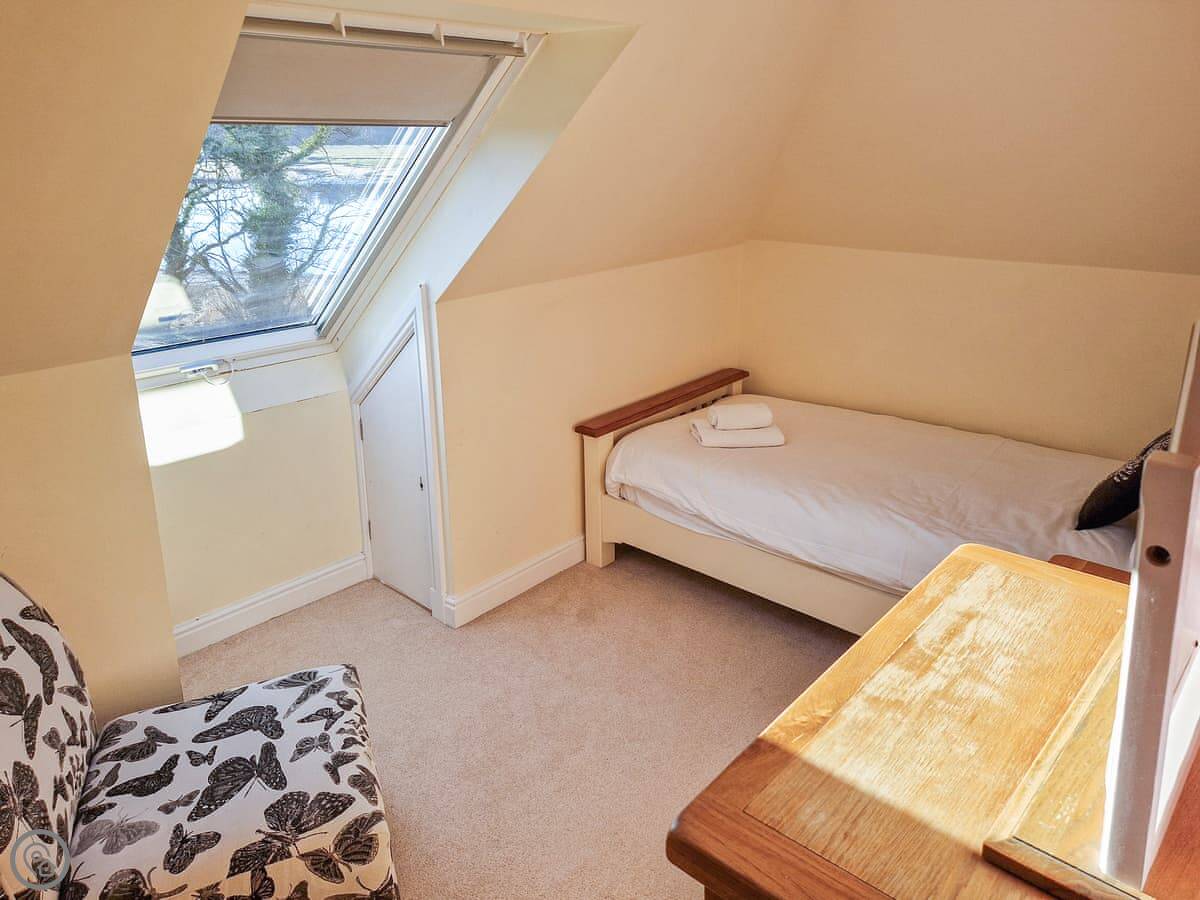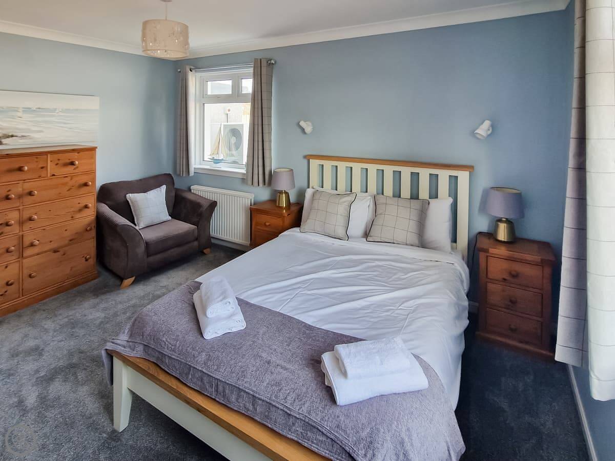 It sleeps nine people in five bedrooms. There are two bathrooms, one is a wet room on the ground floor. It's got a 4 Star rating. It's comfortable, not luxurious.