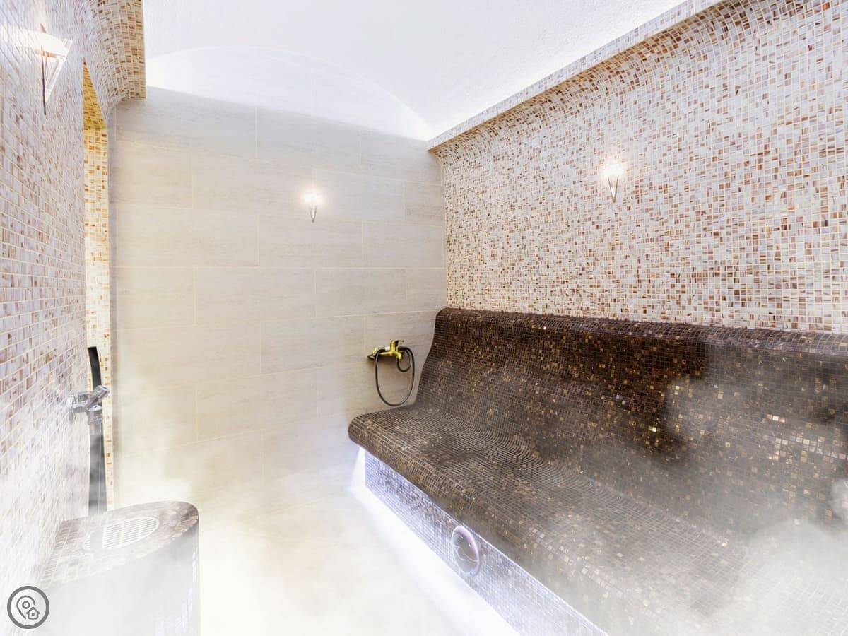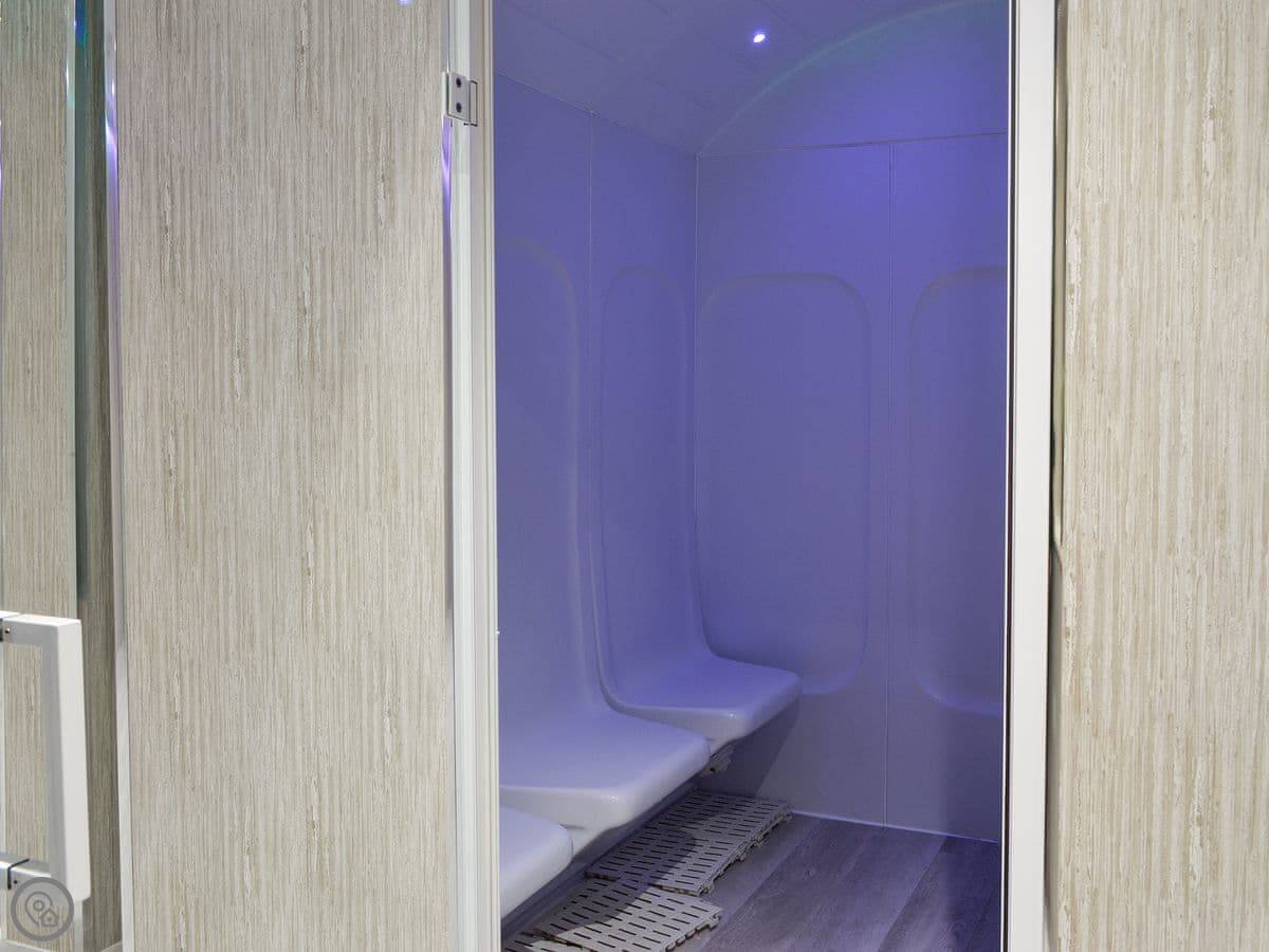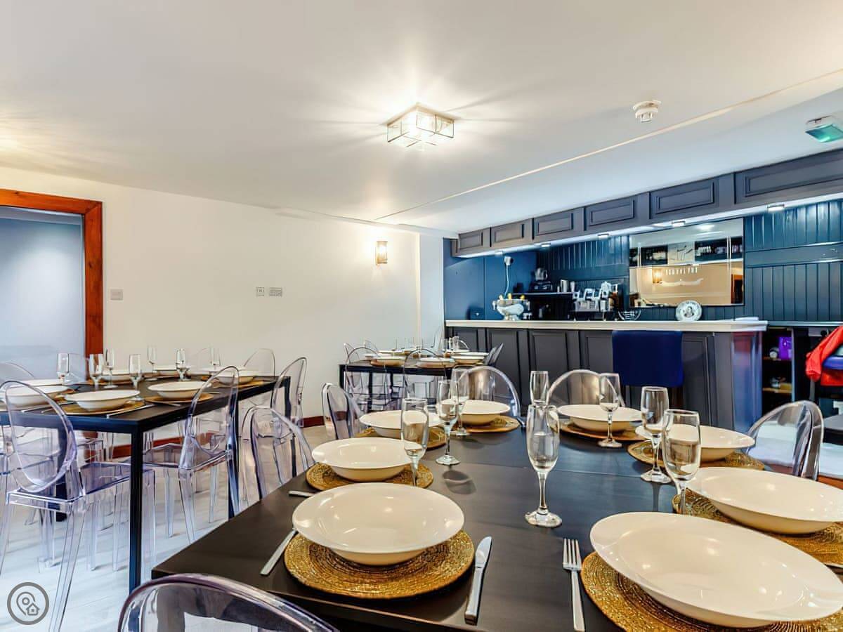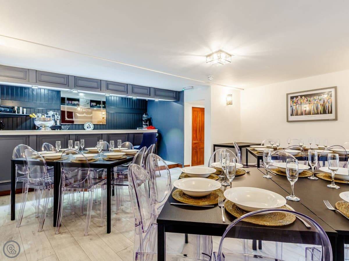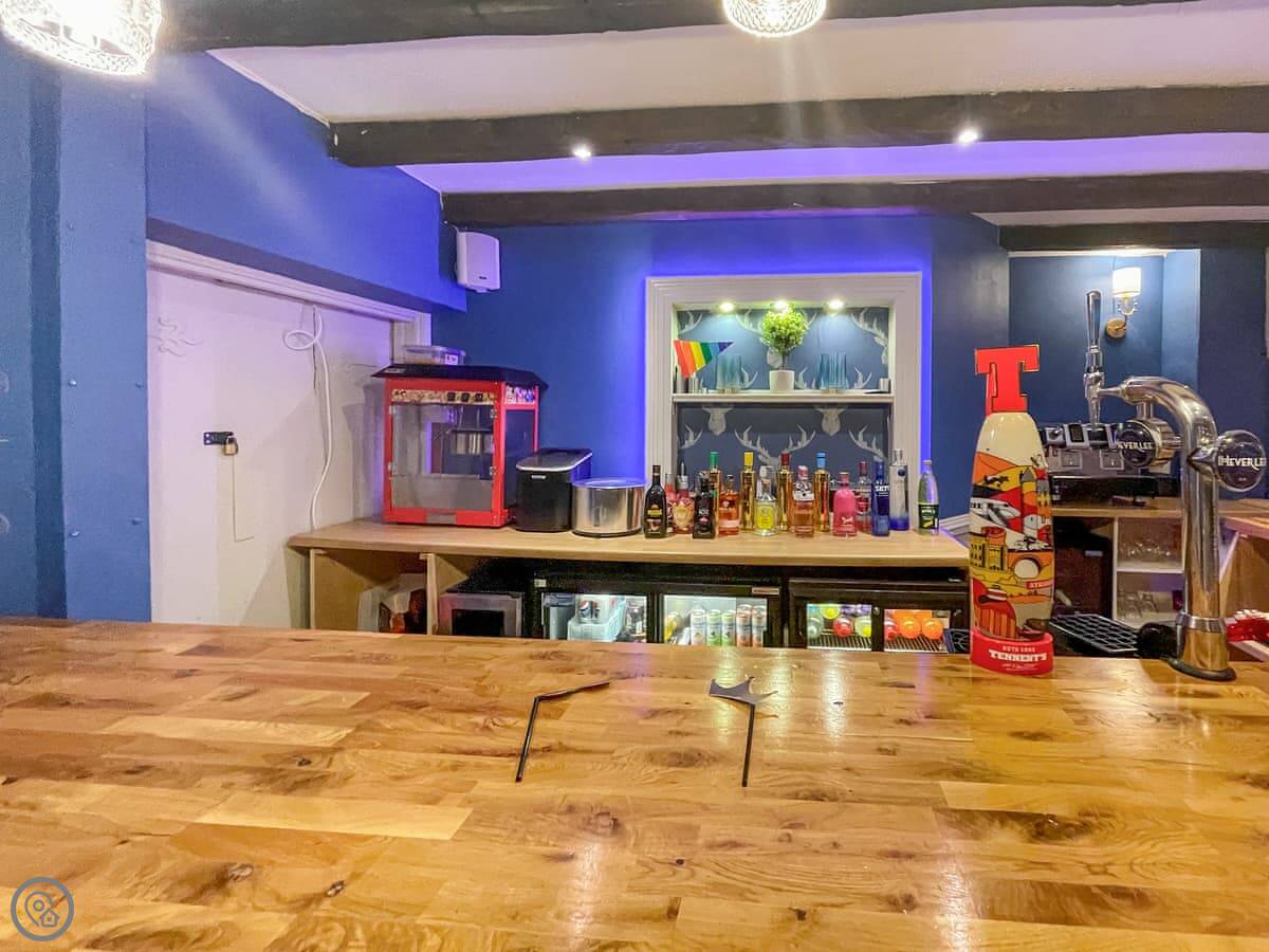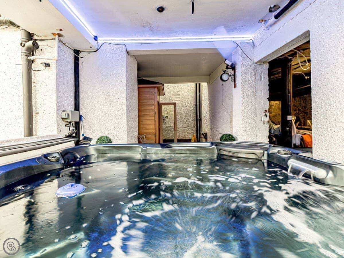 The main thing is, it's set up for groups. There's a hot tub and a sauna outside, and a steam room inside. The lounge has a big cinema screen. You can book catering and spa treatments directly with us beforehand, if you want everything done for you.