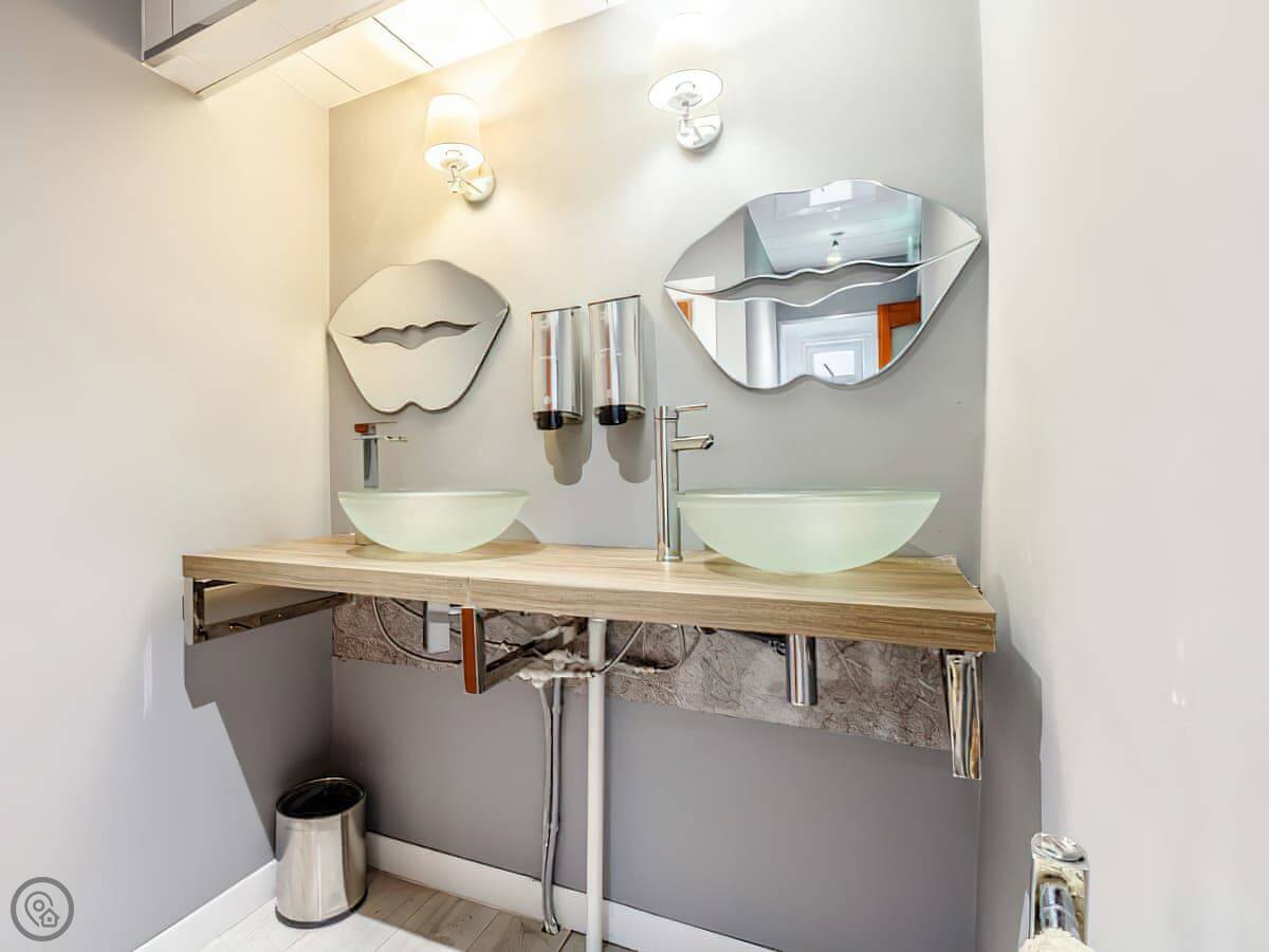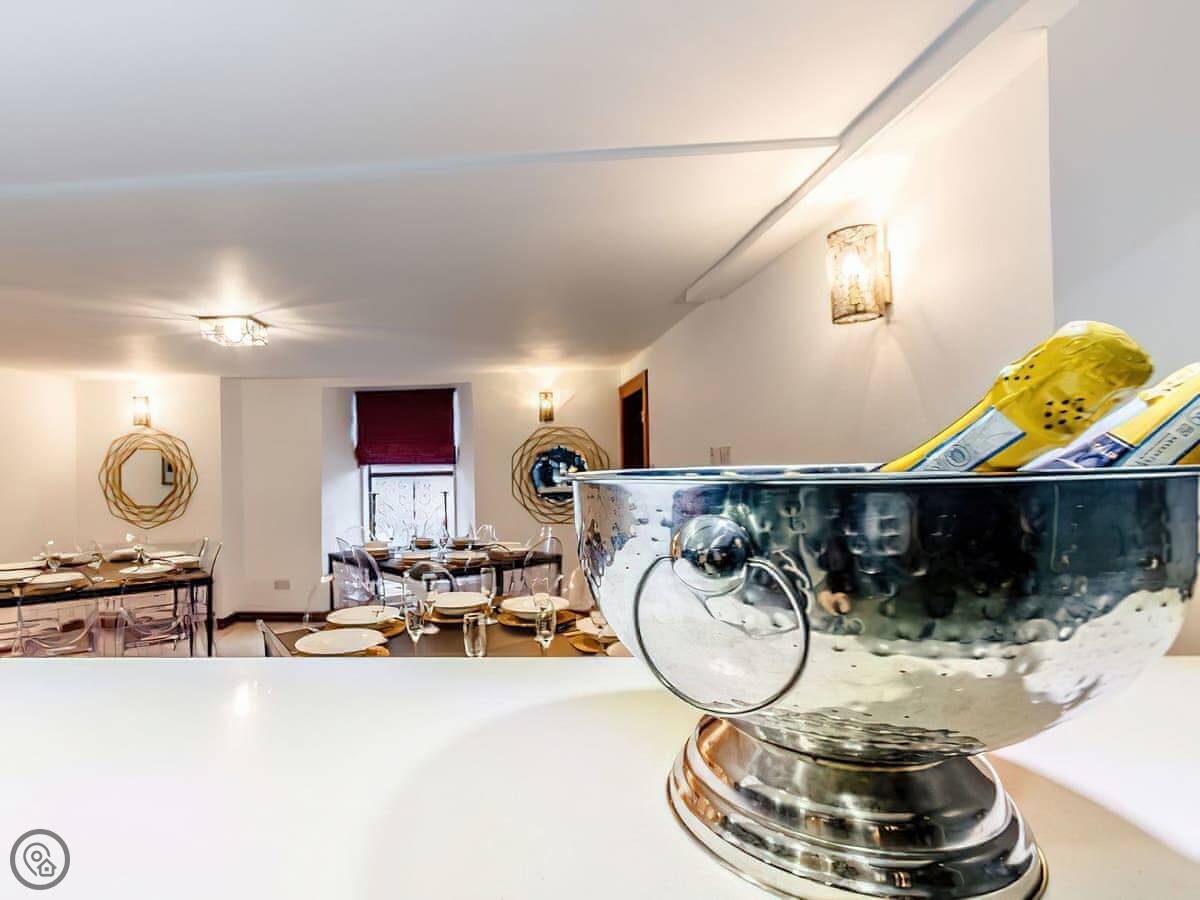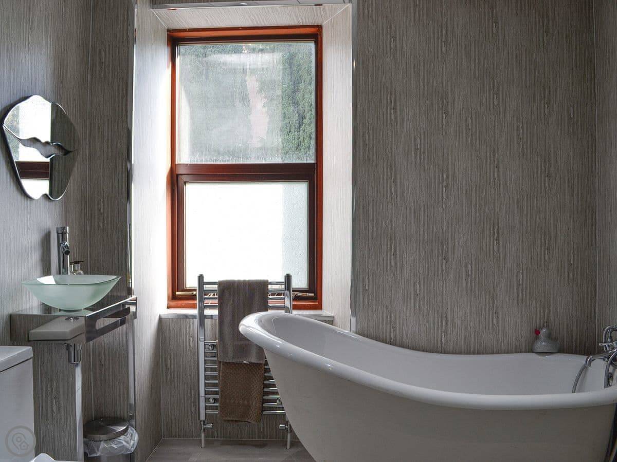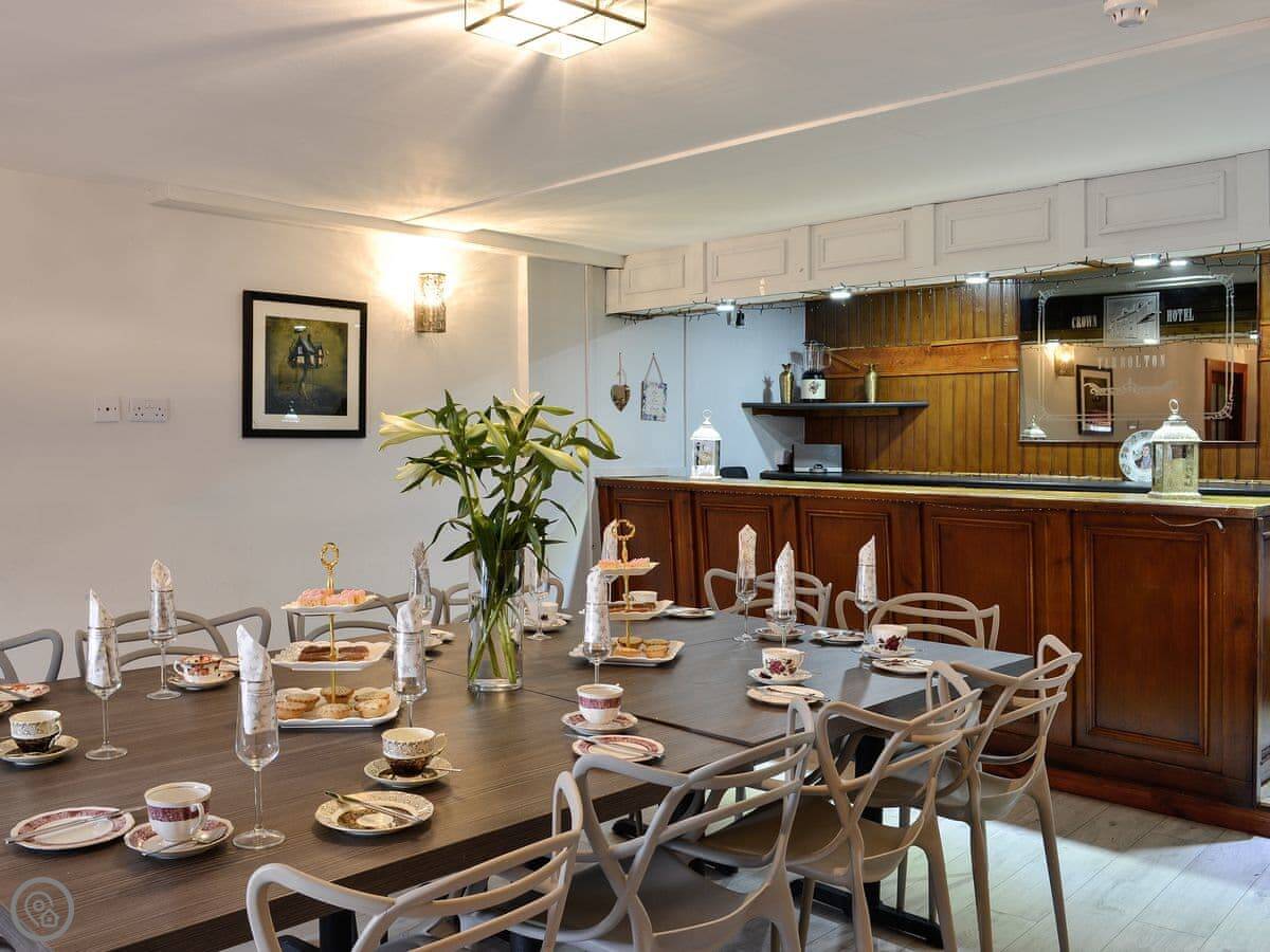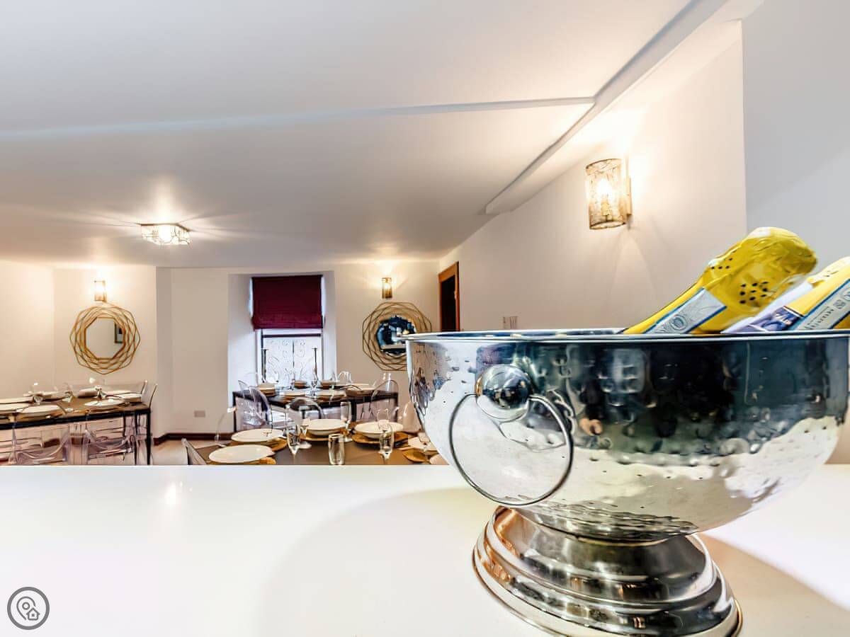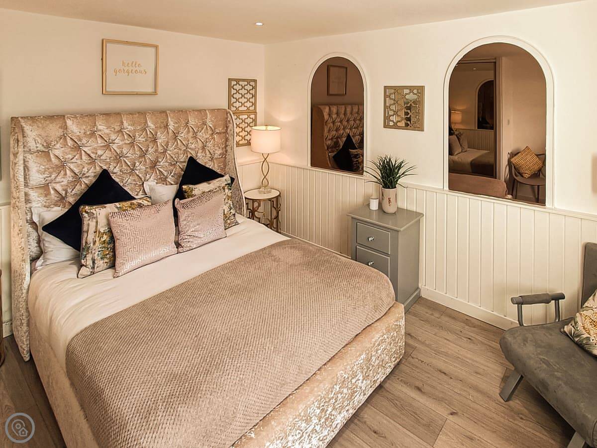The main thing is, it's set up for groups. There's a hot tub and a sauna outside, and a steam room inside. The lounge has a big cinema screen. You can book catering and spa treatments directly with us beforehand, if you want everything done for you.